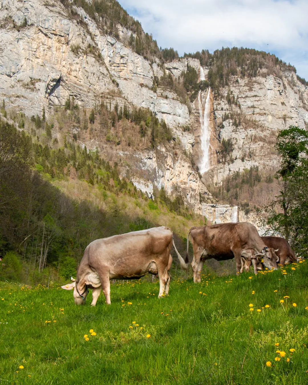 The Seerenbach Falls are a cascading set of waterfalls, totaling 585m. You can reach the falls with a short hike along the Walensee lake, strolling through beautiful meadows filled with wildflowers and rustic farmhouses.