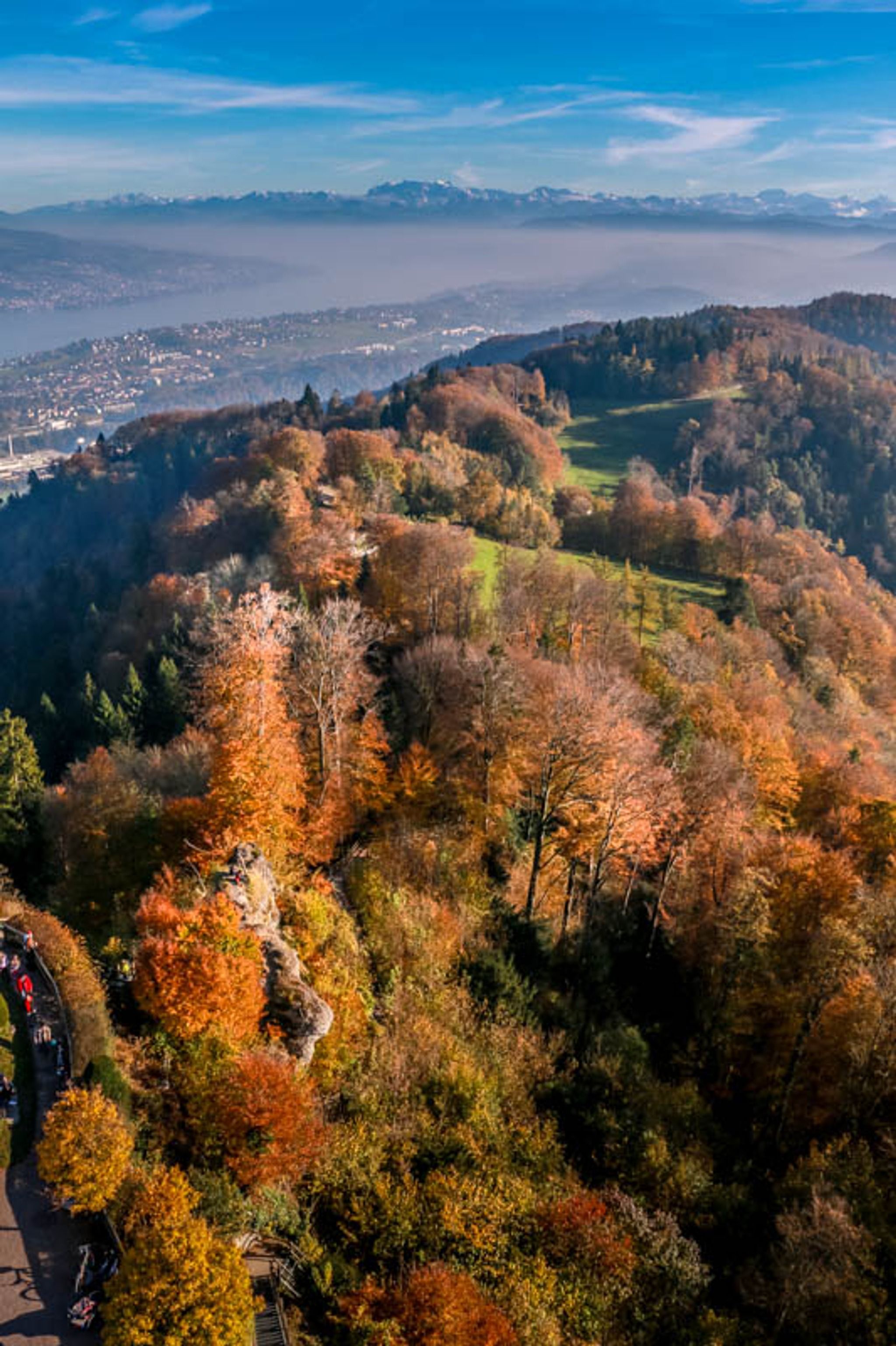 This trail meanders along the ridge of Uetliberg, a small mountain on the western edge of Zurich city. It’s a lovely stroll through forests and meadows, with occasional views of Lake Zurich and even the alps in the distance. It’s nice in all seasons, but particularly in mid October when the trees change colors.