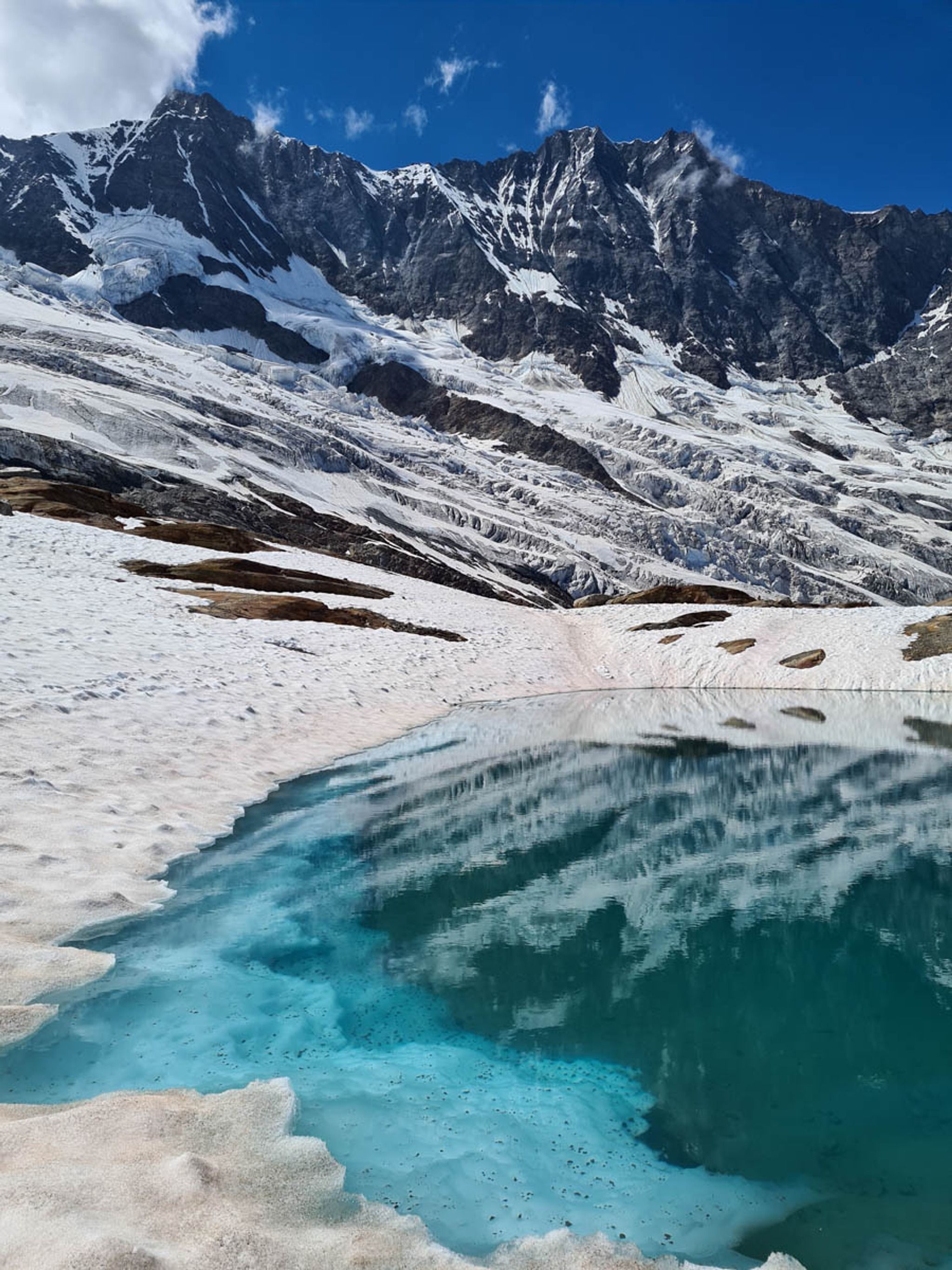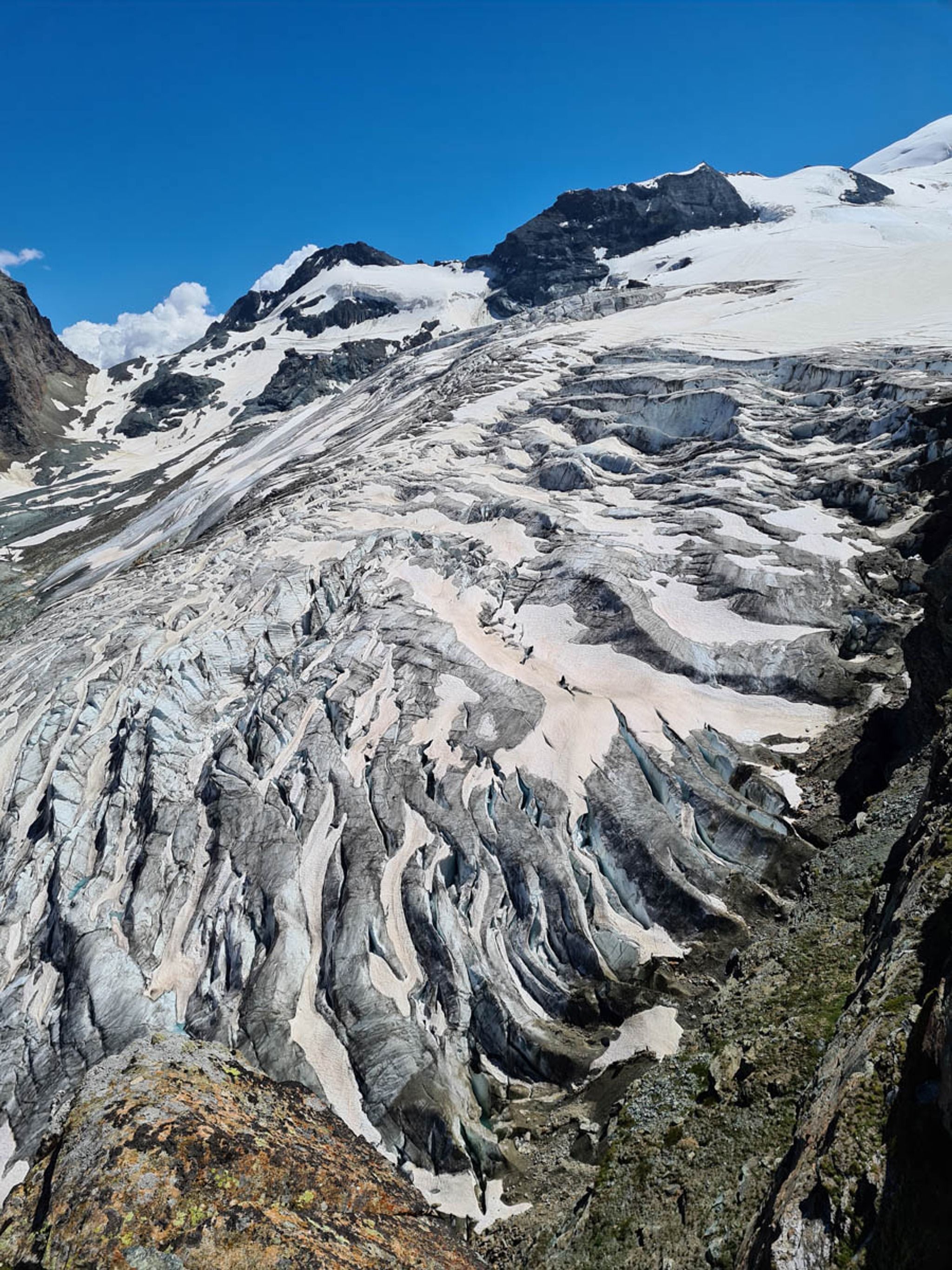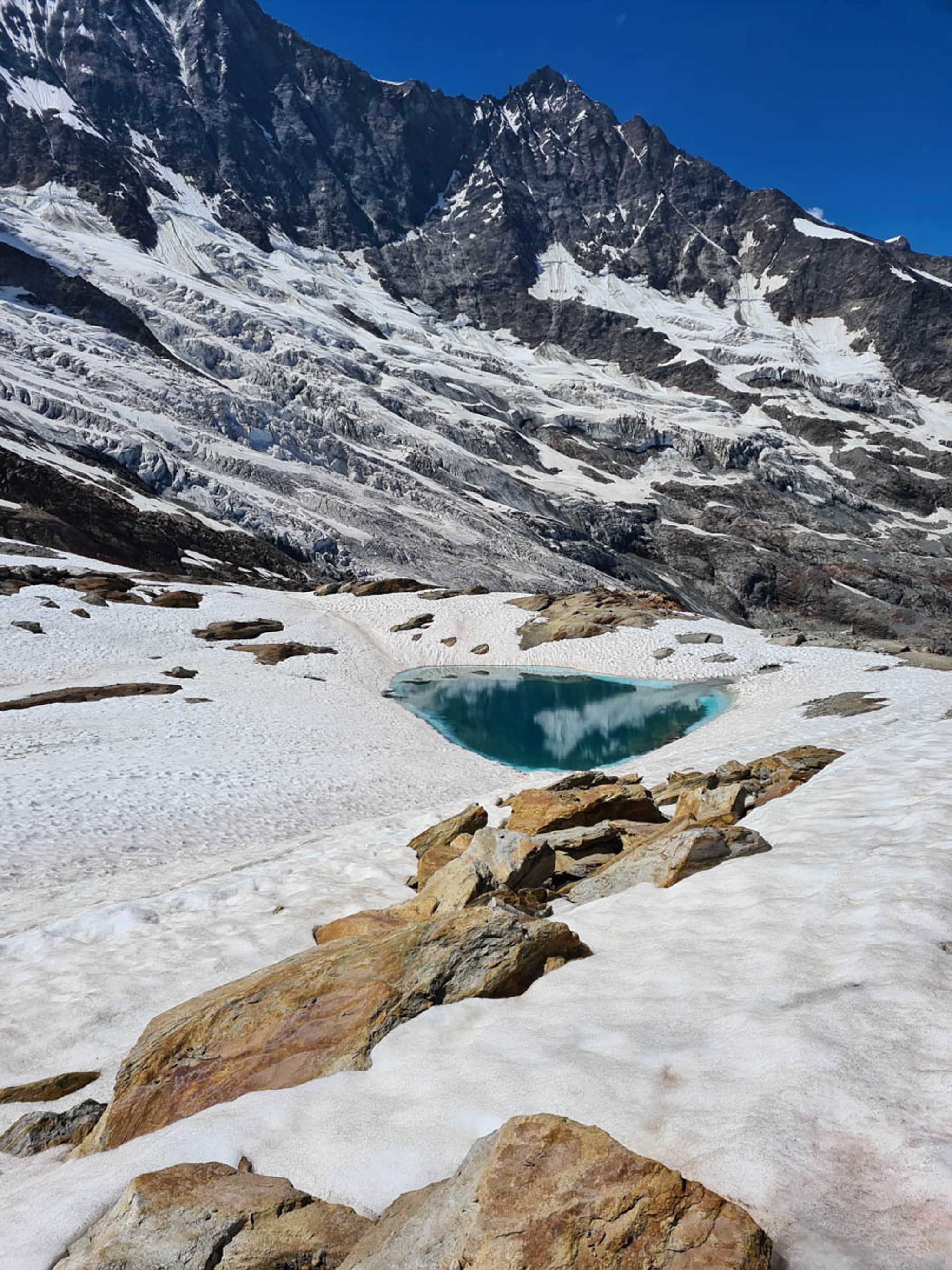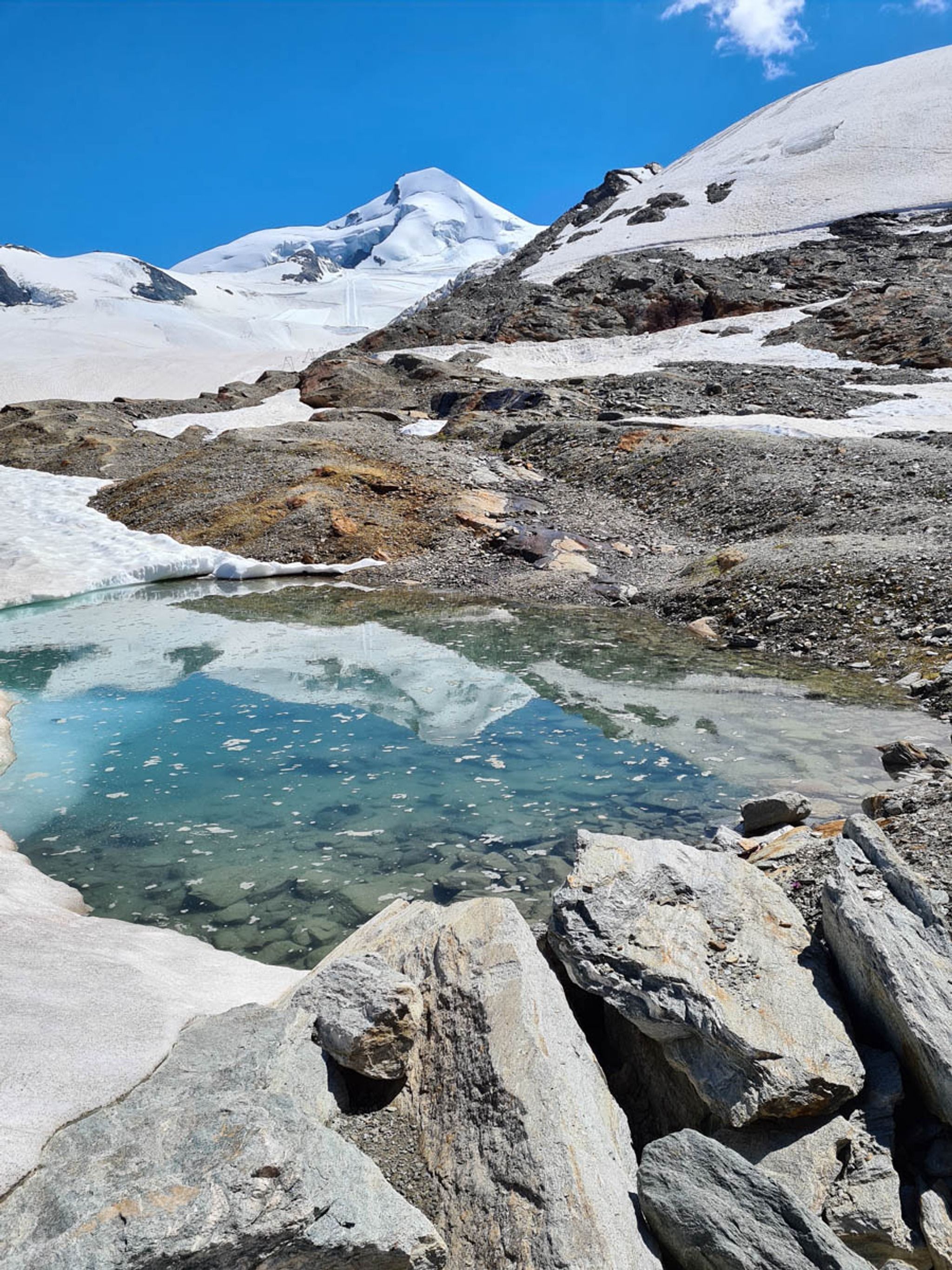 There is a short wander at the top, visiting three tiny beautiful glacier lakes reflecting the mountains above. We ate lunch at the mountain hut that overlooks the glacier, enjoying polenta with local cheese.