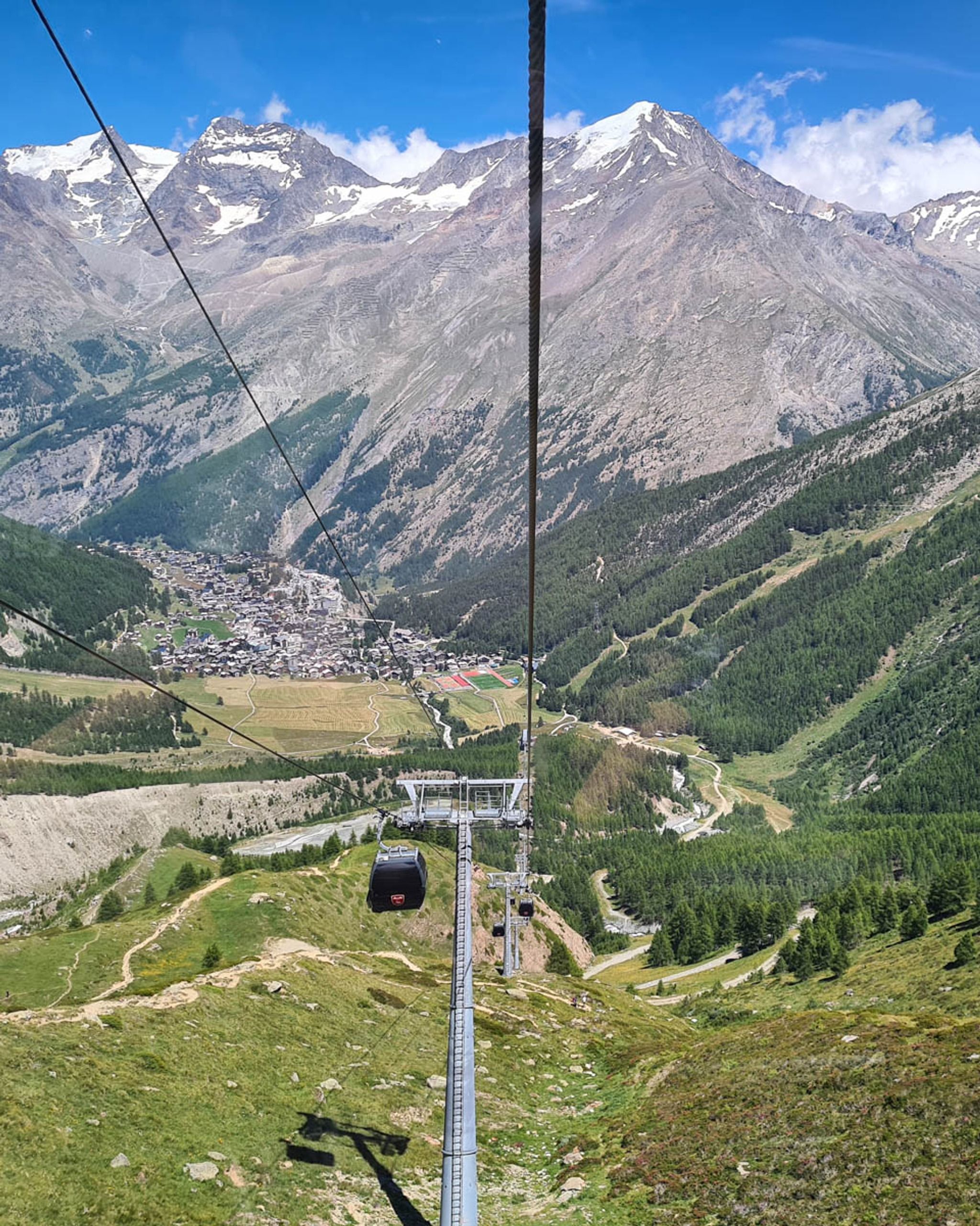 Walk through the village to the Saas-Fee Spielboden gondola.