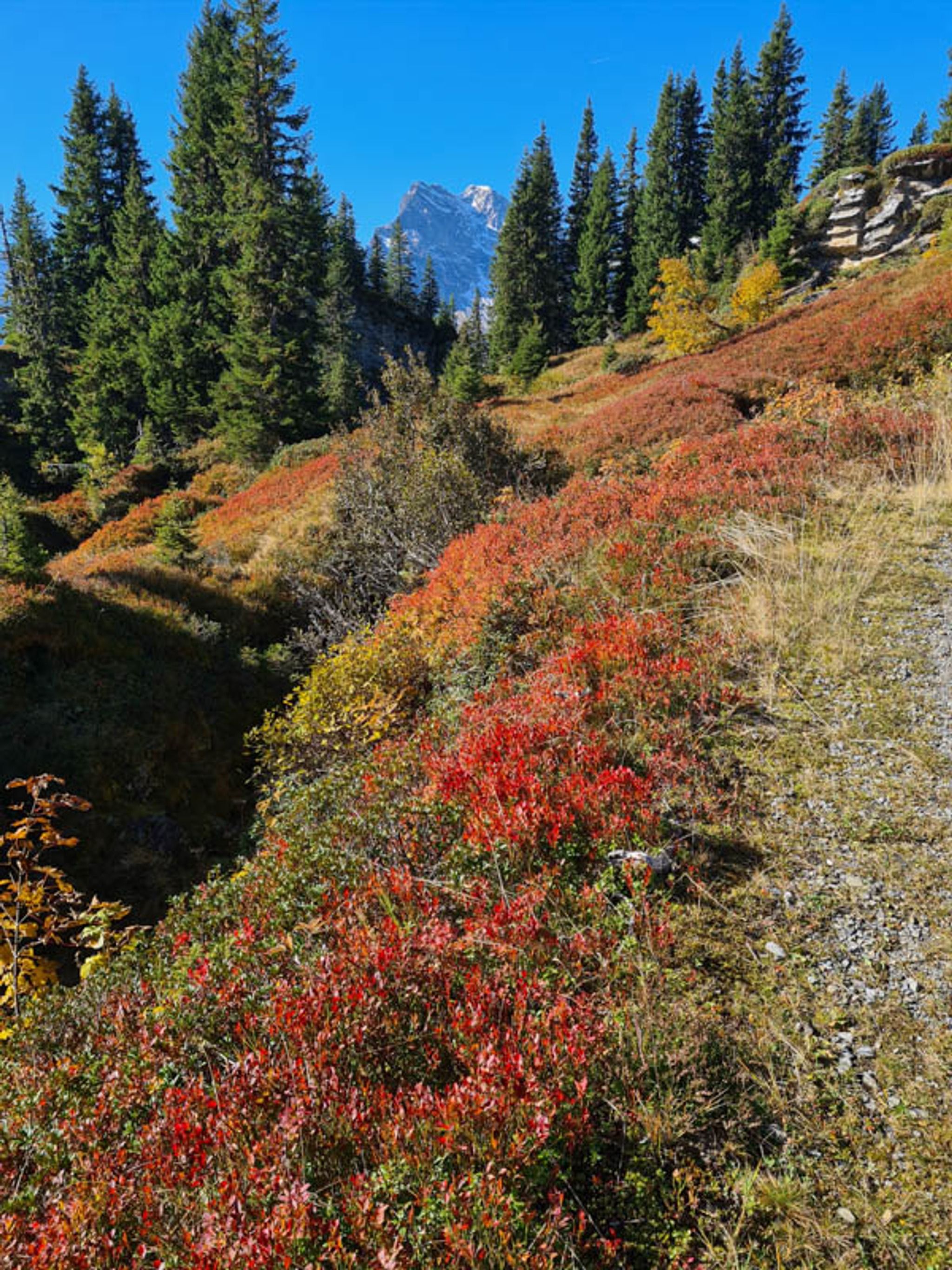This trail is a loop, starting at the Grötzenbüel gondola station, hiking up to Gumen, and back down. We usually stop at the Ortstockhaus hut for lunch.