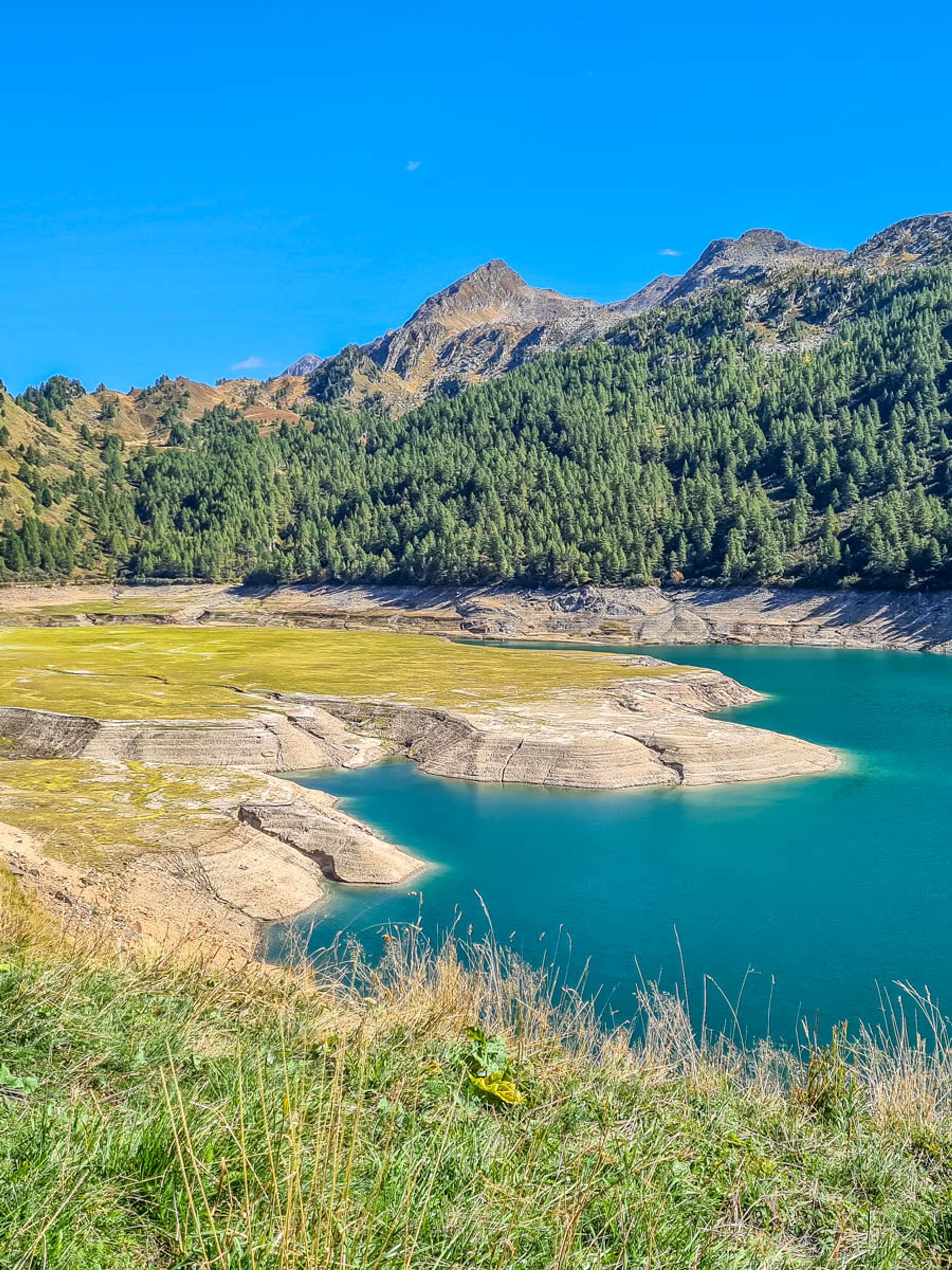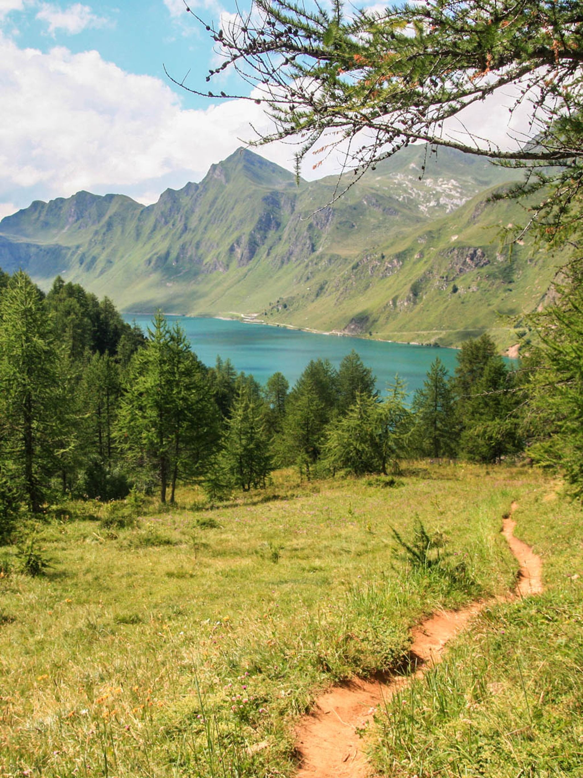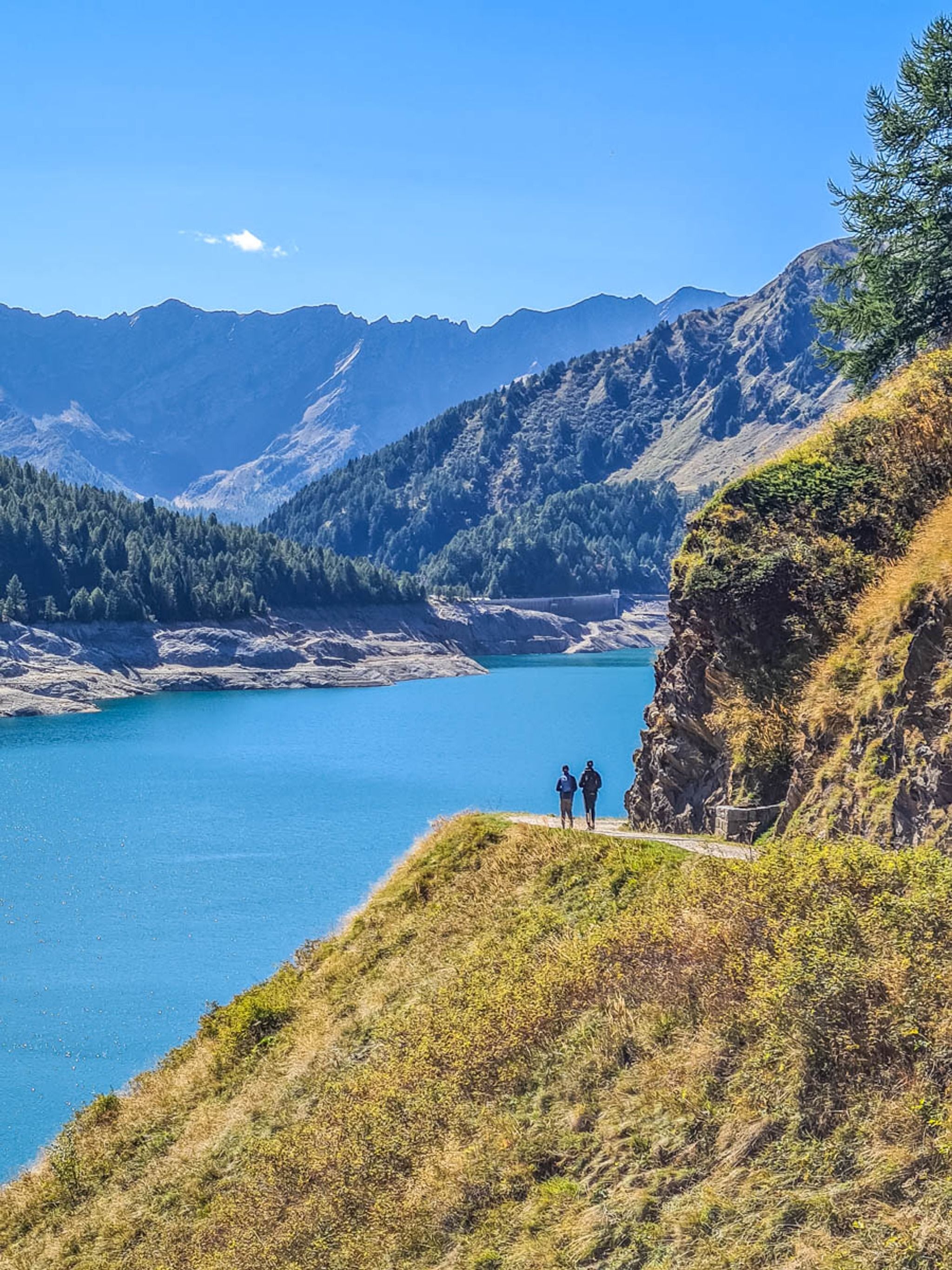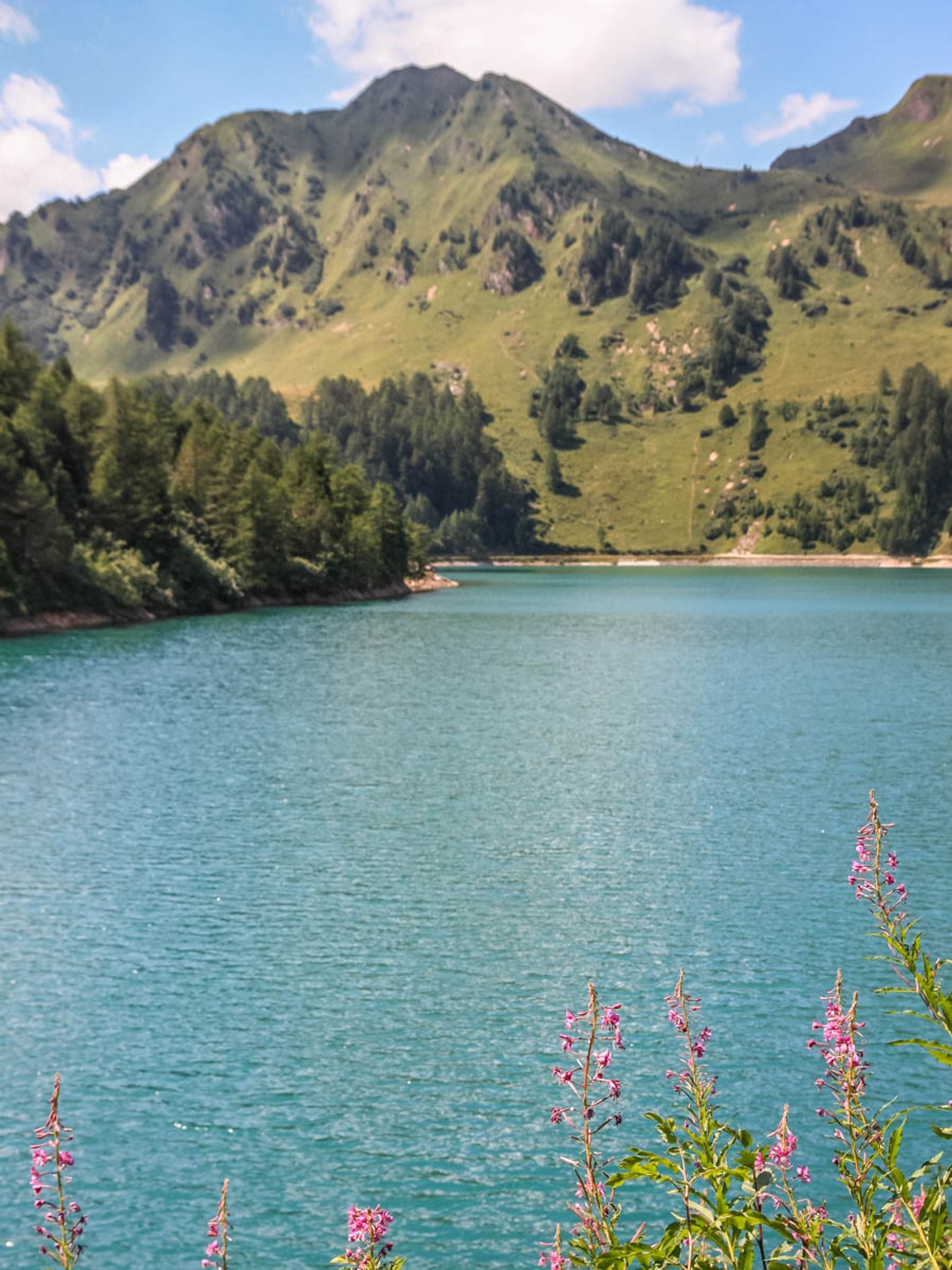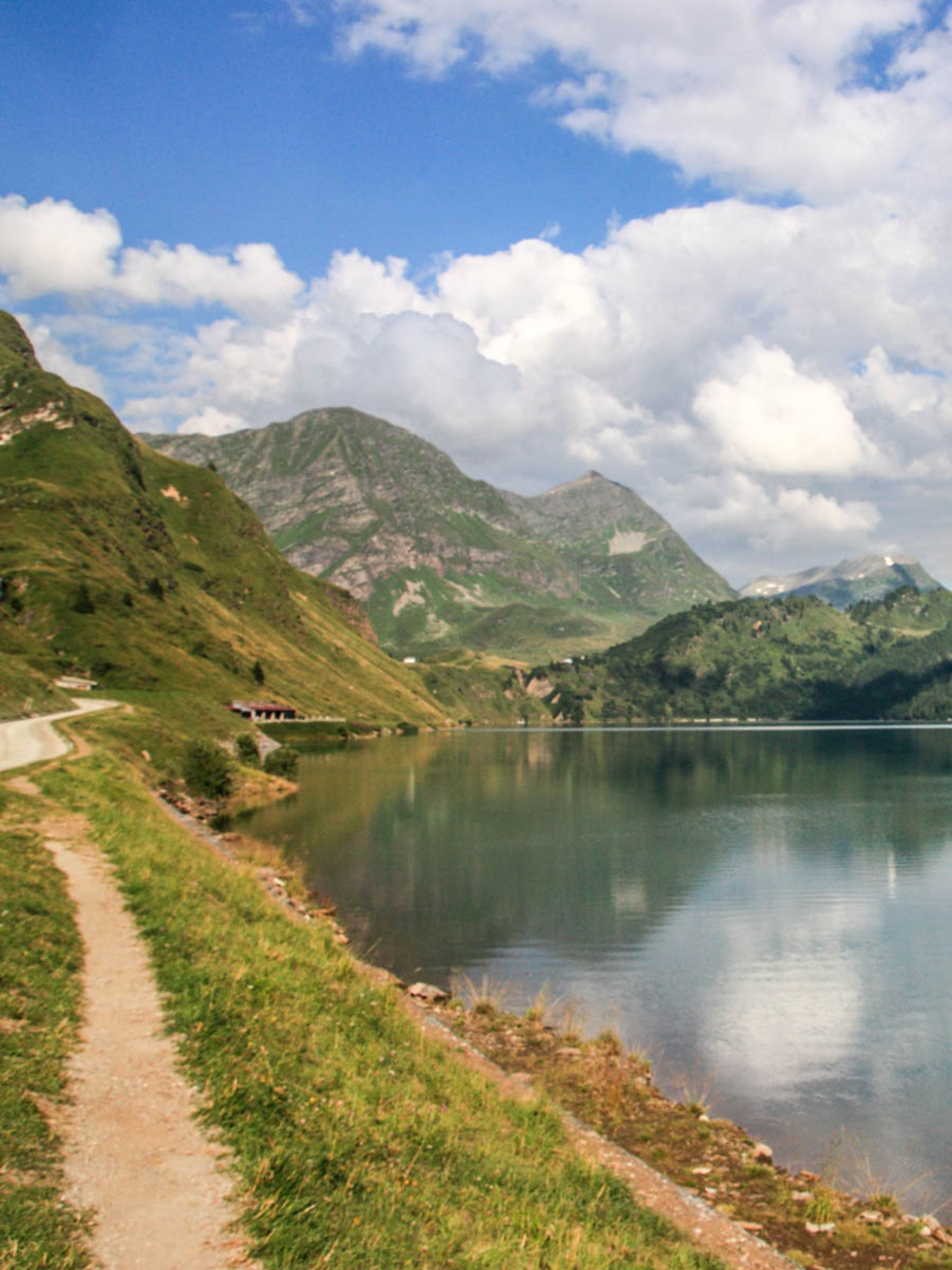 This trail hikes around Lago Ritom, a beautiful mountain lake in southern Switzerland.