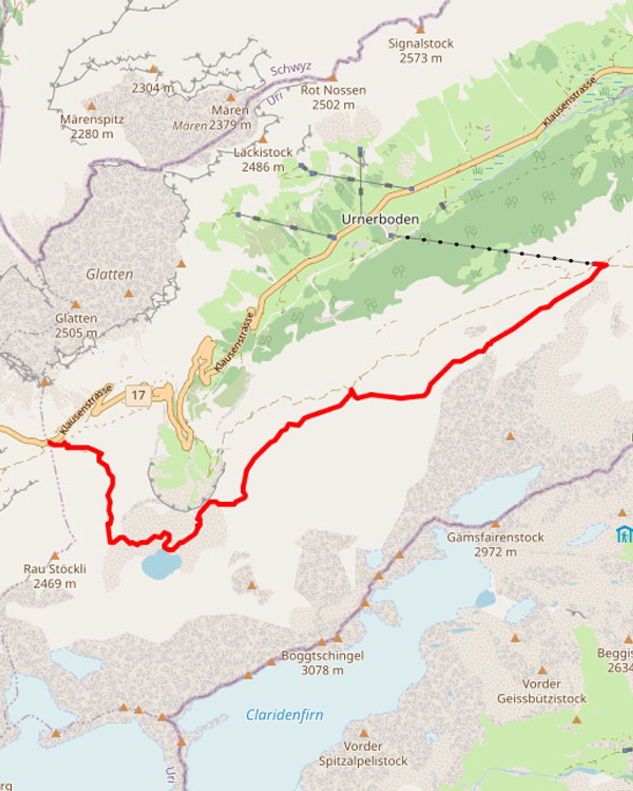 Start: Klausen Pass – 46°52’05.0″N 8°51’17.4″E / Bus stop: Klausen, Passhöhe
