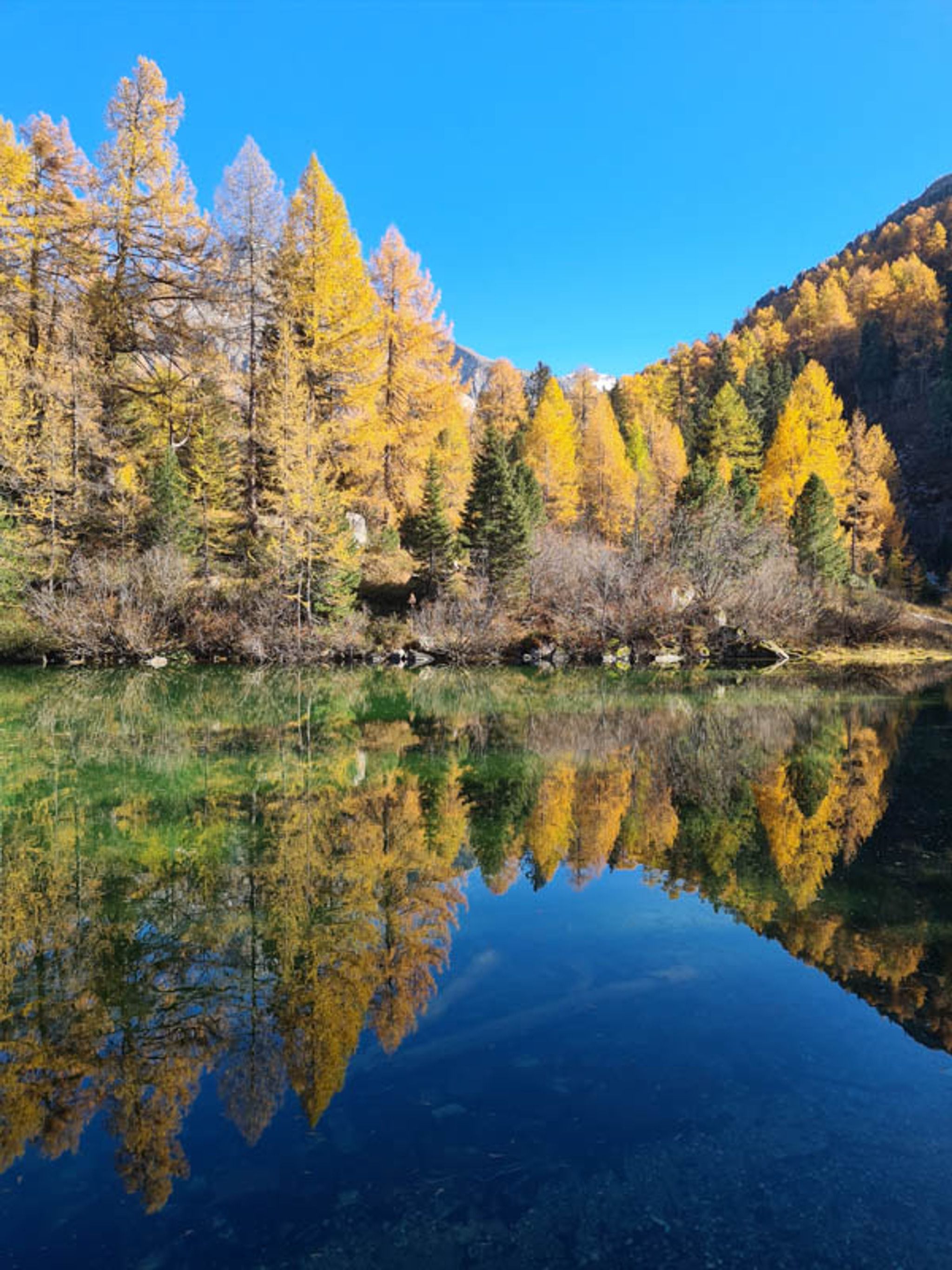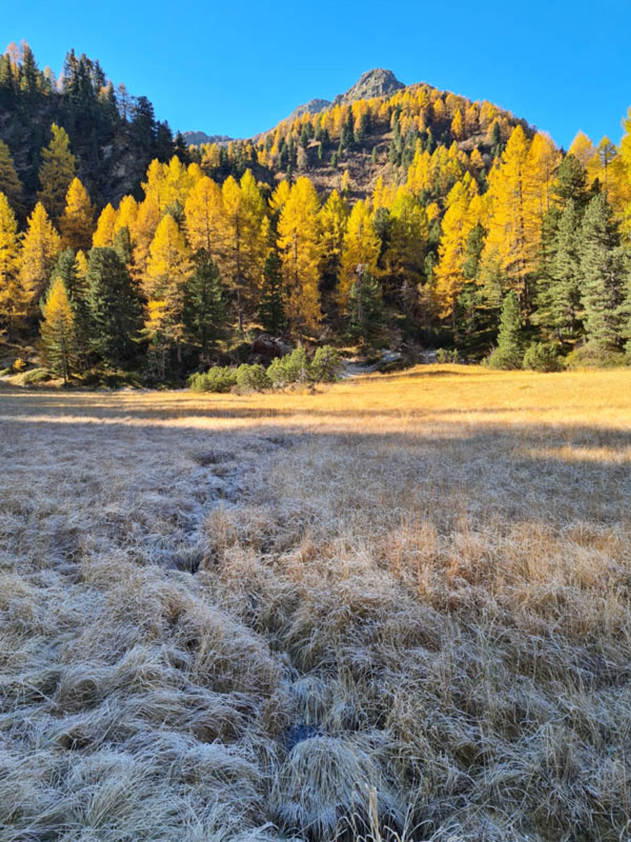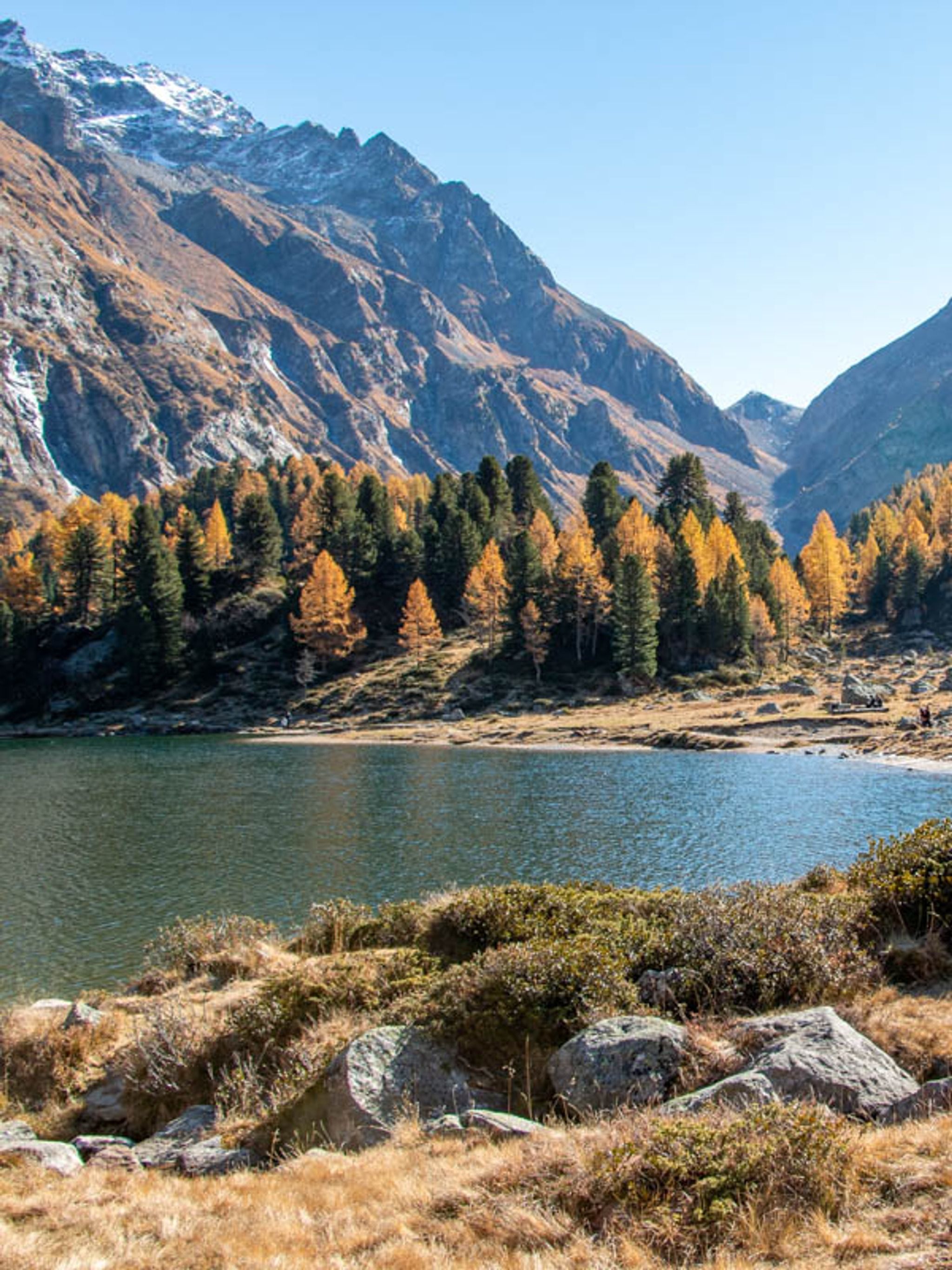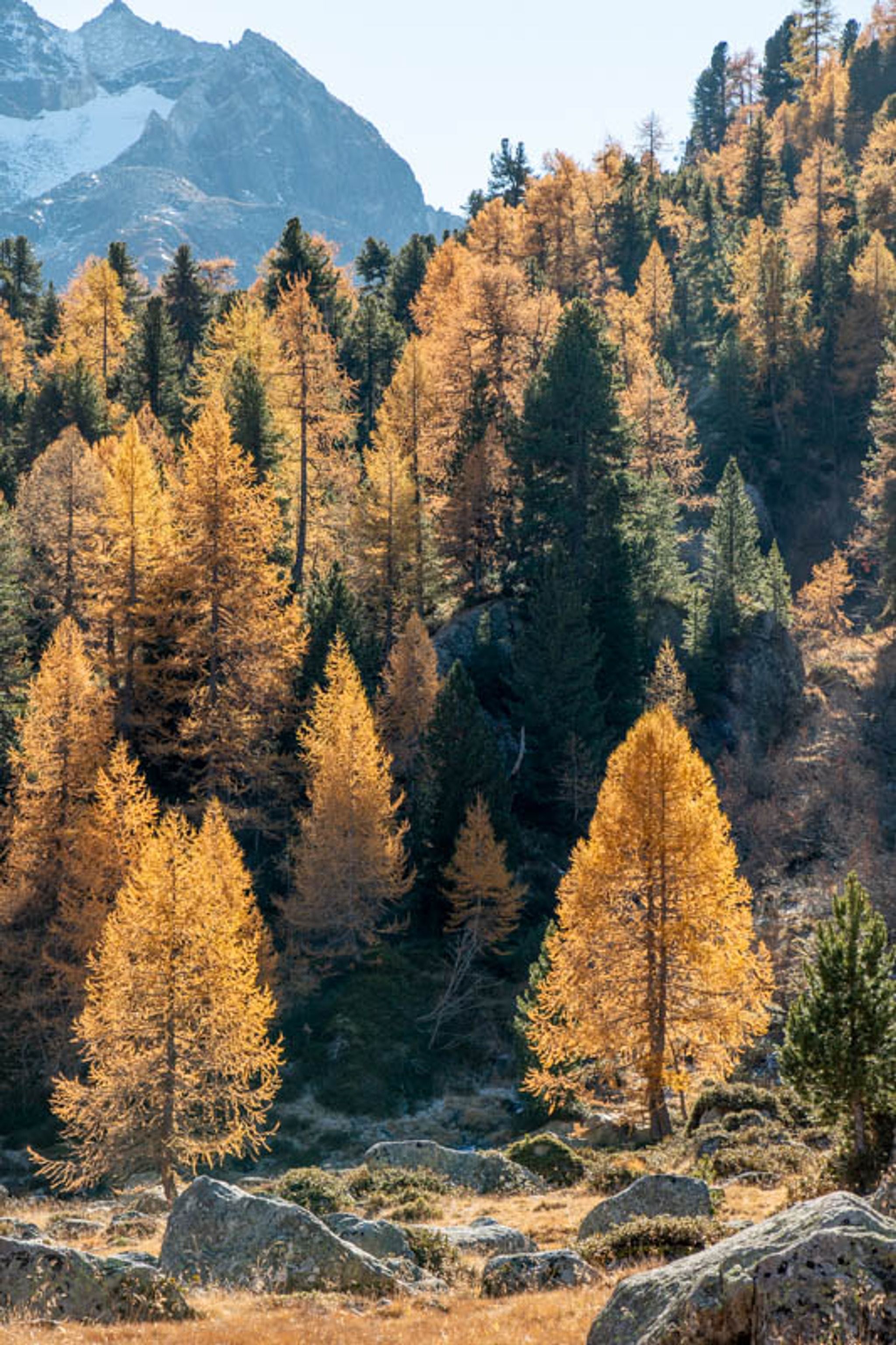 This hike is particularly nice in mid to late October, when the golden larch trees are bright yellow. But note that the shadows are long and trail can get icy, so bundle up and use caution.