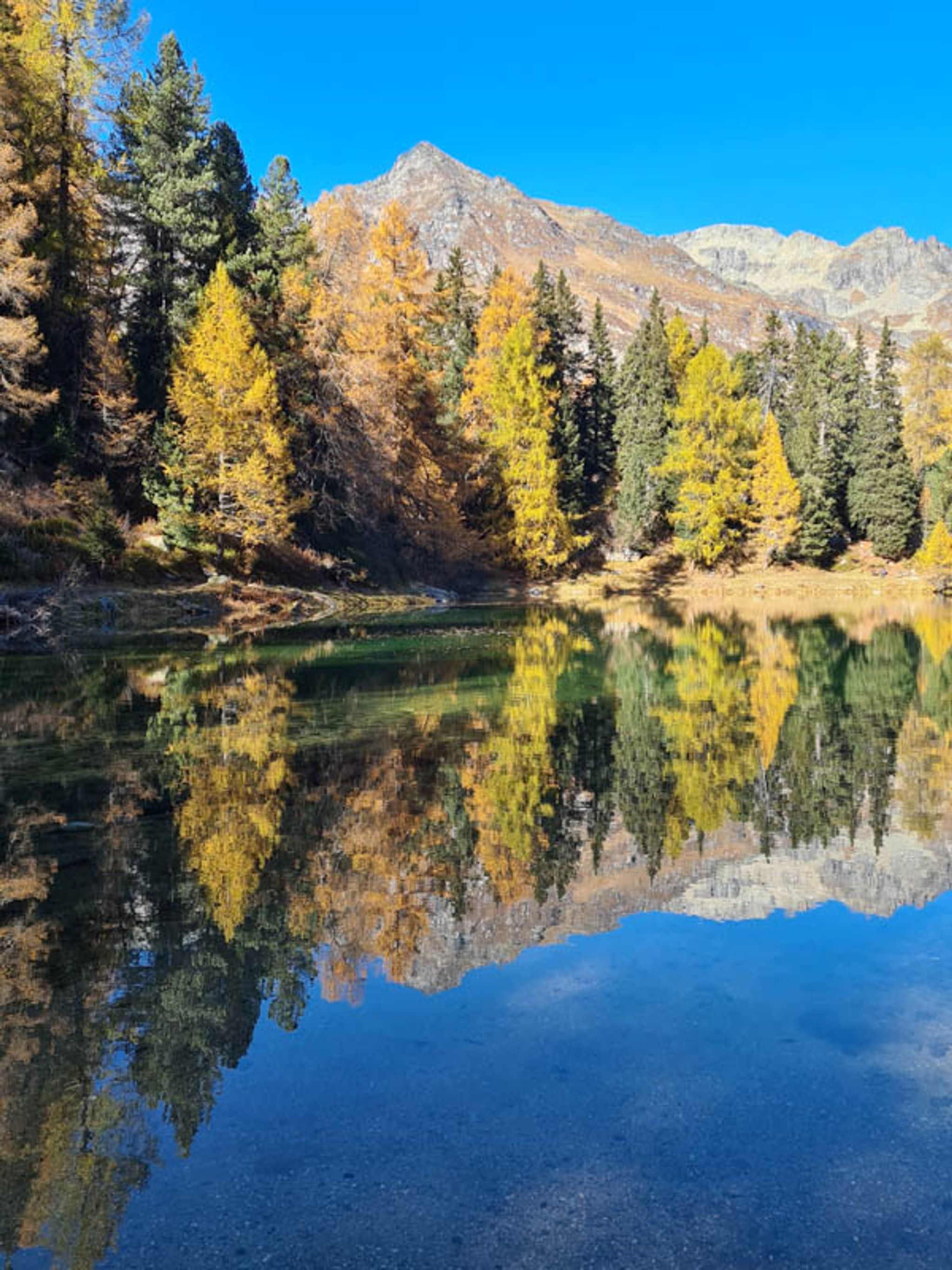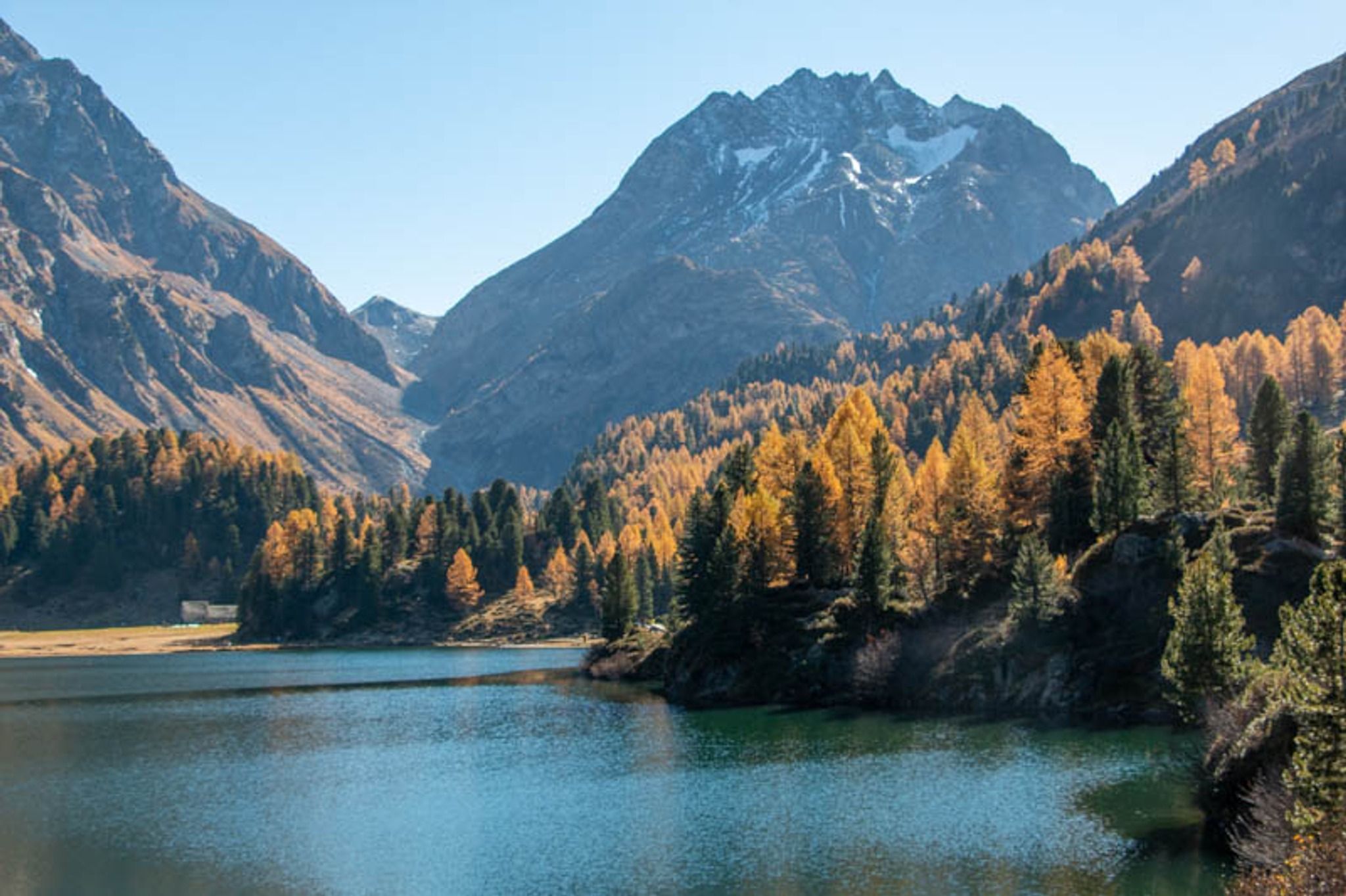 This trail leads to two beautiful alpine lakes in the mountains near St Moritz. The path is mostly in the forest, with frequent mountain views peeking through. The first lake, Lägh da Cavloc, is a popular place for picnics and perhaps a brief jump in the chilly water. The second lake, Lägh da Bitabergh, is more remote and quiet, a little hidden treasure.