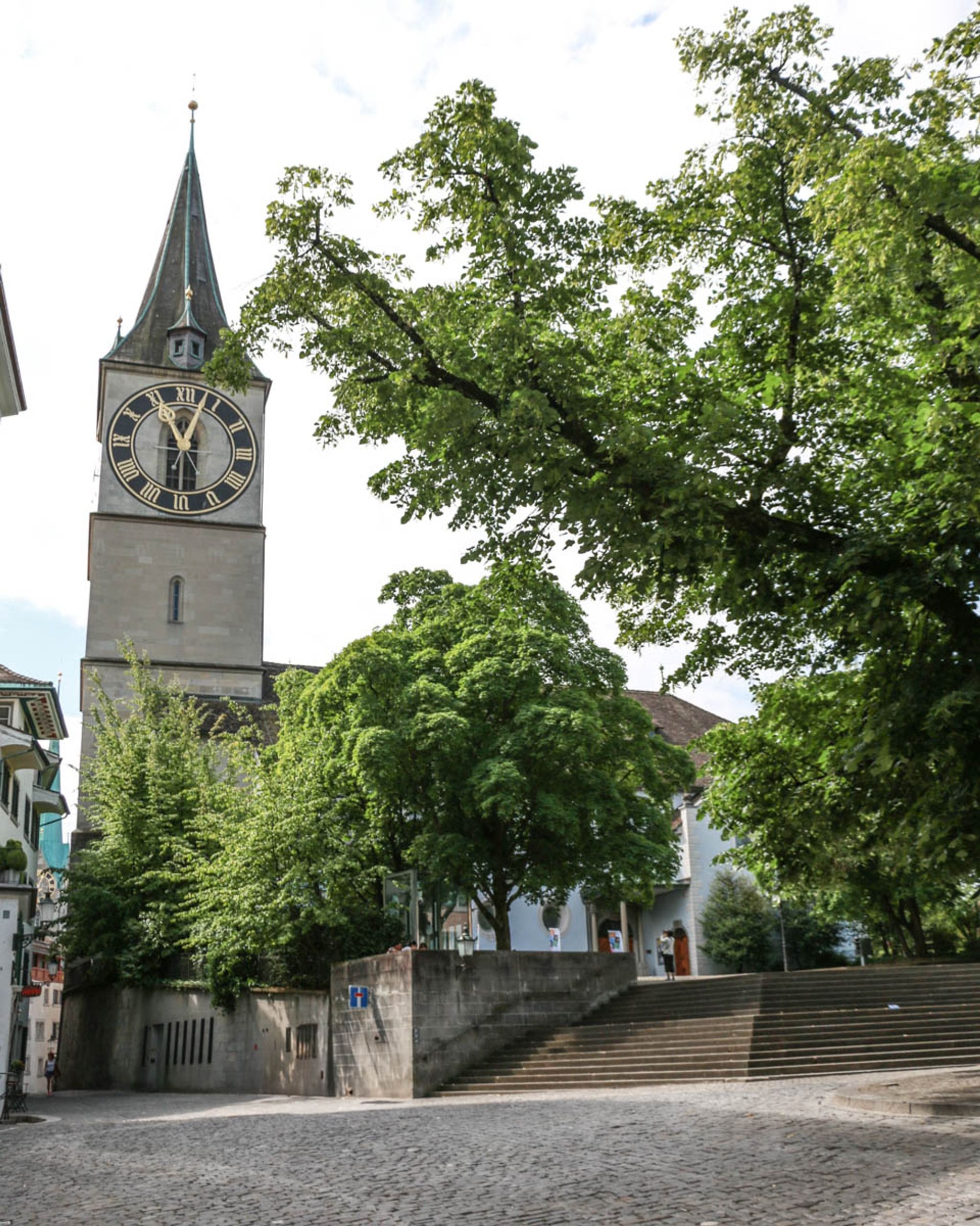 This church is famous for its tower, with Europe's largest church clock face - 8.7 m in diameter. You can see this clock from many places all over Zurich. Historically, the tower served as a fire watch post until 1911.