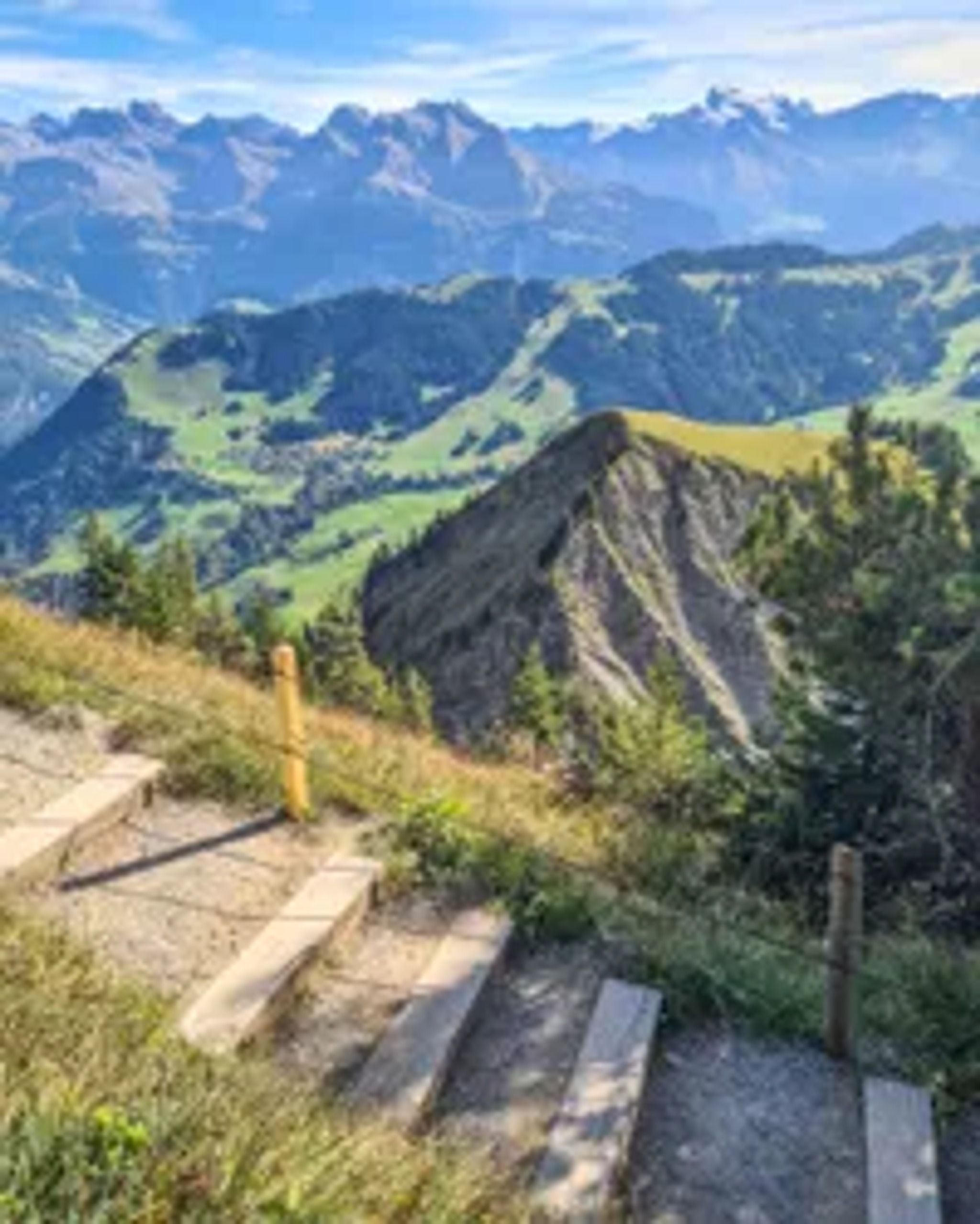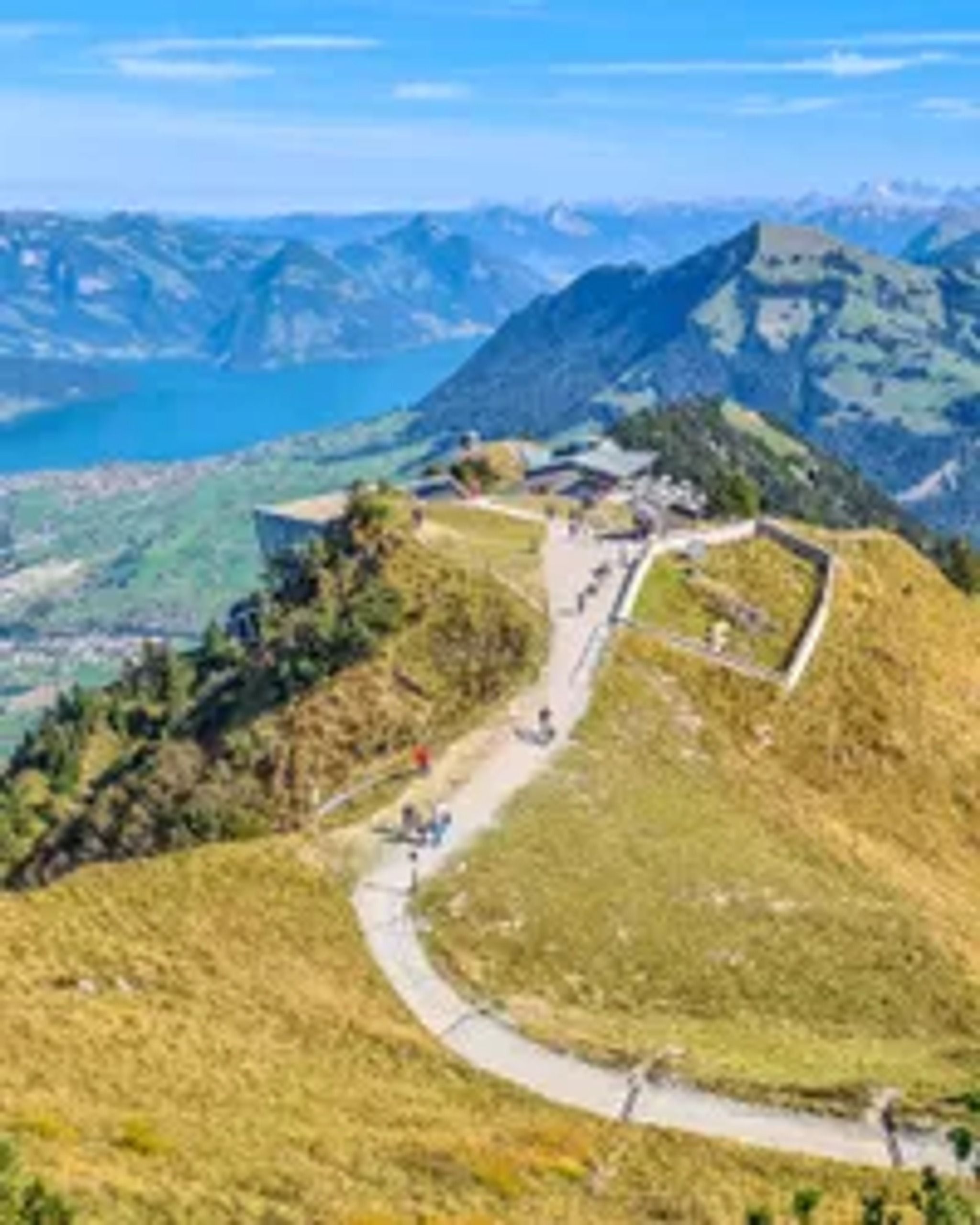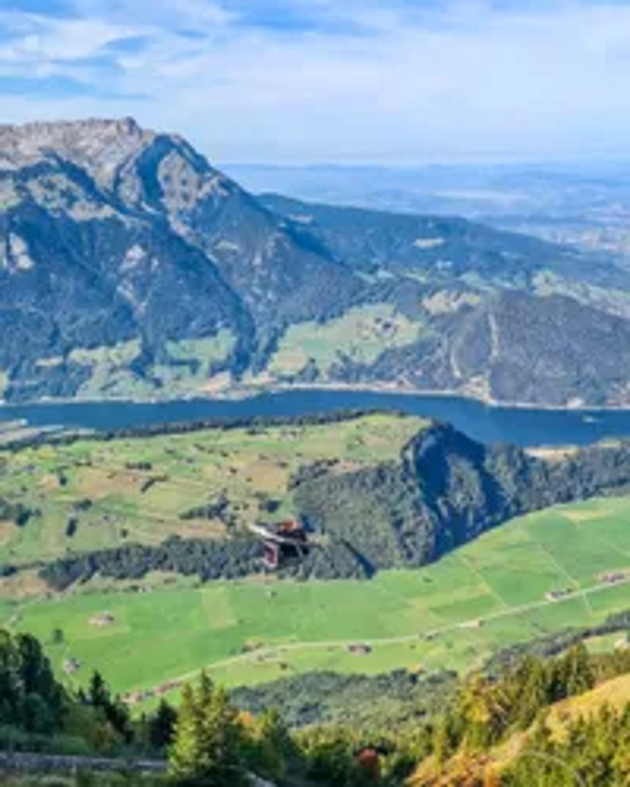 Stanserhorn is a tall mountain peak near Lucerne, offering a spectacular view of lakes, alpine meadows, and mountains in every direction.
