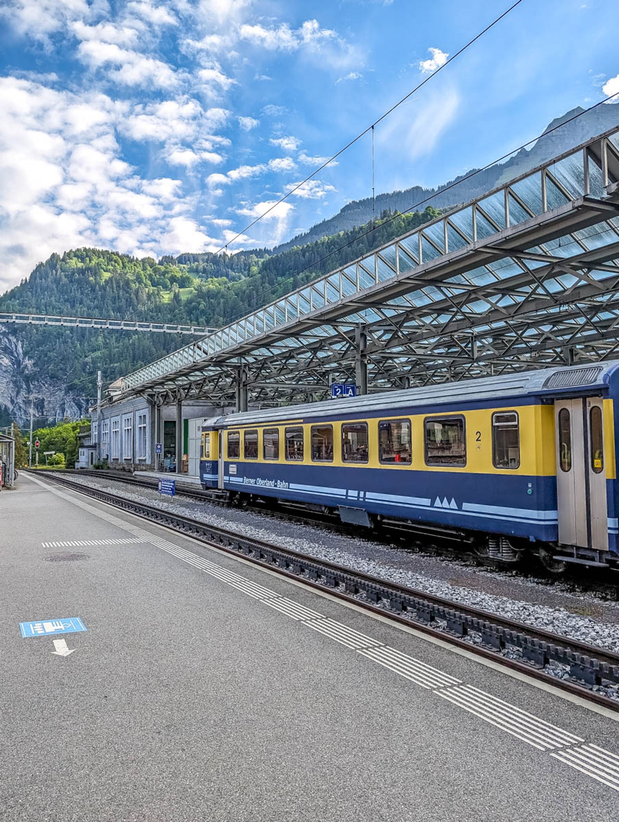 Ride to the Zweilütschinen stop. Exit the train and wait 8 mins, waiting in section CD labeled Grindelwald.