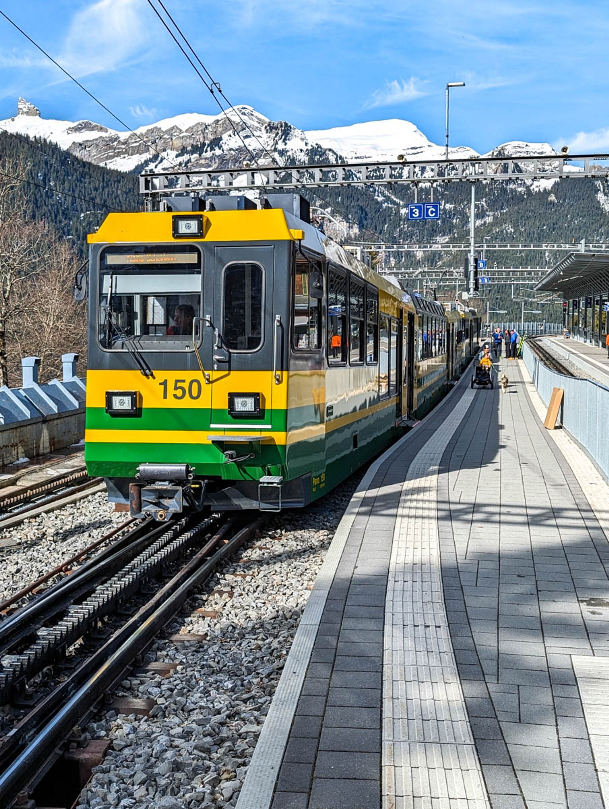 The Wengernalp Railway is a cogwheel mountain train, starting in the Lauterbrunnen valley going up to Kleine Scheidegg.
