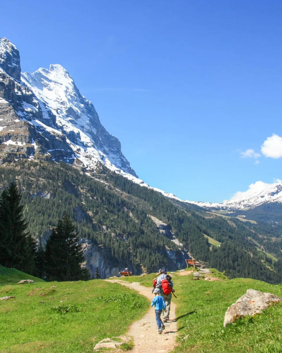 This trail is a narrow dirt path with switchbacks, suitable for casual hikers and families with younger kids that have some hiking experience. Much of the trail is in the forest, with occasional views of the Grindelwald valley.