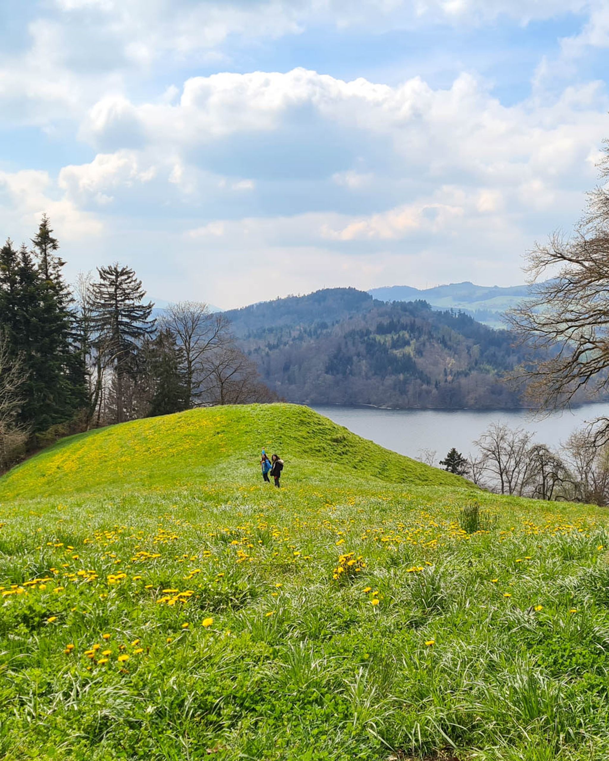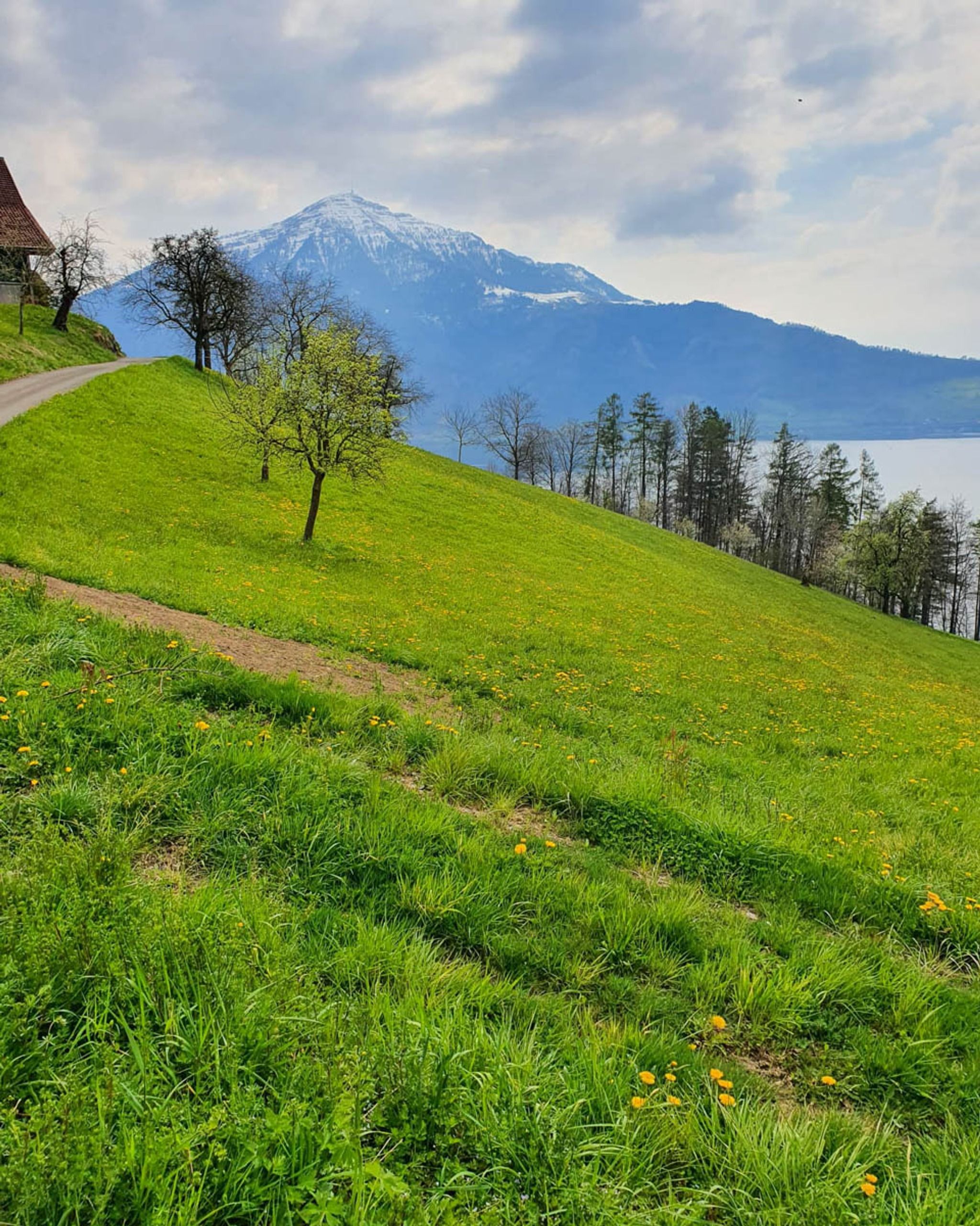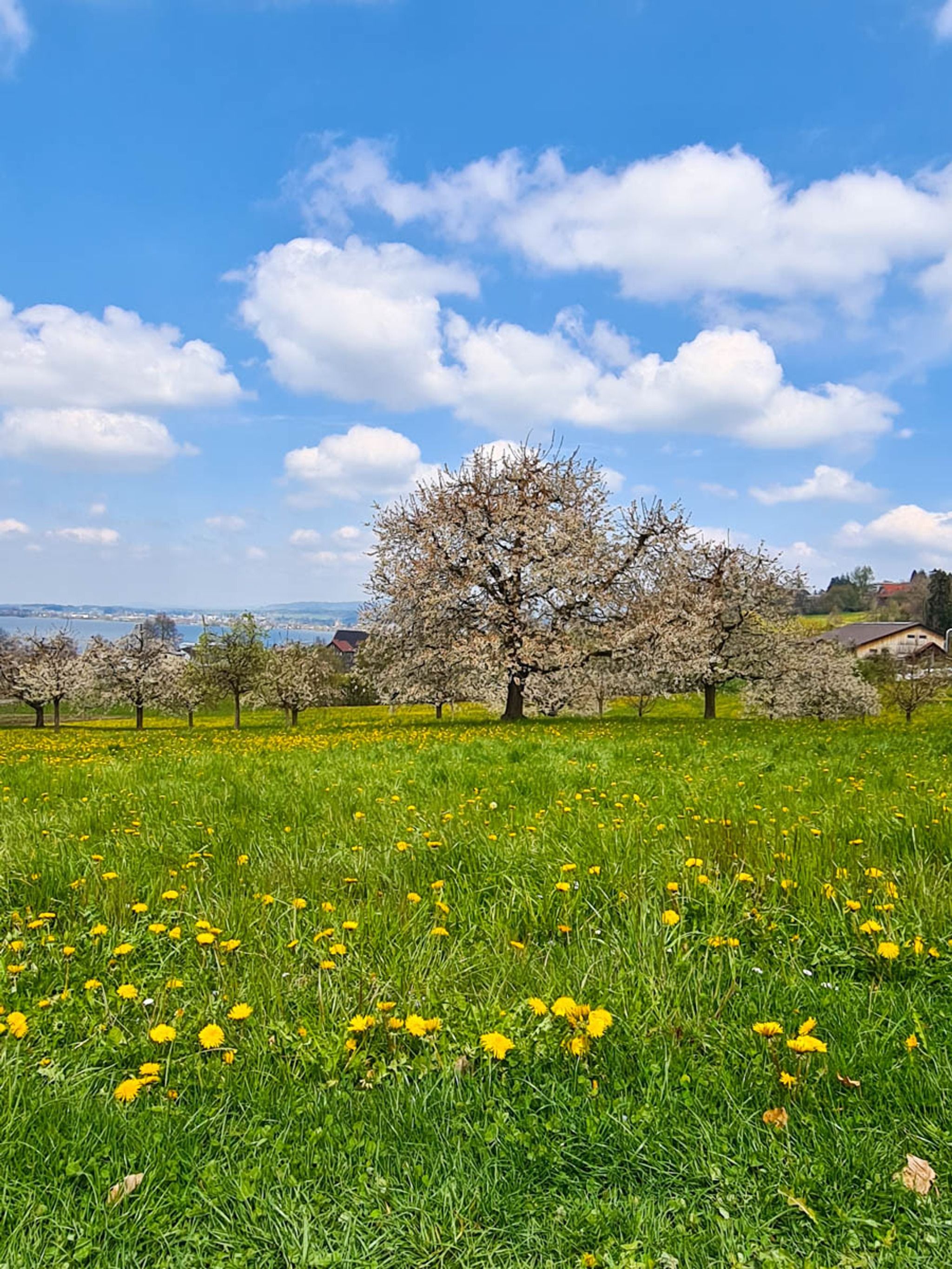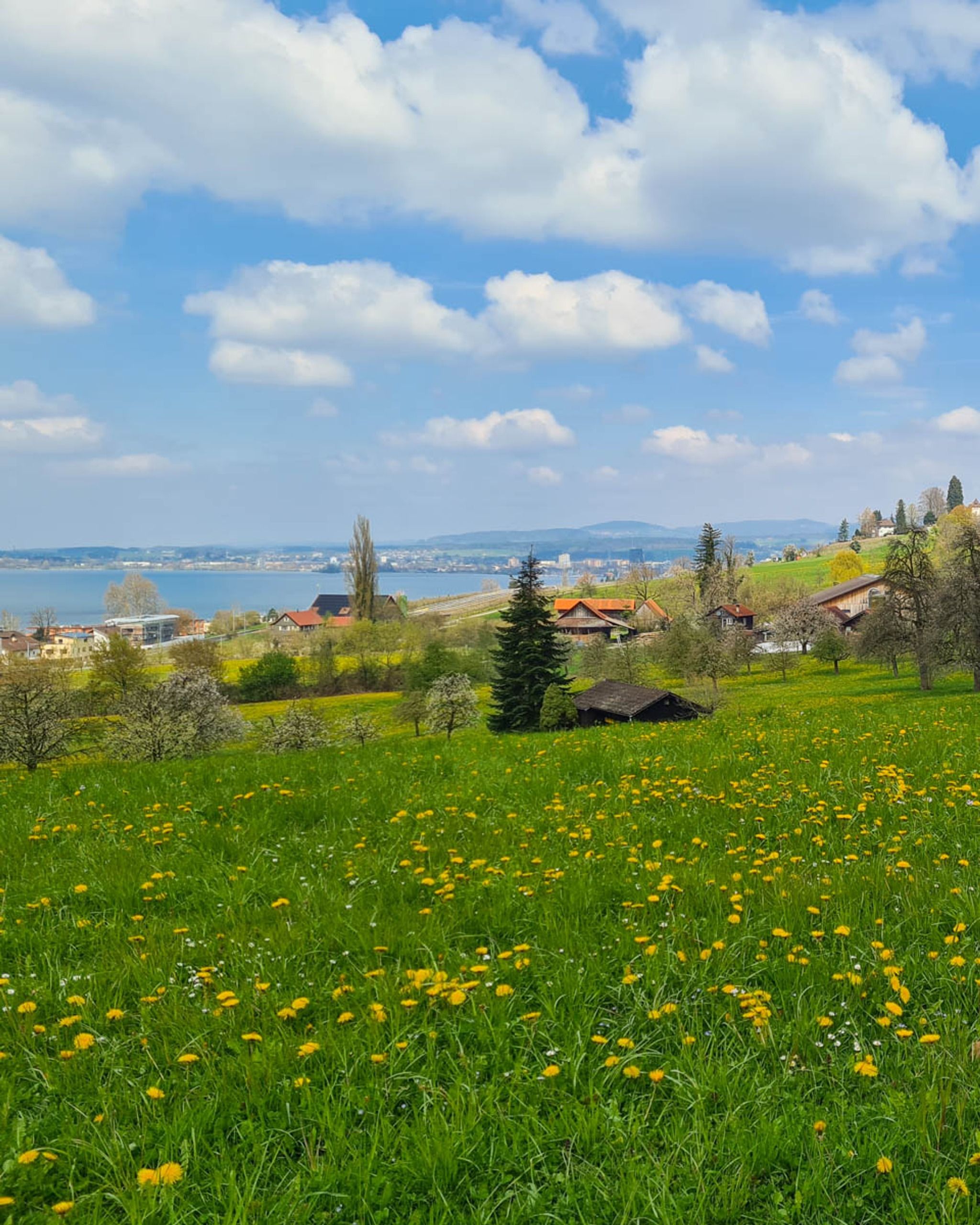 Spring flowers along lake