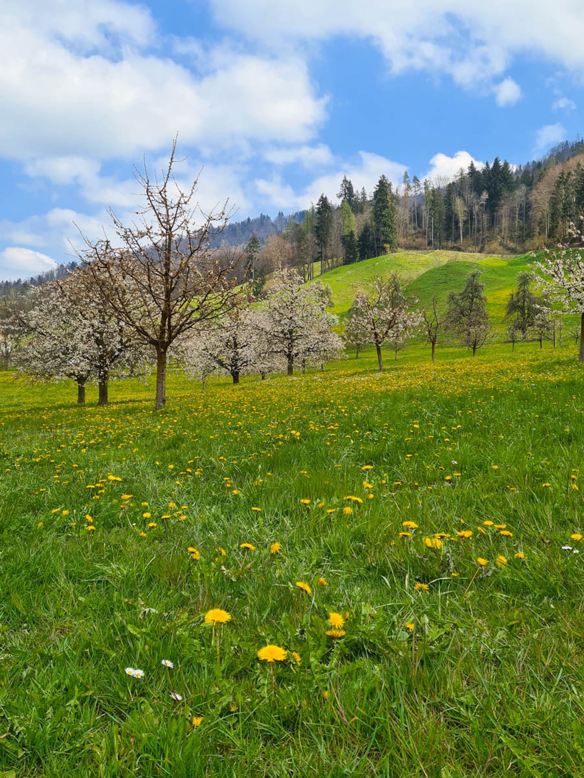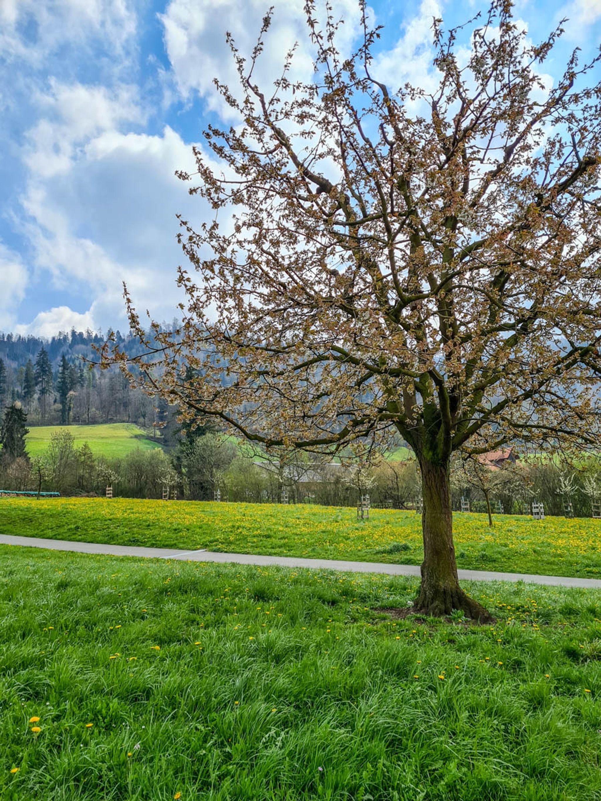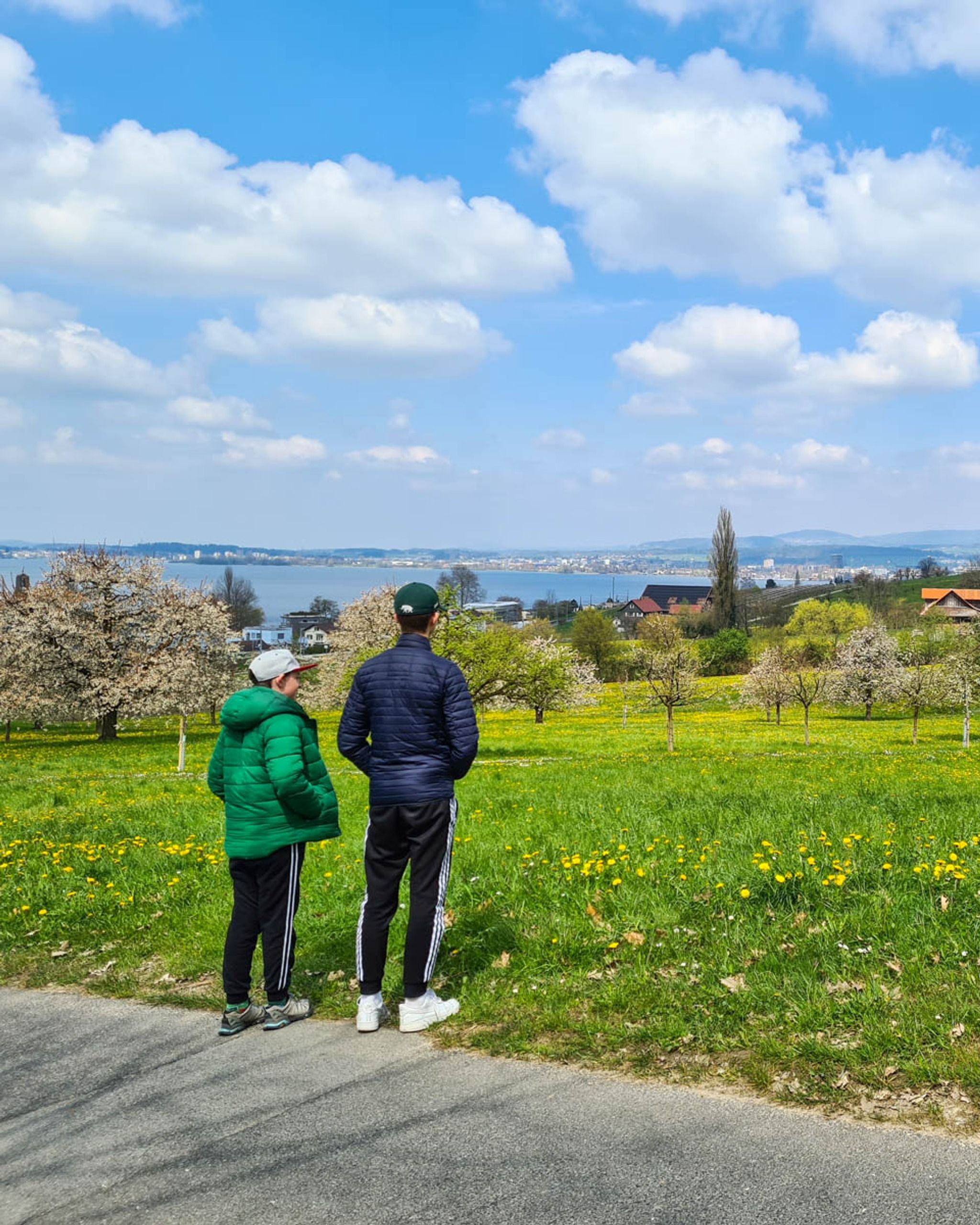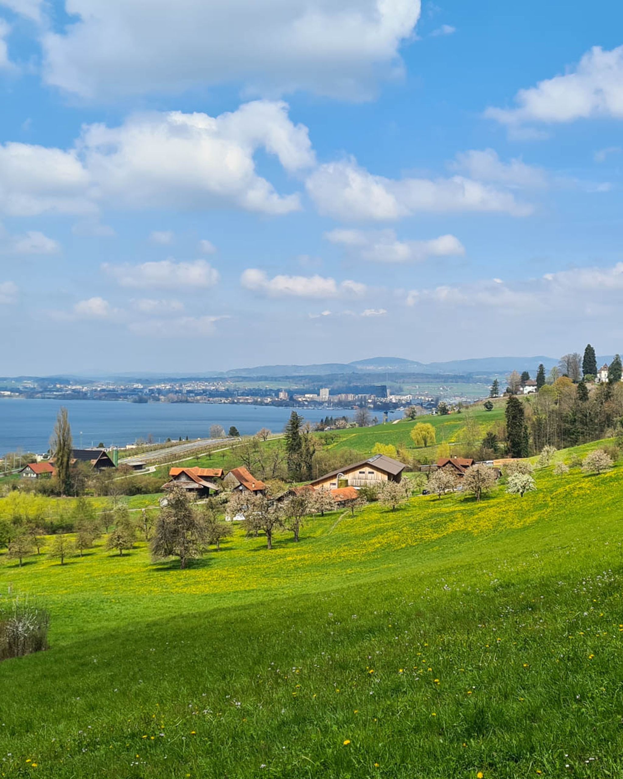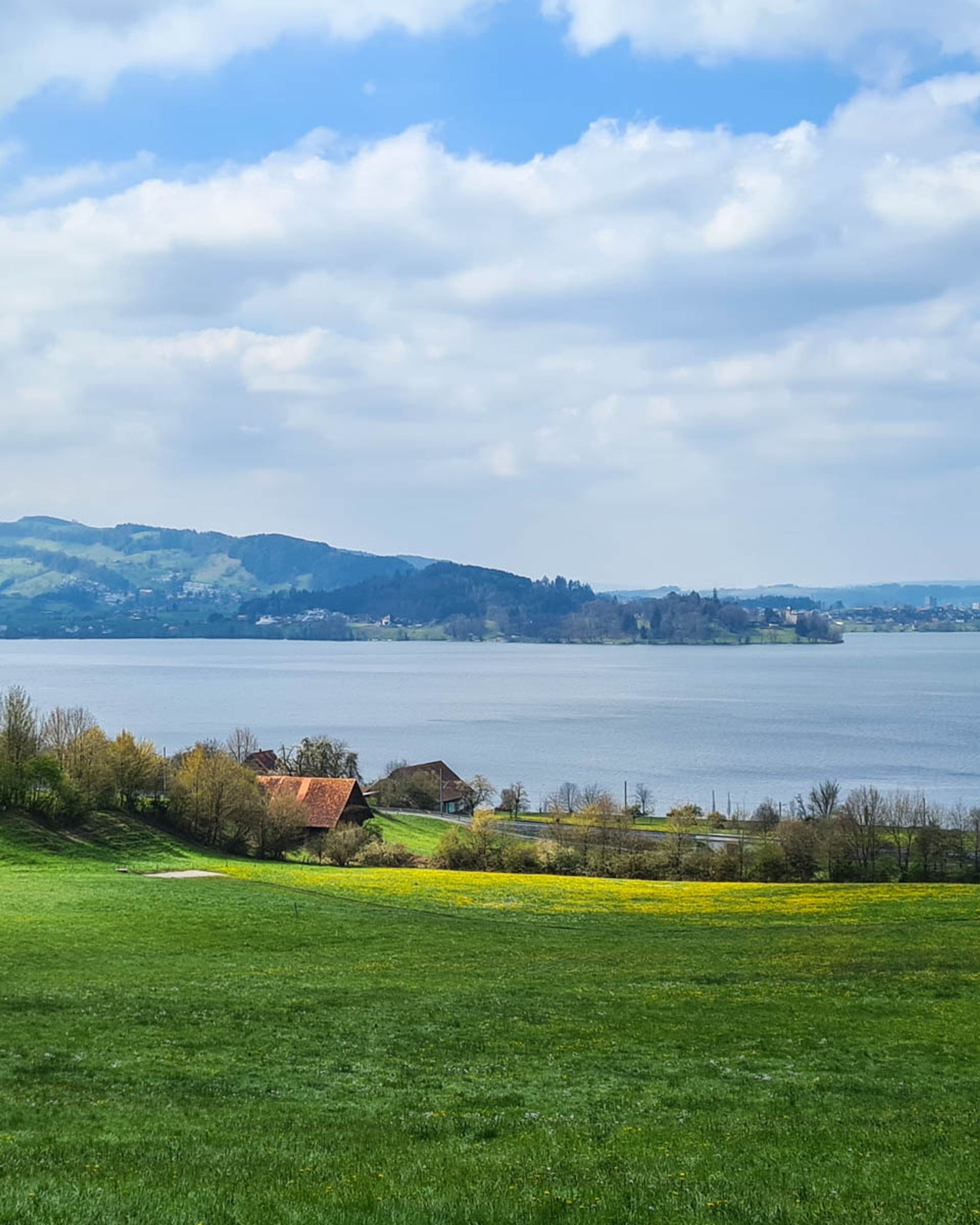 Spring flowers along lake