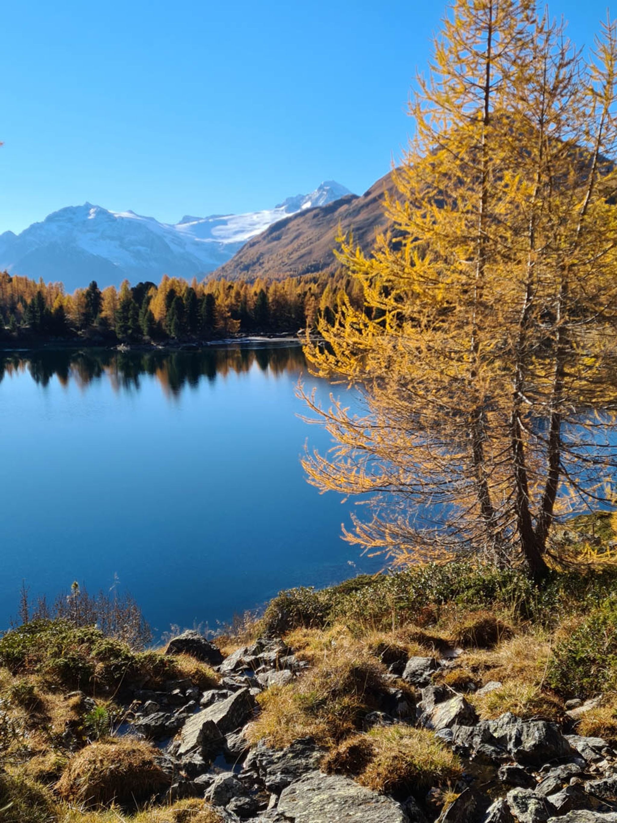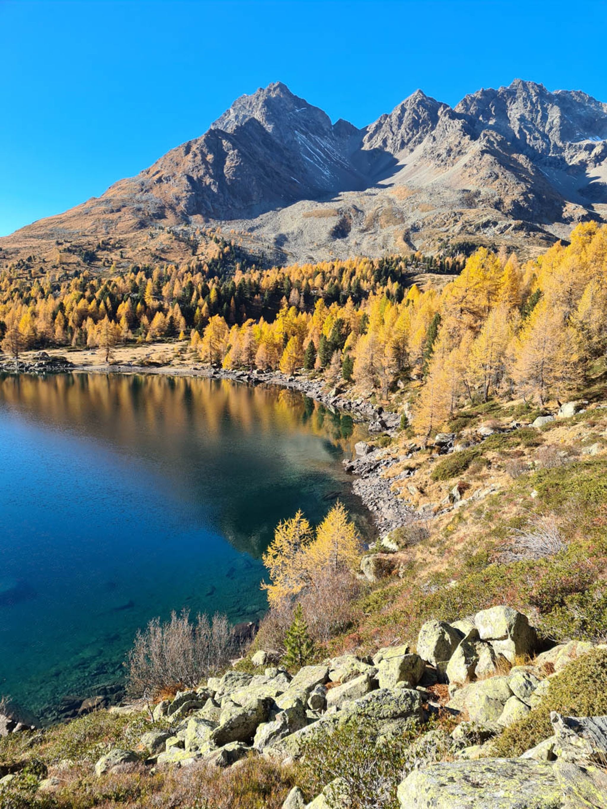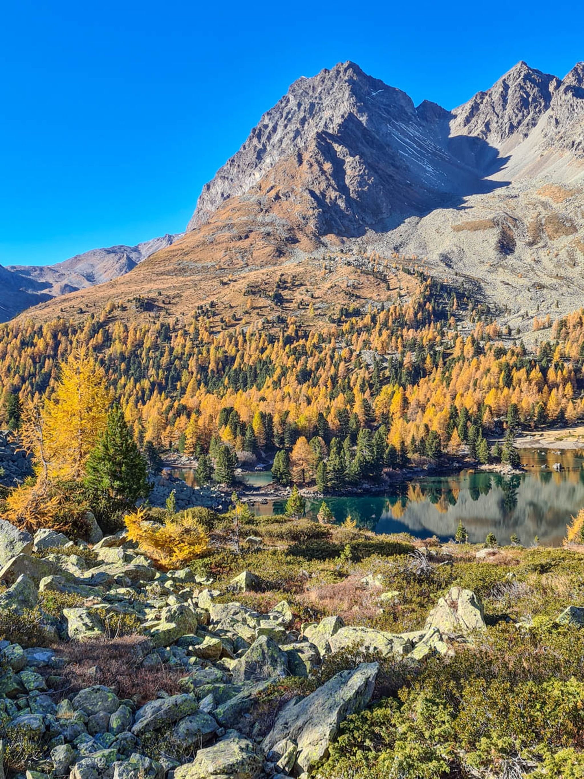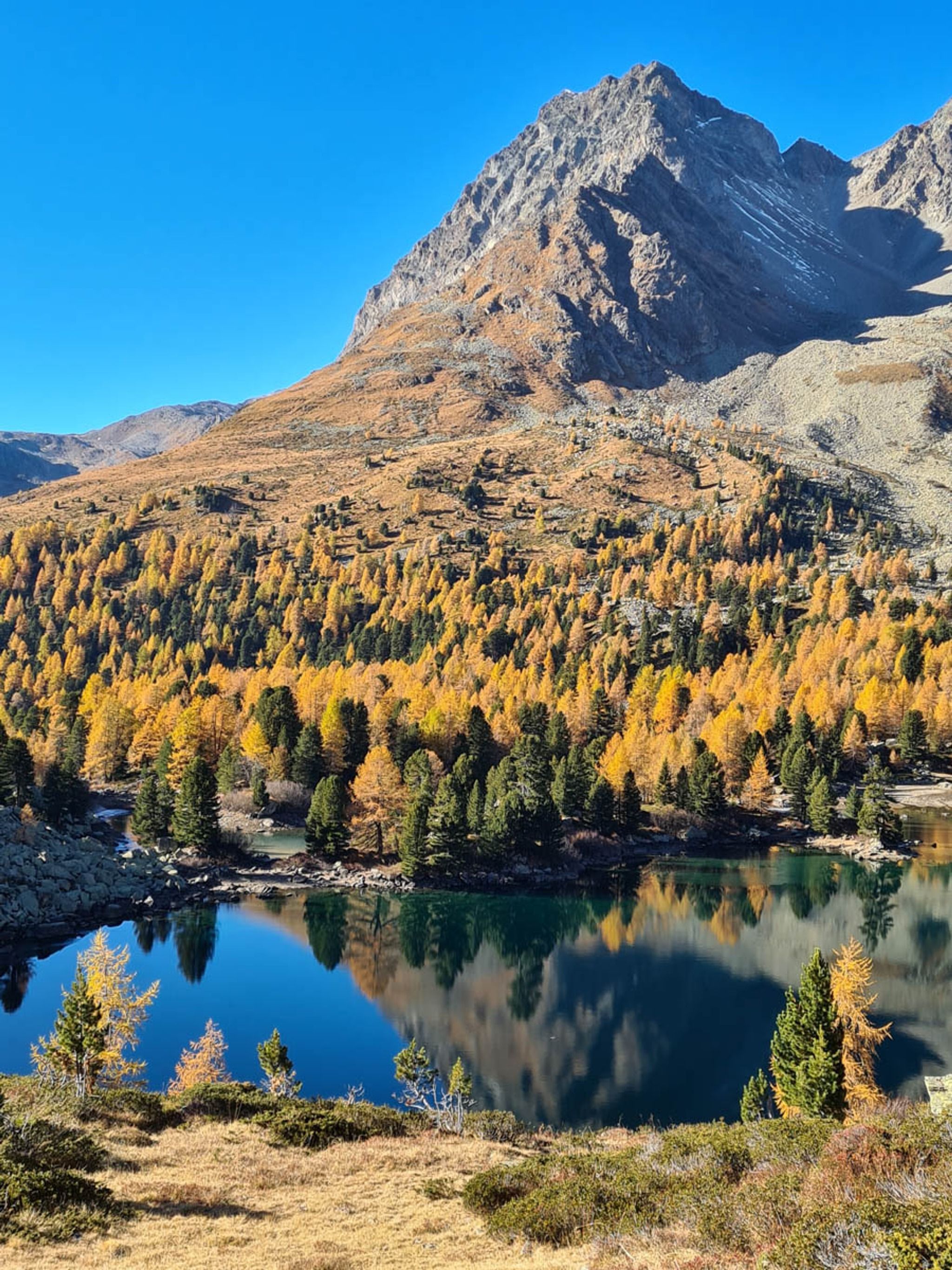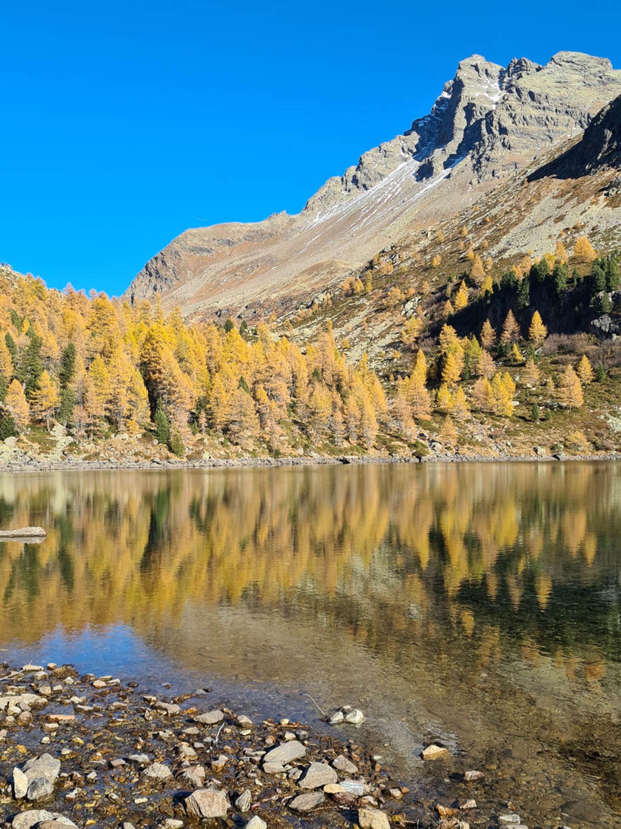 Our preferred hike is a loop that visits Lake Saoseo first then climbs into the mountainous landscape above the lakes. This gives you a fantastic bird's eye view of Lake Viola as you descend the mountain at the far side of the loop.