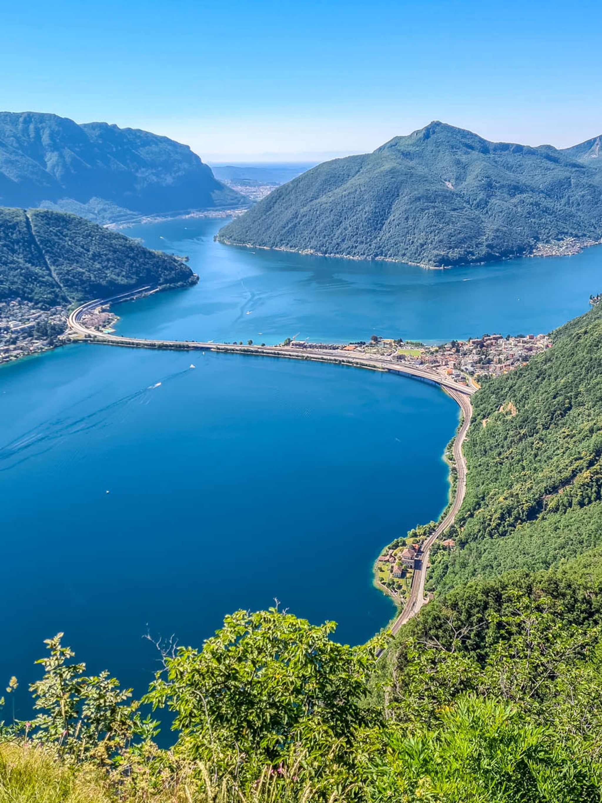 If you want to hike, the most popular option is hiking across the mountain to the Morcote village. Then you can return by boat back to Lugano. It’s about 3 hours of walking, 9.2 km, with 190 m ascent and 740 m descent. See hiking map.