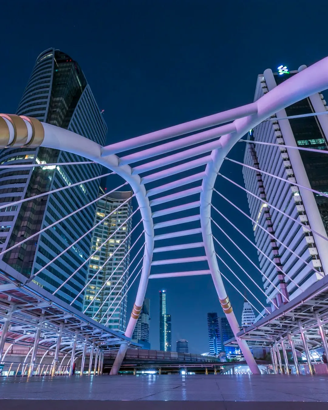 Moderní pěší most nad křižovatkou