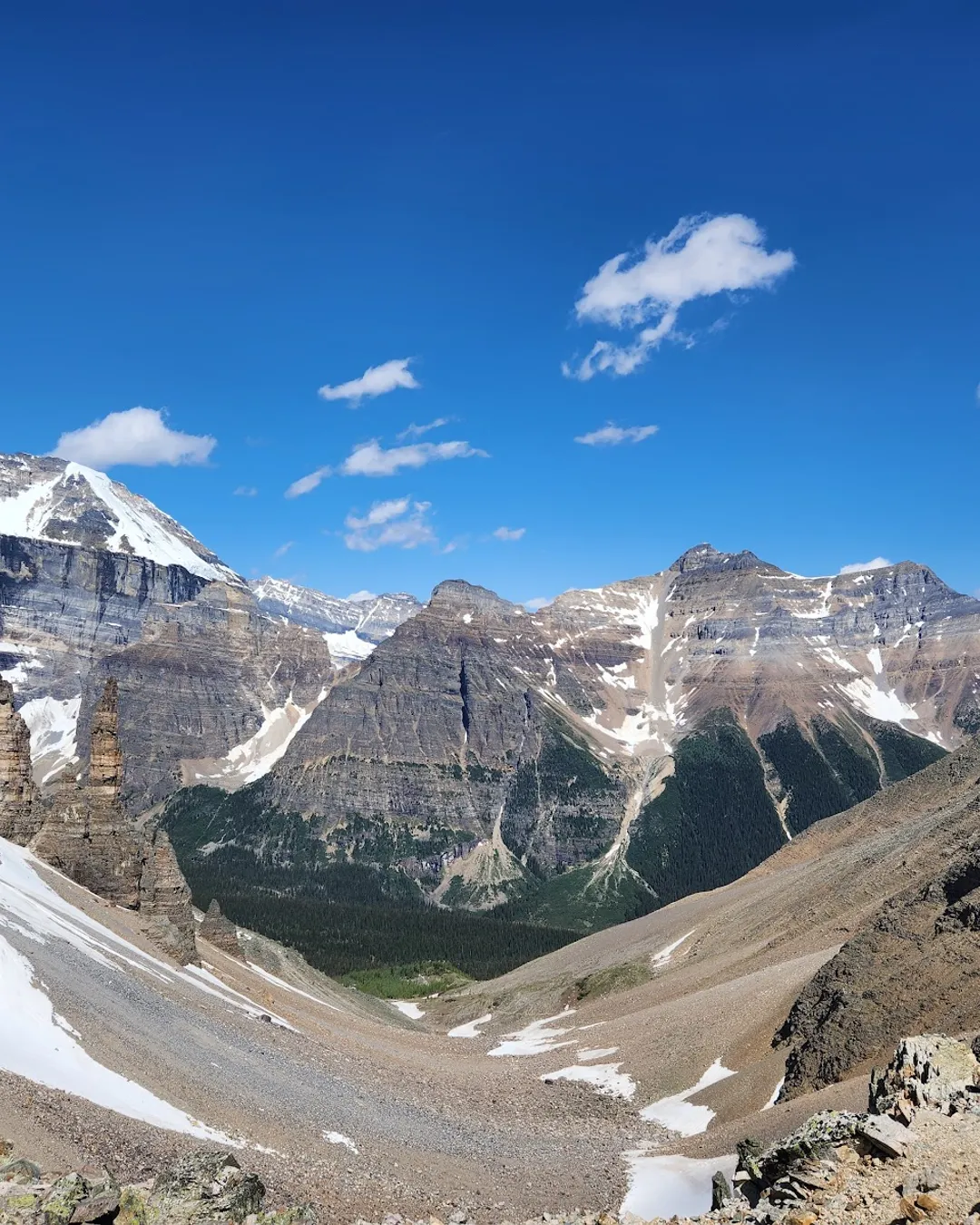 From the valley, the trail continues another 2.5 km up a rocky slope toward Sentinel Pass, gaining elevation quickly. It’s a good challenge but not too difficult. At the top, you're treated to 360° views: It's truly an unbelievable view.