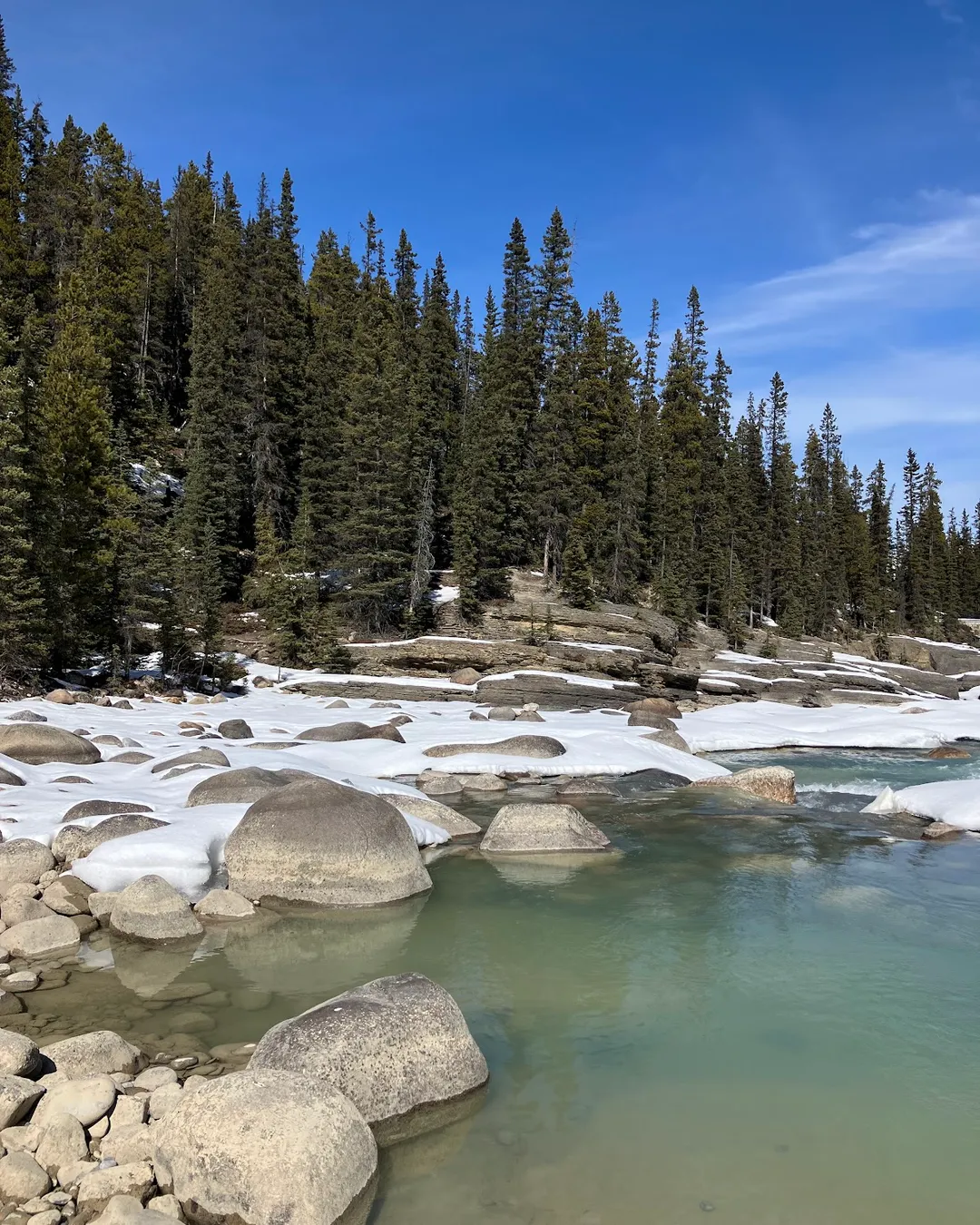From the parking area, it’s an easy 1 km walk down a wide gravel path to the canyon, with a mild descent that makes it suitable for most visitors. As you approach, you'll hear the sound of the Mistaya River and then the canyon opens up beneath your feet. There's a sturdy bridge which gives you a head-on view of the swirling water below - a favorite spot for photographers.