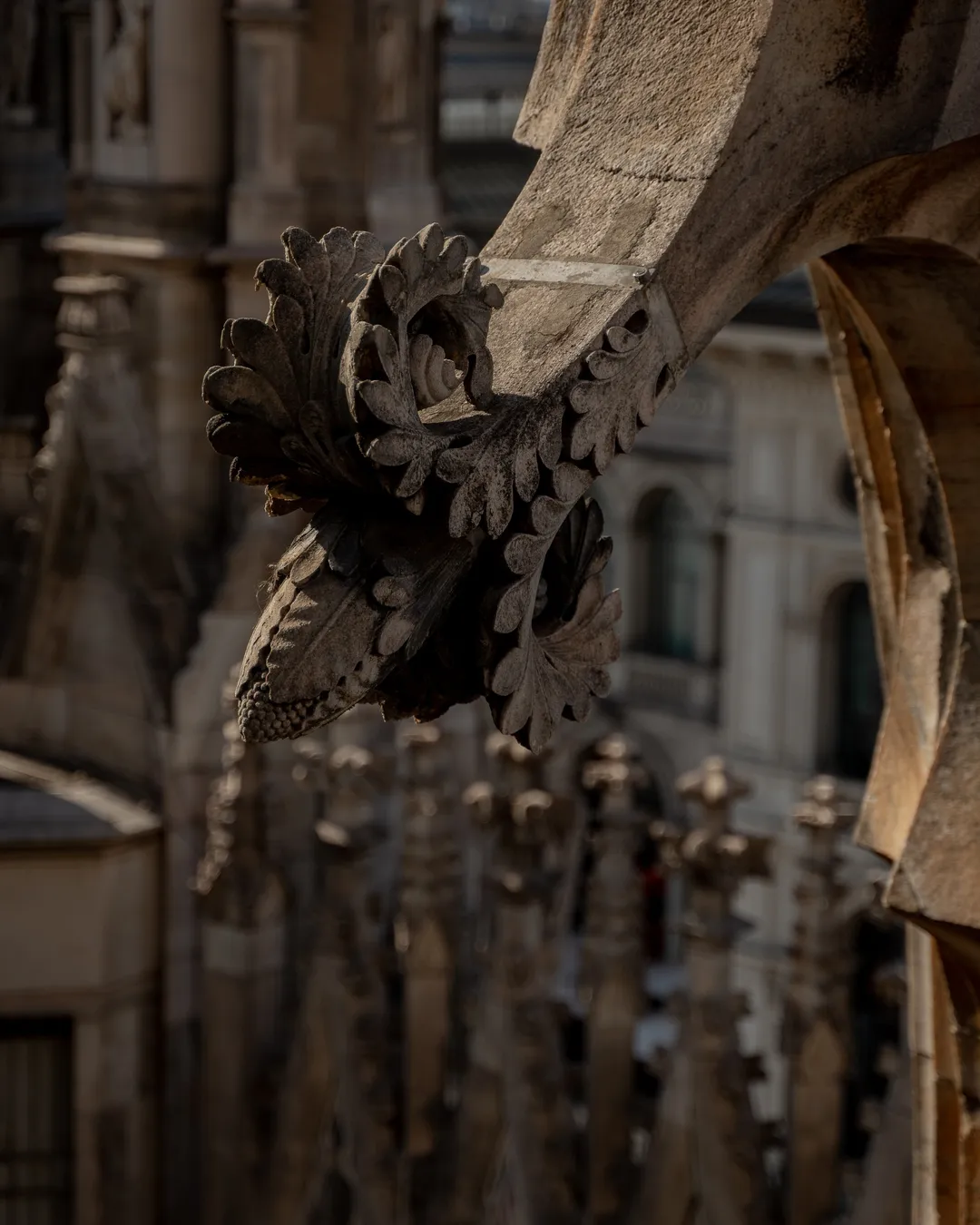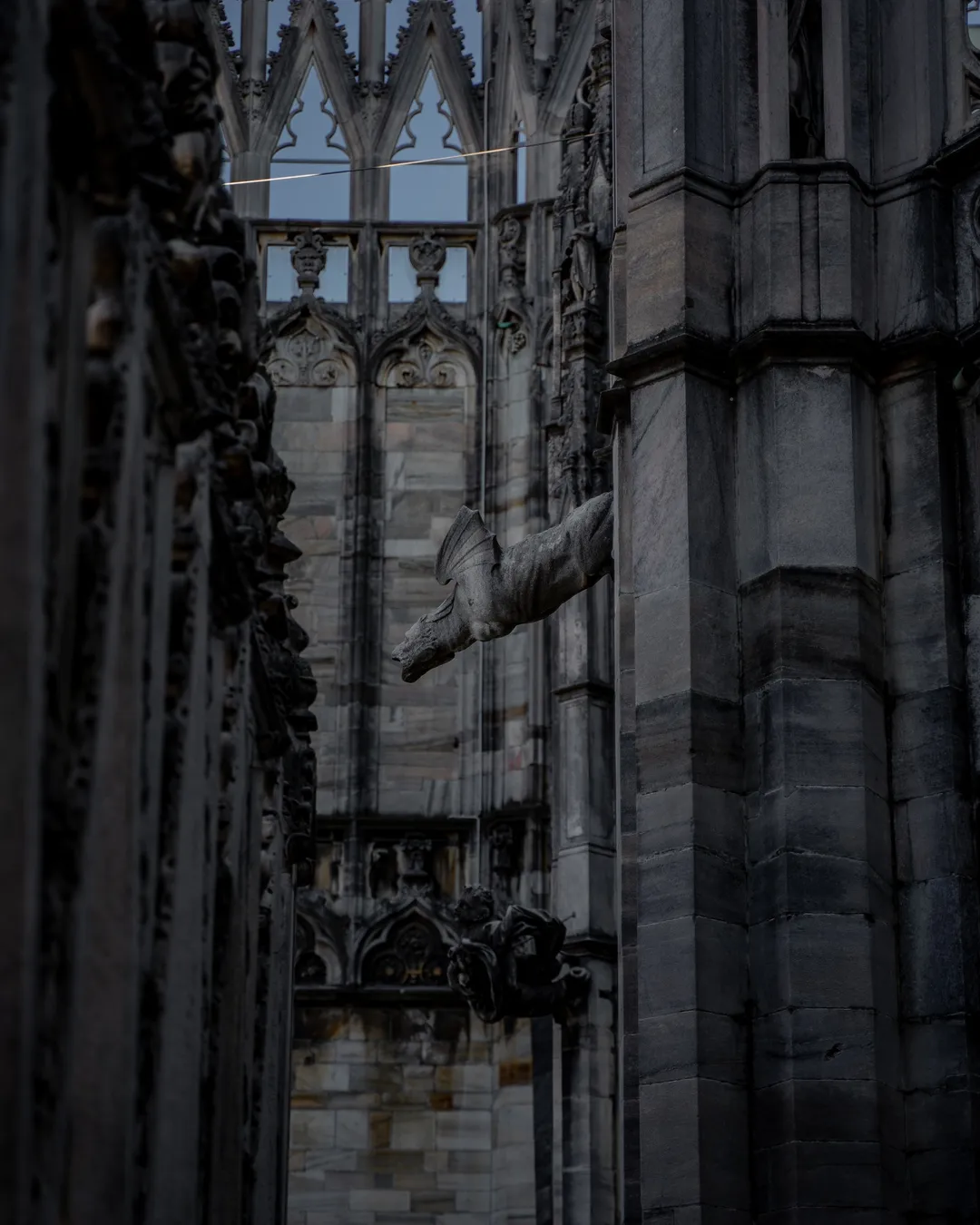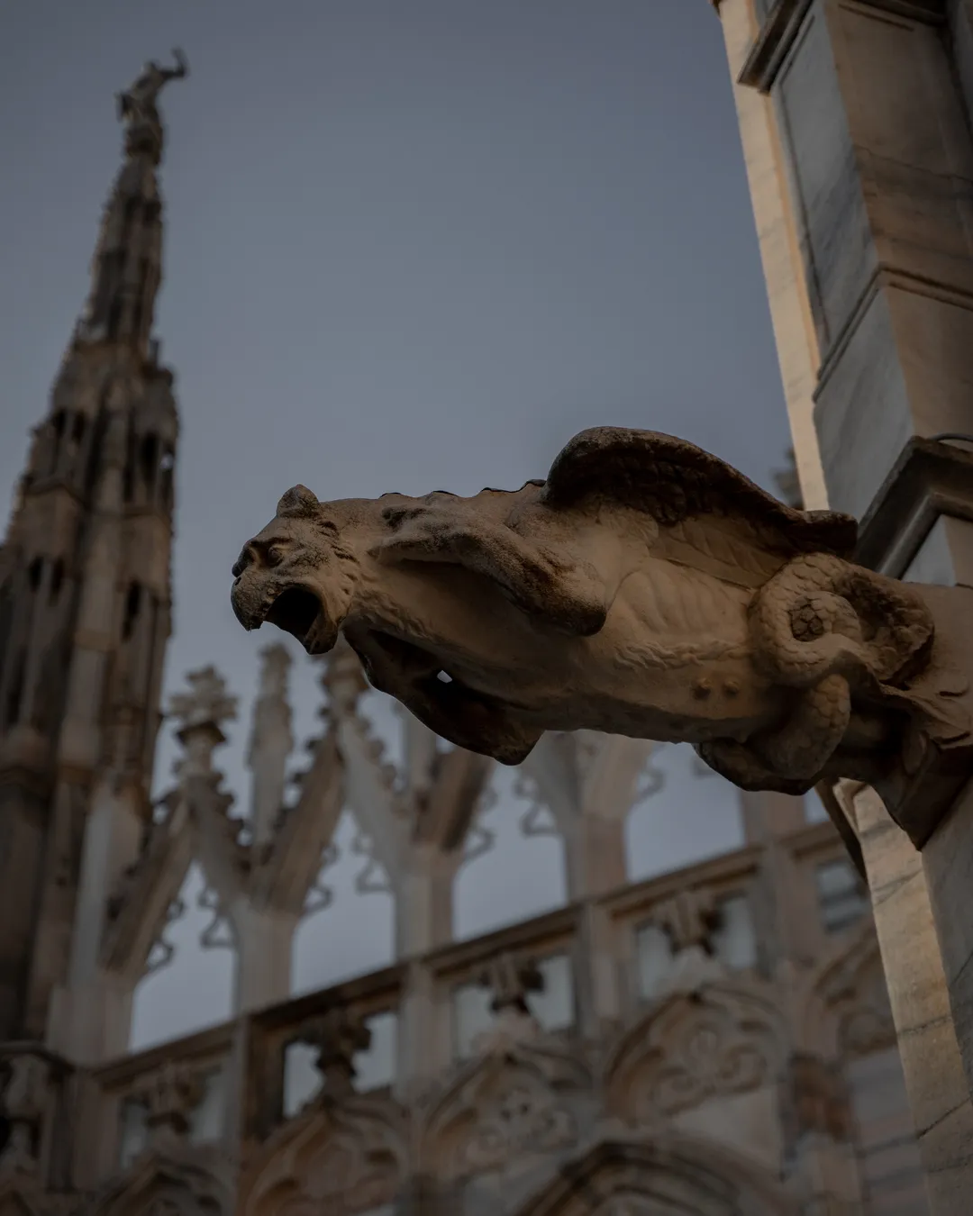 To complete your visit head up to the magnificent rooftop where you can walk through the terraces and get a close-up perspective of the cathedral’s gargoyles, marble statues and soaring design. The main spire known as the ‘Tiburio’, is 108m in height and includes a golden ‘Madonnina’ which is thought to radiate hope, glory and salvation across the city. Make sure to look out for the intricate tracery on the pointed arches on the roof, which I found especially interesting with each one showcasing a different style of carving including: demons, snakes and dragons. You can access the terrace via a 251-step stairway, but personally I would recommend taking the lift to the top and then walking back down!