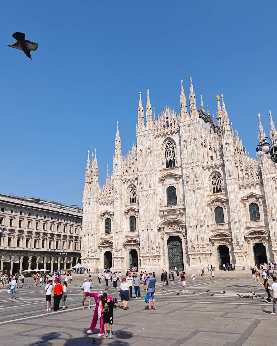 Welcome to the heart of Milan! You're standing before the Duomo, a masterpiece of Gothic architecture that took nearly six centuries to complete. Inside, you'll be captivated by the sheer scale of the nave and the light filtering through the magnificent stained-glass windows. For an unforgettable experience, take the elevator or climb the stairs to the rooftop terraces. Walking among the forest of spires while enjoying panoramic views of the city is a moment you won't soon forget. Don't miss the archaeological area underneath, where you can step back in time to the origins of the city.