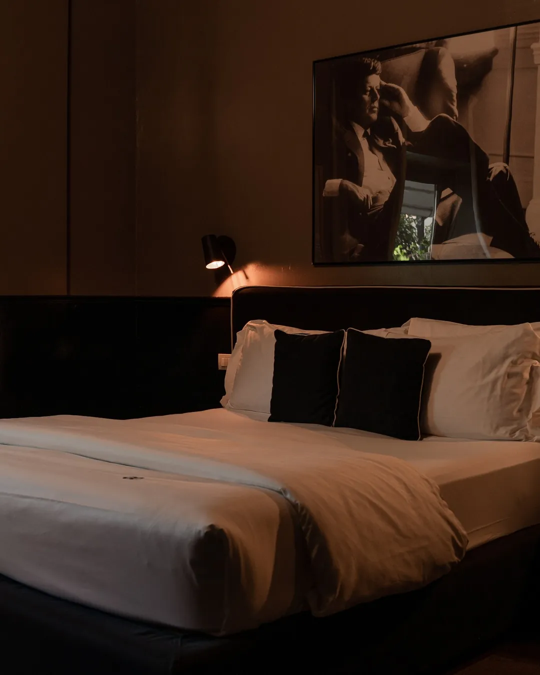 Each of the 32 rooms has its own design and spirit, brimming with unique items sourced from antique shops and flea markets around the world. Some of the room designs are inspired by sport and include vintage memorabilia including old bowling skittles, boxing gloves, roller skates and riding boots whilst others are influenced by specific locations or people. I personally stayed in the JFK suite which was designed in a dark colour palette and included a king size bed, velvet upholstery, a hand-made retro cabinet and a spacious balcony overlooking the courtyard.