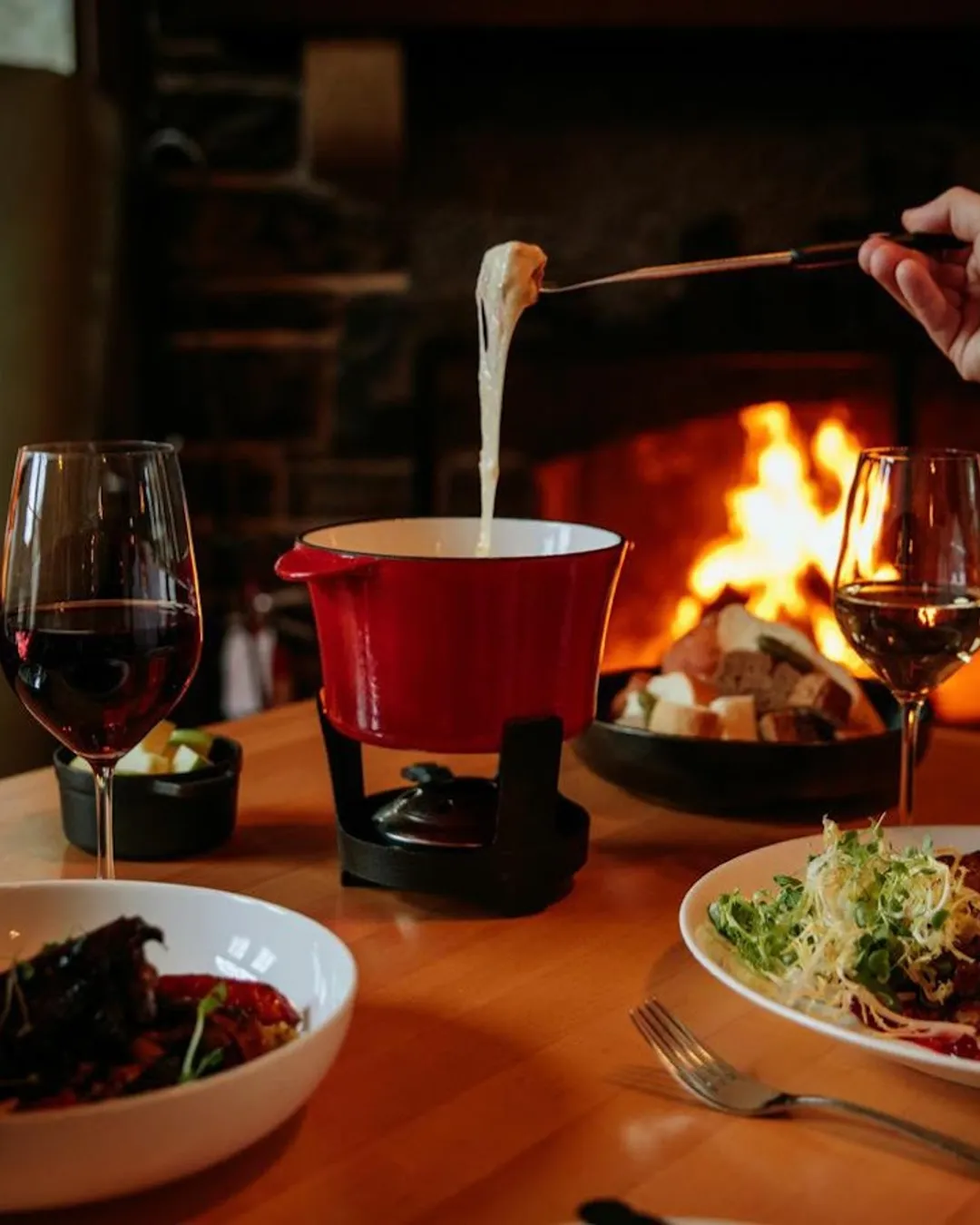 Tucked into the forest below the Fairmont Banff Springs, the Waldhaus — "house in the forest" in German — is one of Banff's most charming and characterful dining spots. A short walk down from the hotel past the Bow Falls, the restaurant sits where the Spray River meets the 15th hole of the Stanley Thompson golf course, in a rustic hunting lodge setting complete with dark wood panelling, a large stone fireplace, and a cozy wine cabinet that sets the tone perfectly.