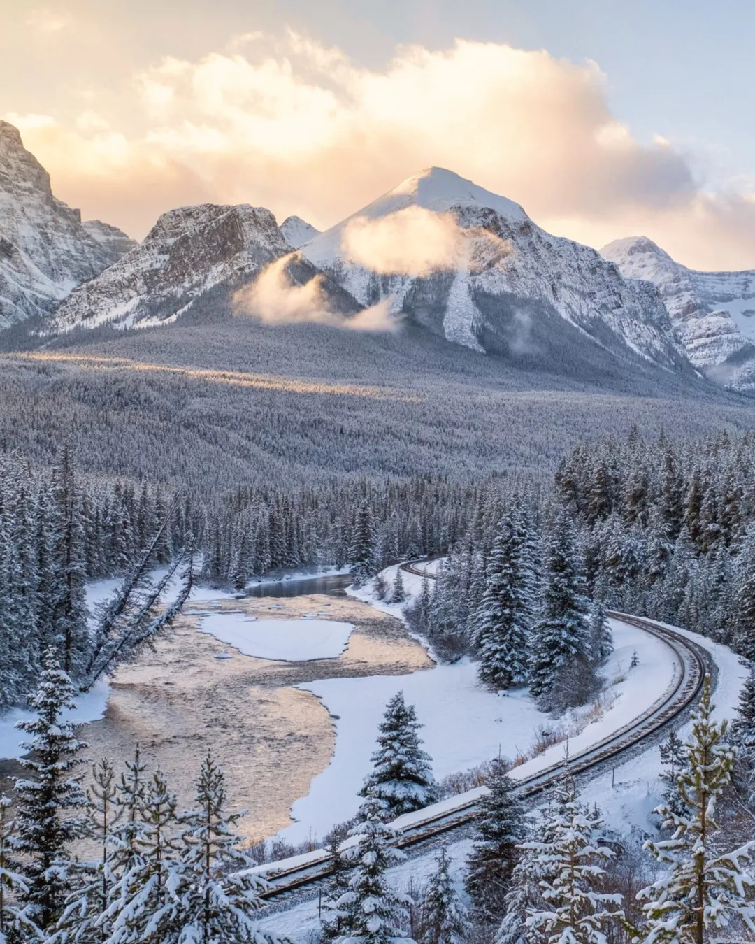 Morant’s Curve – One of the most iconic photography spots in Banff, where trains curve along the Bow River with a stunning mountain backdrop.