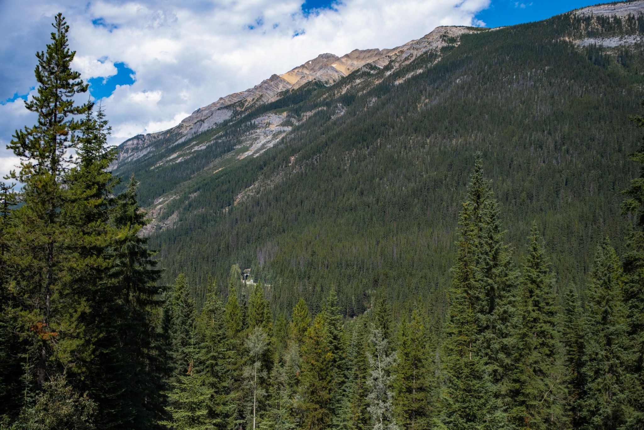We always make jokes about the Spiral Tunnel Viewpoint whenever we pass by, as it's one of the most underwhelming stops in the Canadian Rockies. The Spiral Tunnels are a pair of railway loops in Yoho National Park built in the early 1900s to solve one of the biggest challenges on the original Canadian Pacific Railway line through the Rockies. Trains were struggling to safely descend the steep grade over Kicking Horse Pass, so engineers literally drilled loops into the mountains, allowing trains to gain or lose elevation more gradually. When a long freight train passes through, you can sometimes see the front of the train exiting the tunnel while the end is still entering it — a clear visual of the engineering solution at work.