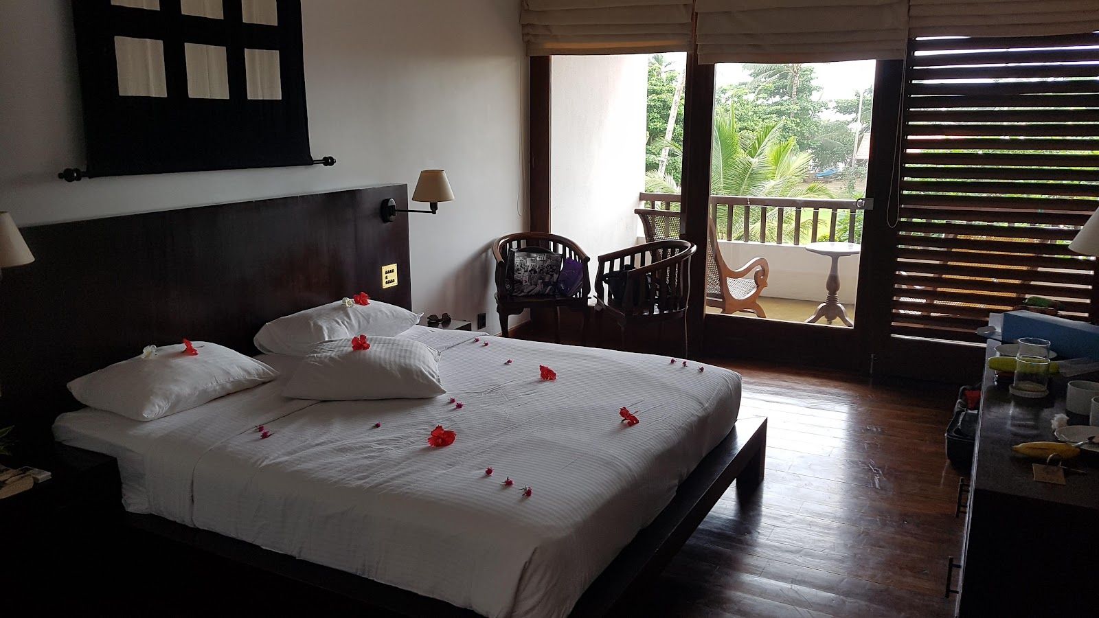 Featuring wooden flooring and dark wood furniture, the air-conditioned rooms at Weligama Bay Resortcome with a safety deposit box and minibar. A flat-screen TV and DVD player are provided, and movies are available from the hotel’s DVD library.