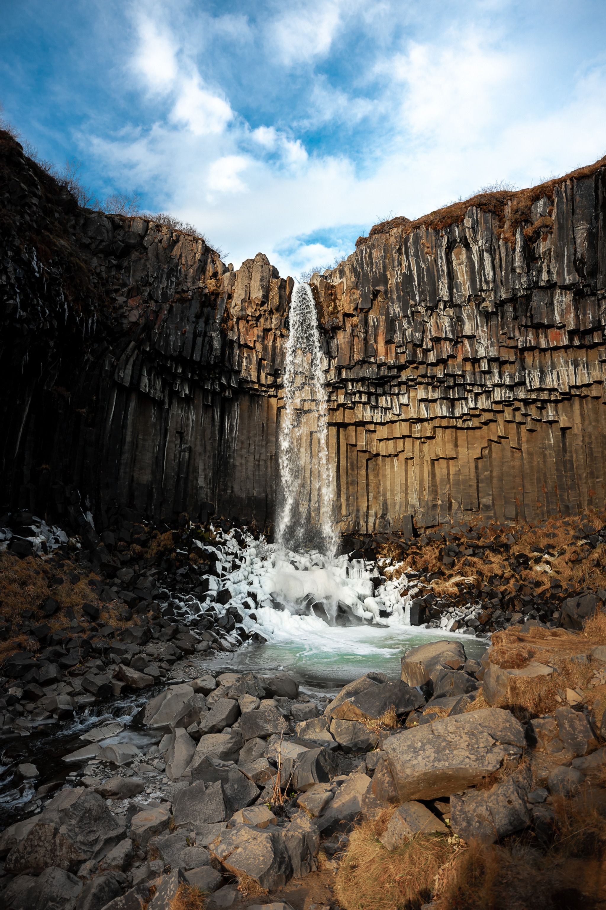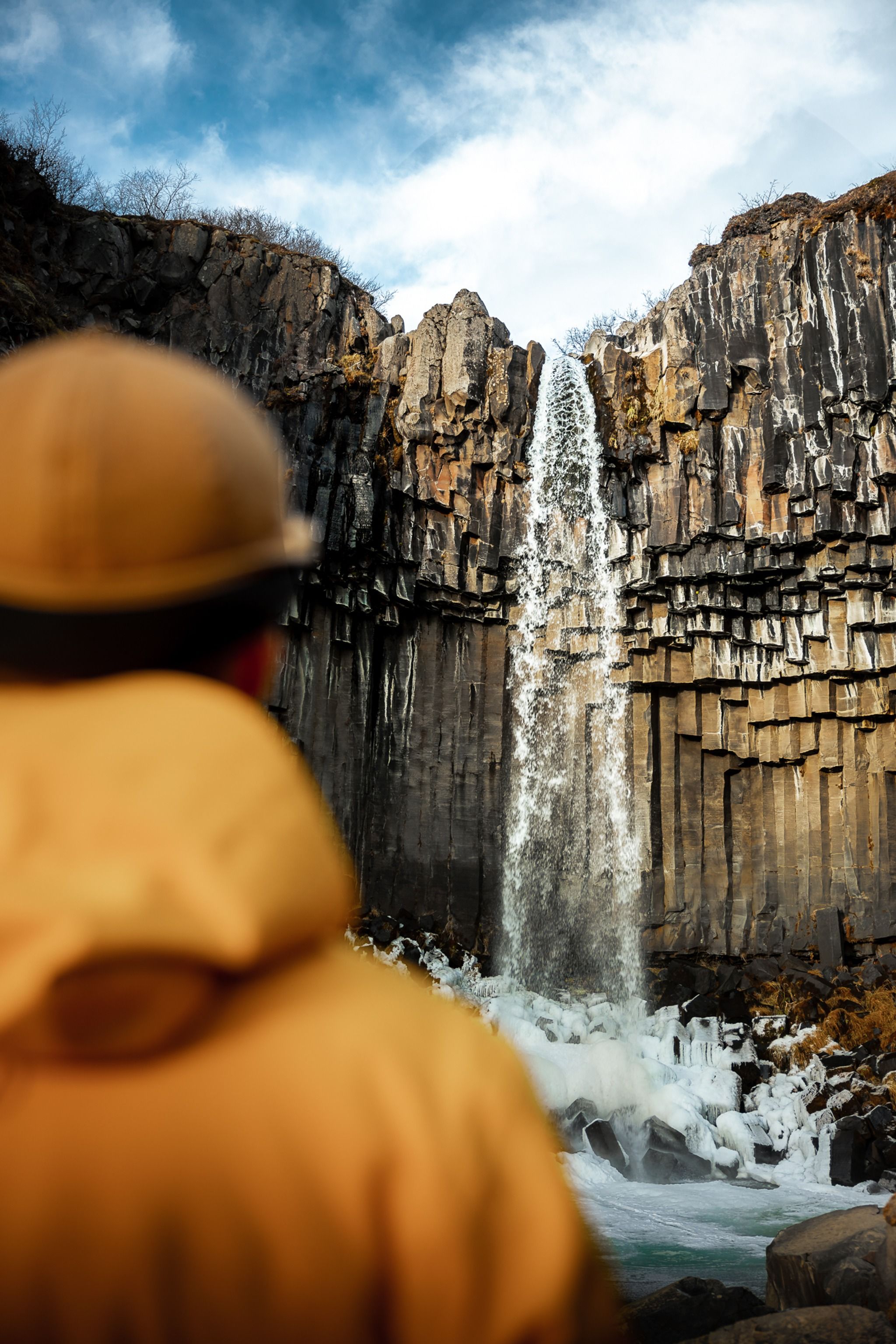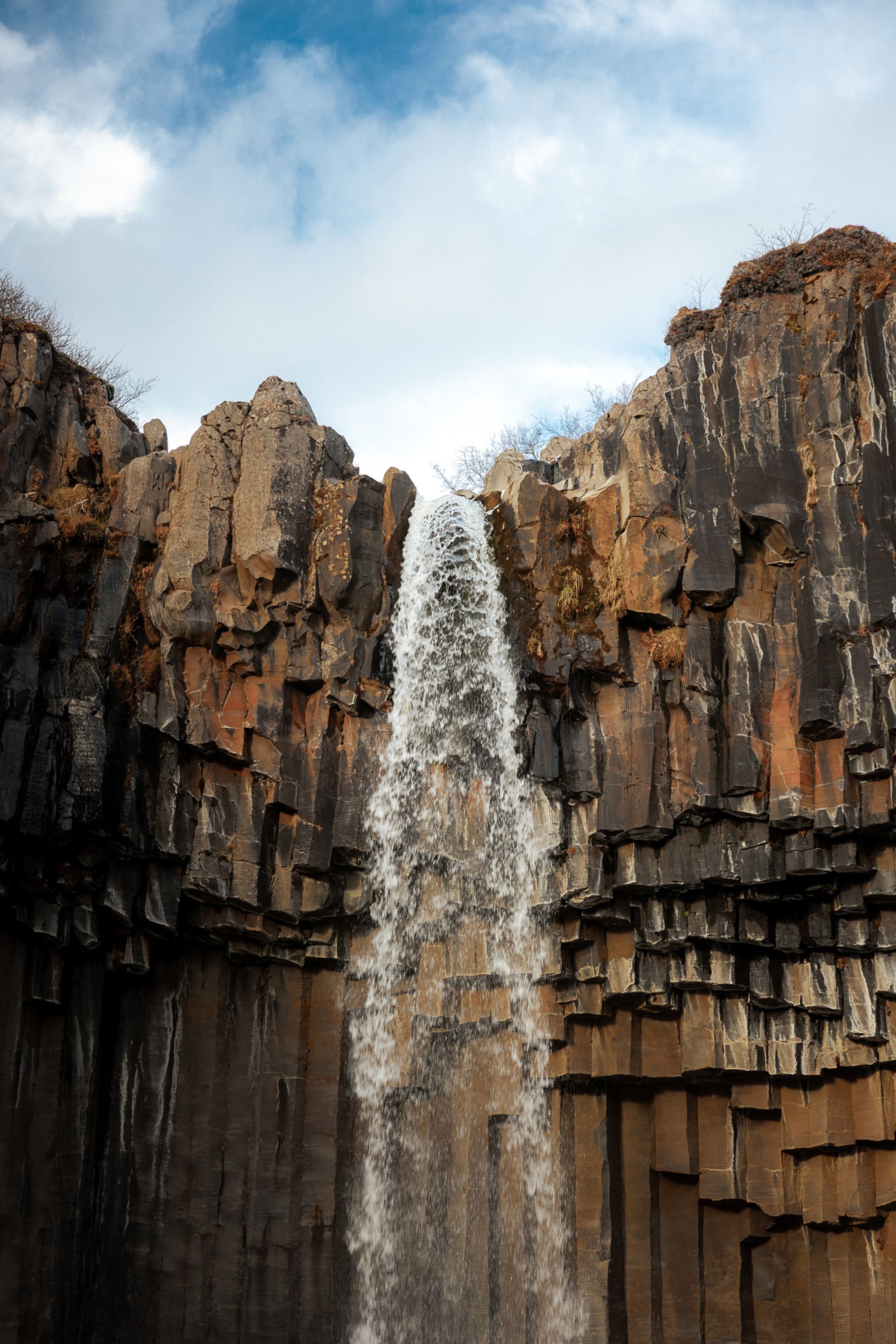 A beautiful waterfall surrounded by basalt columns
