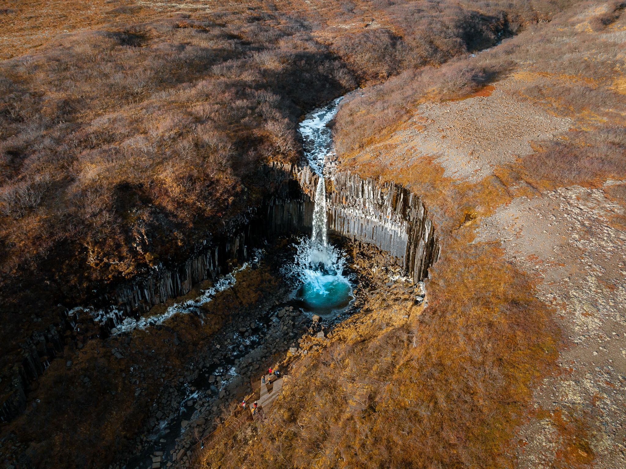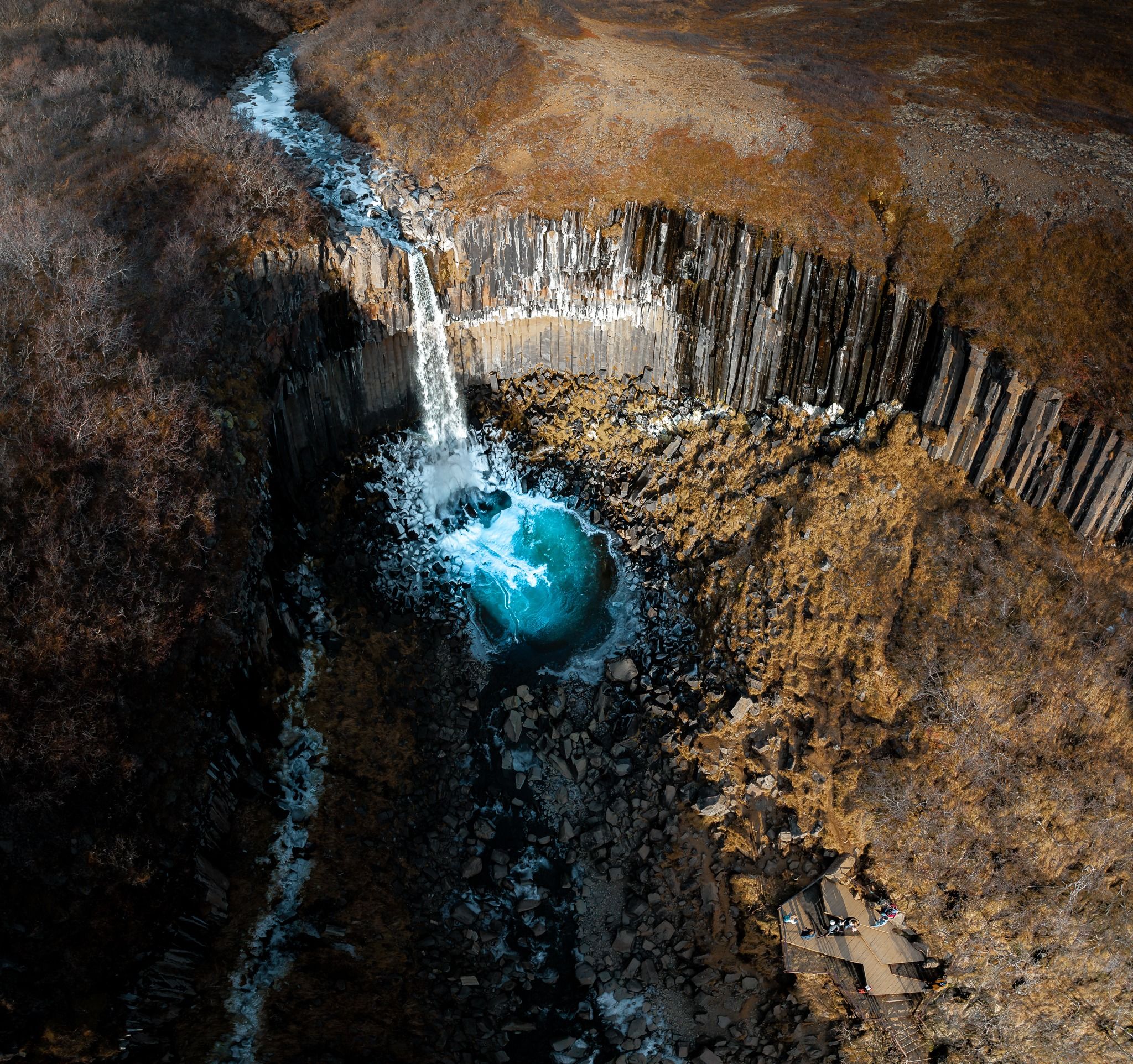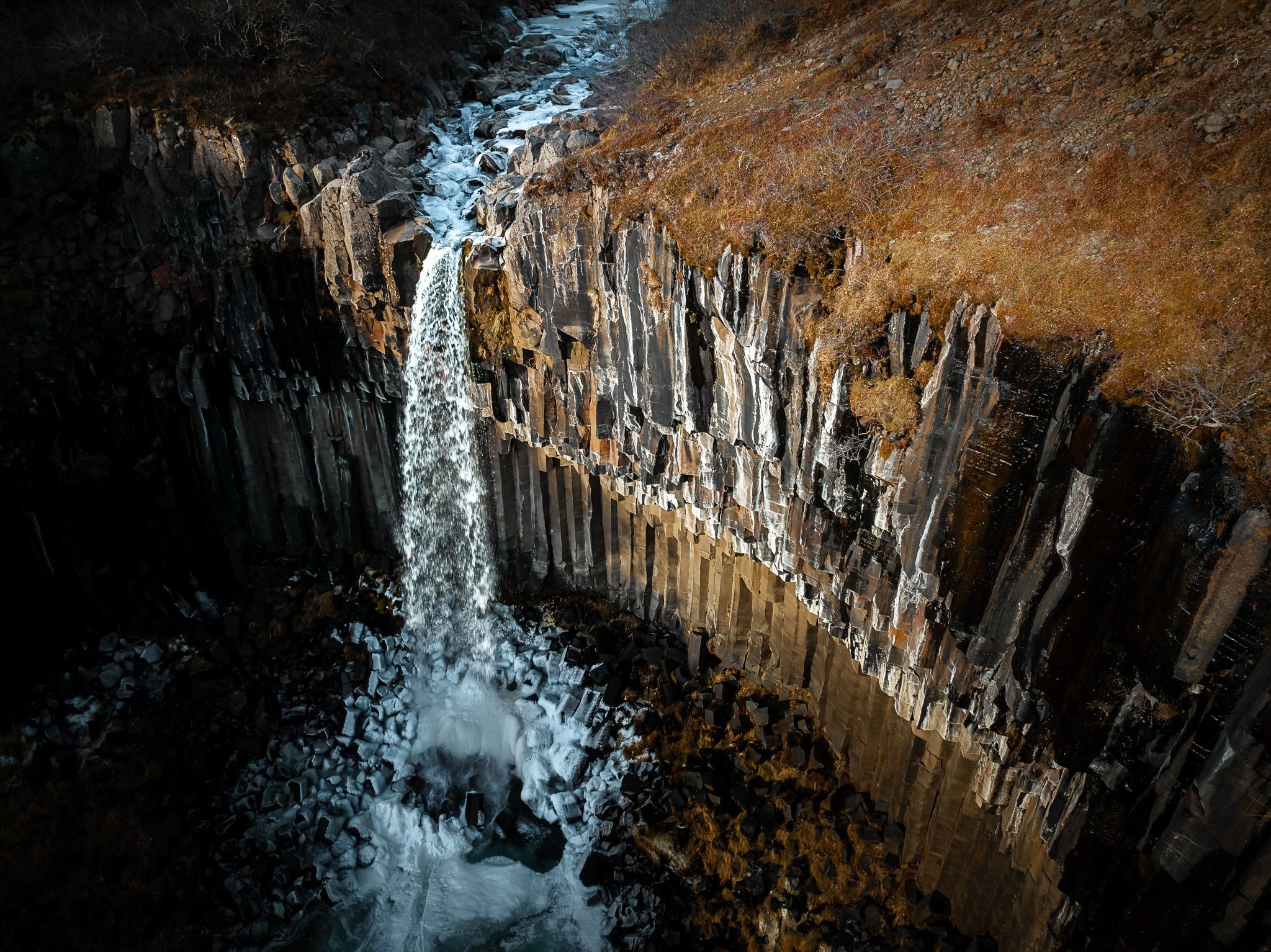 A beautiful waterfall surrounded by basalt columns