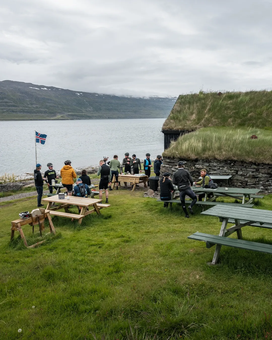 An old turf house serving as a museum and waffle spot