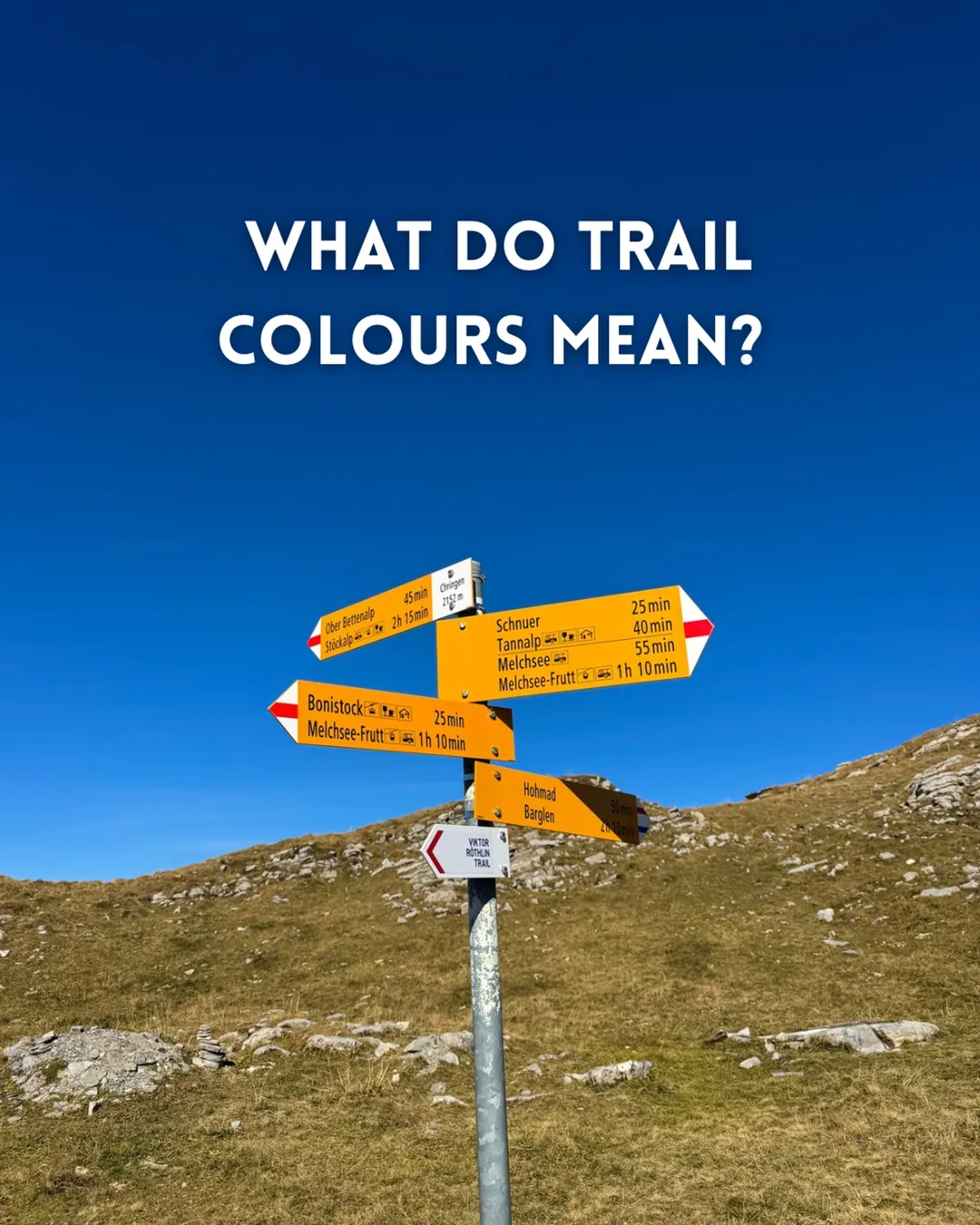 When choosing a hiking route, it is very important to be aware of how swiss hiking trails work and what each colour means. In the Swiss Mobility App you can find all the trails marked by colours, which can be useful when planning your hike.
