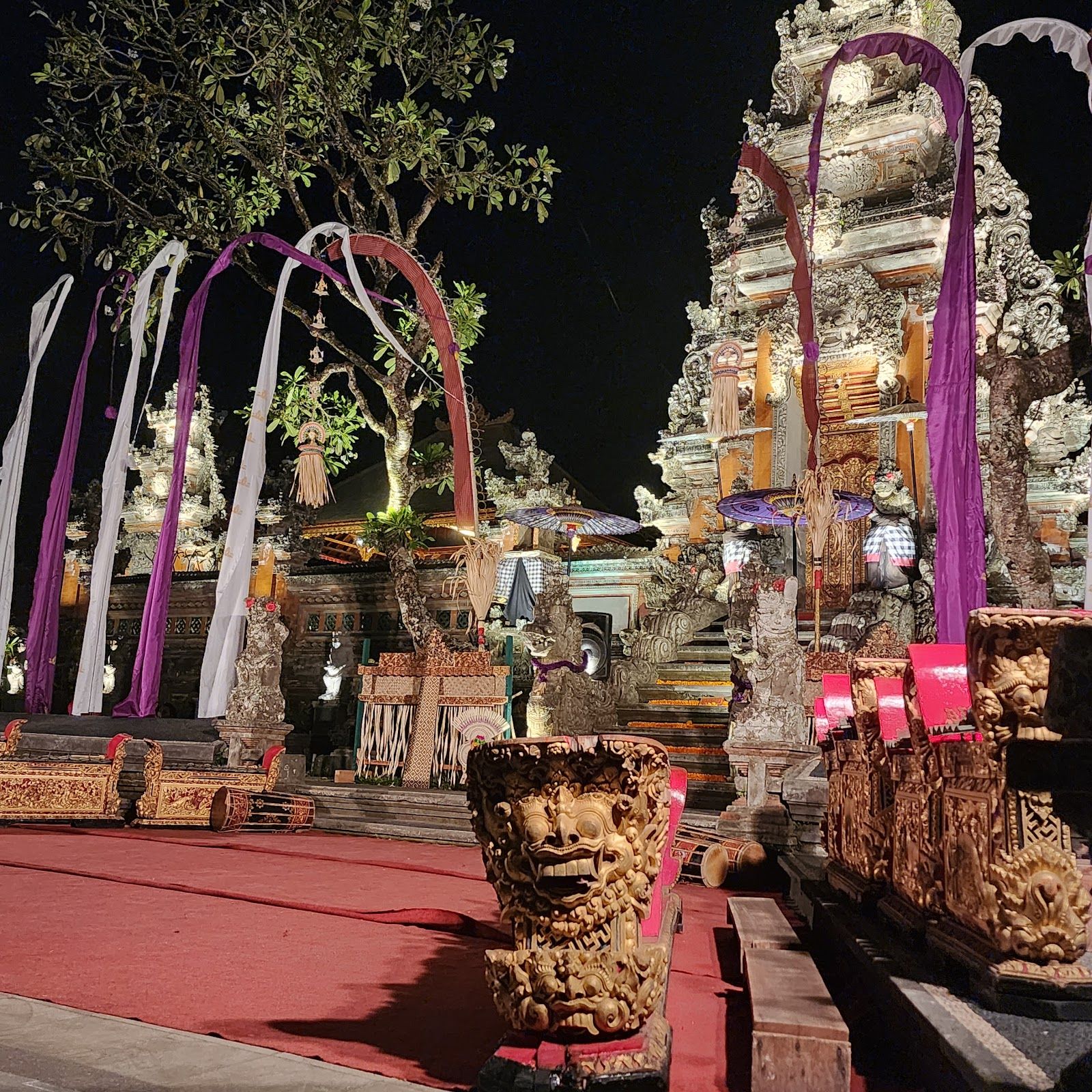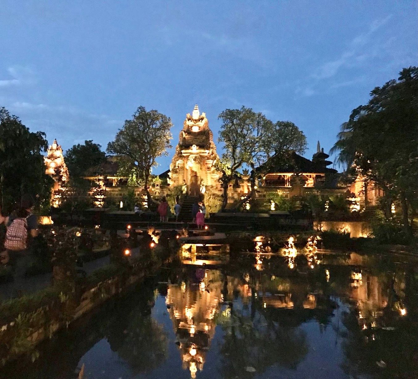 Balinese Hindu temple with lotus pond