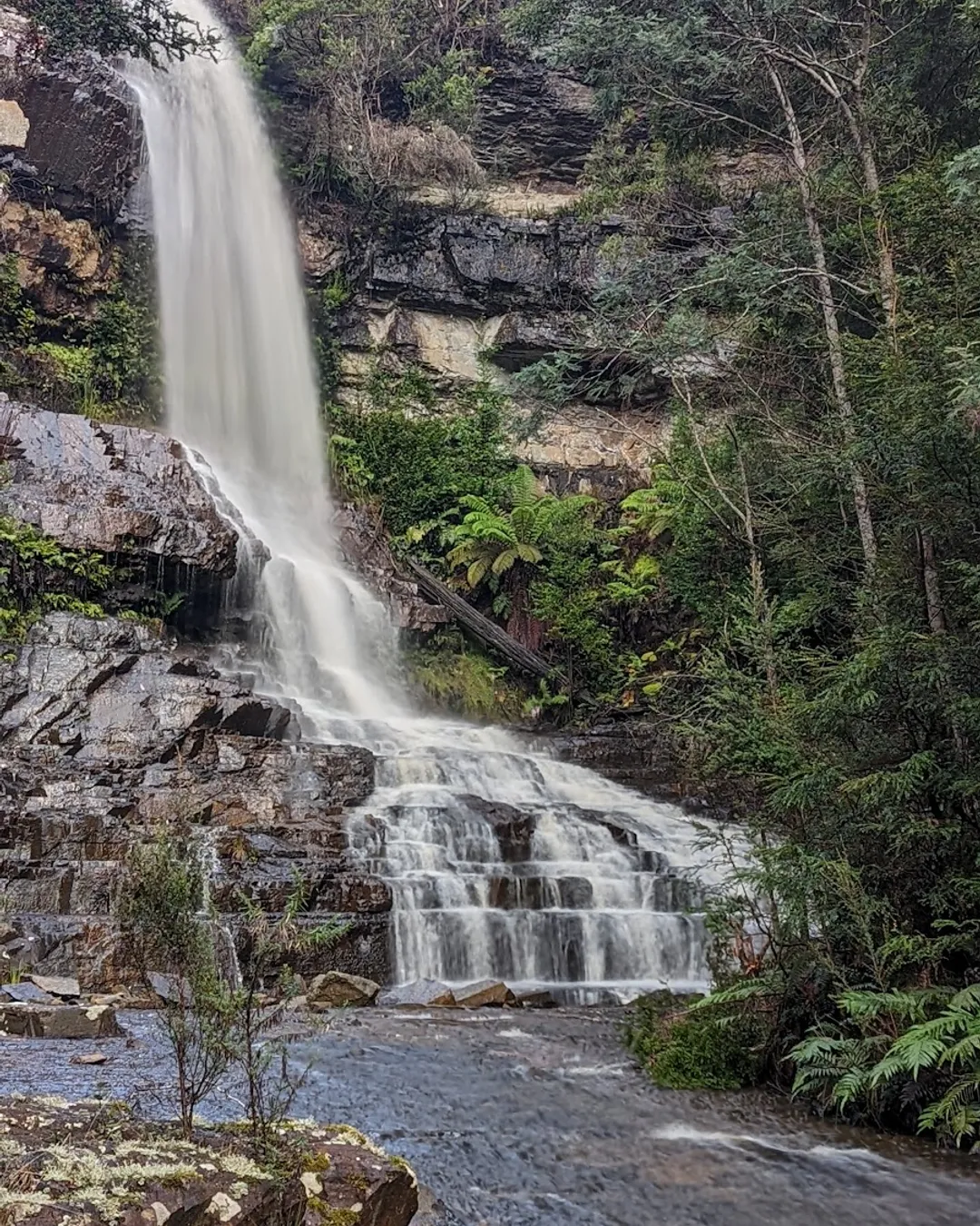 Phillips Falls is situated in the North-East of Tasmania, just outside the small town of Pyengana and close to the well-known St Columba Falls. Access is via St Columba Falls Road, a mostly sealed route with the final section on a short, unsealed gravel road. The falls are easy to reach and suitable for most vehicles.