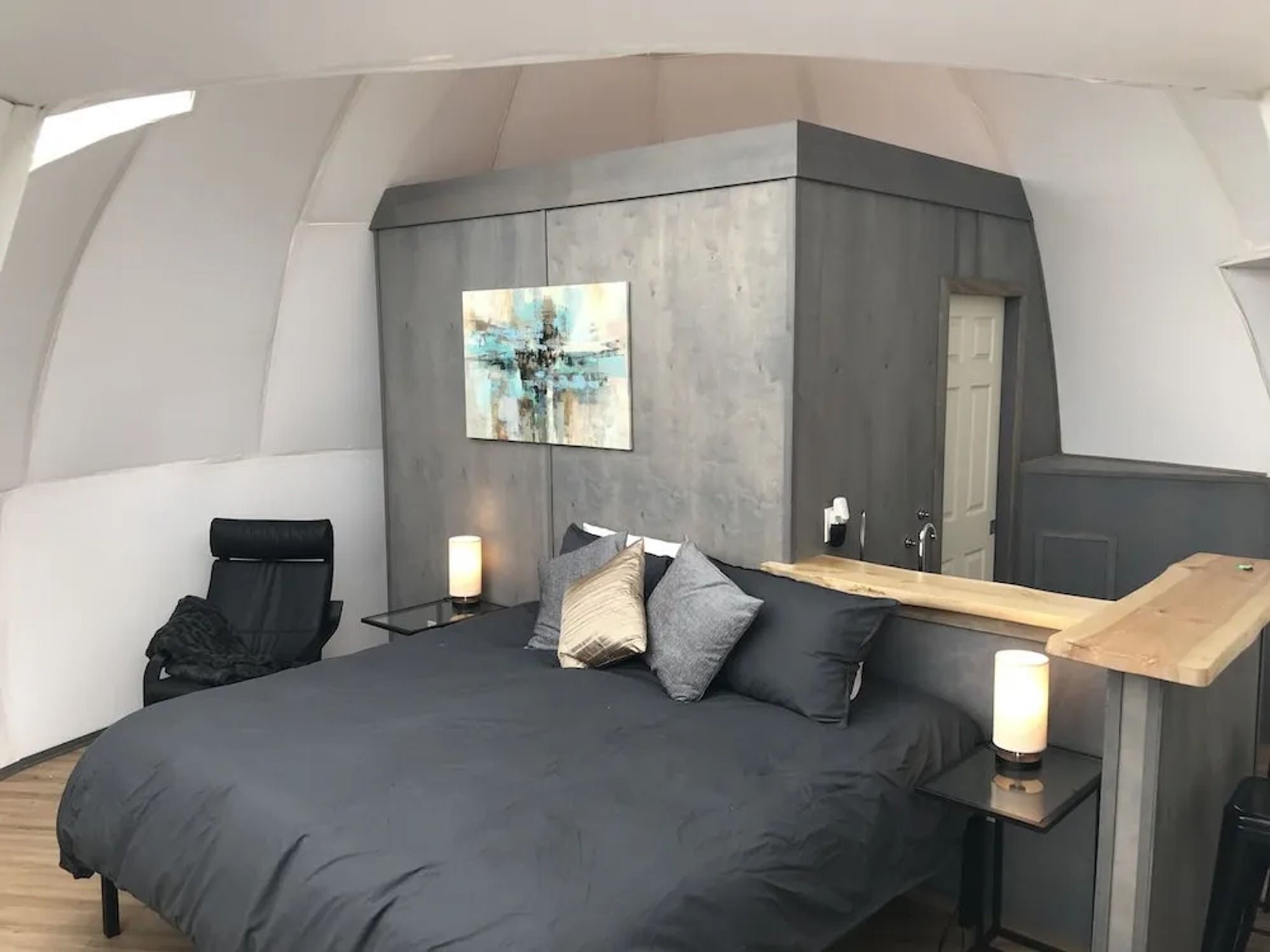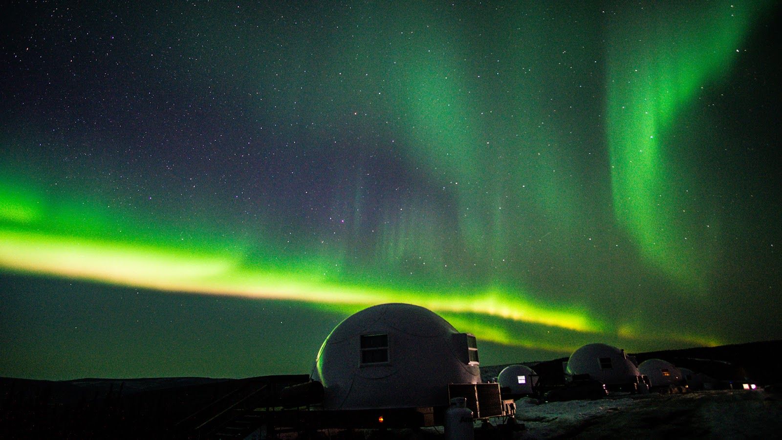 Igloos with Aurora Borealis view in Alaska.