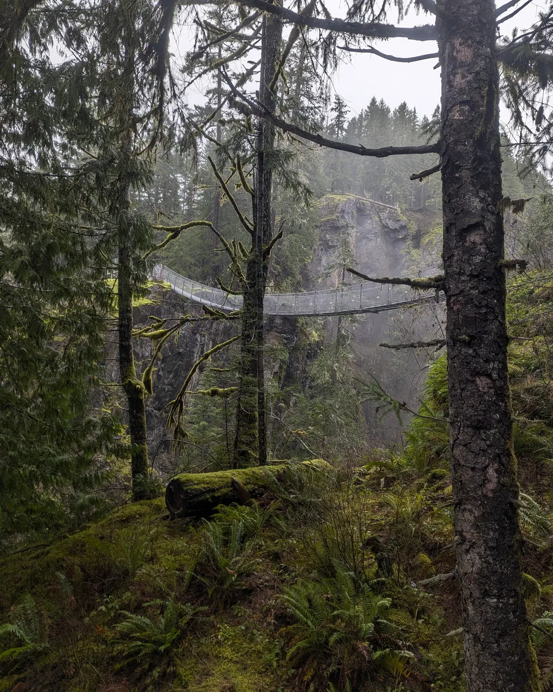 Just minutes from downtown Campbell River, Elk Falls Provincial Park is one of Vancouver Island’s most dramatic natural landmarks — a thundering waterfall framed by towering evergreens, mossy trails, and a heart-stopping suspension bridge that floats high above the canyon.