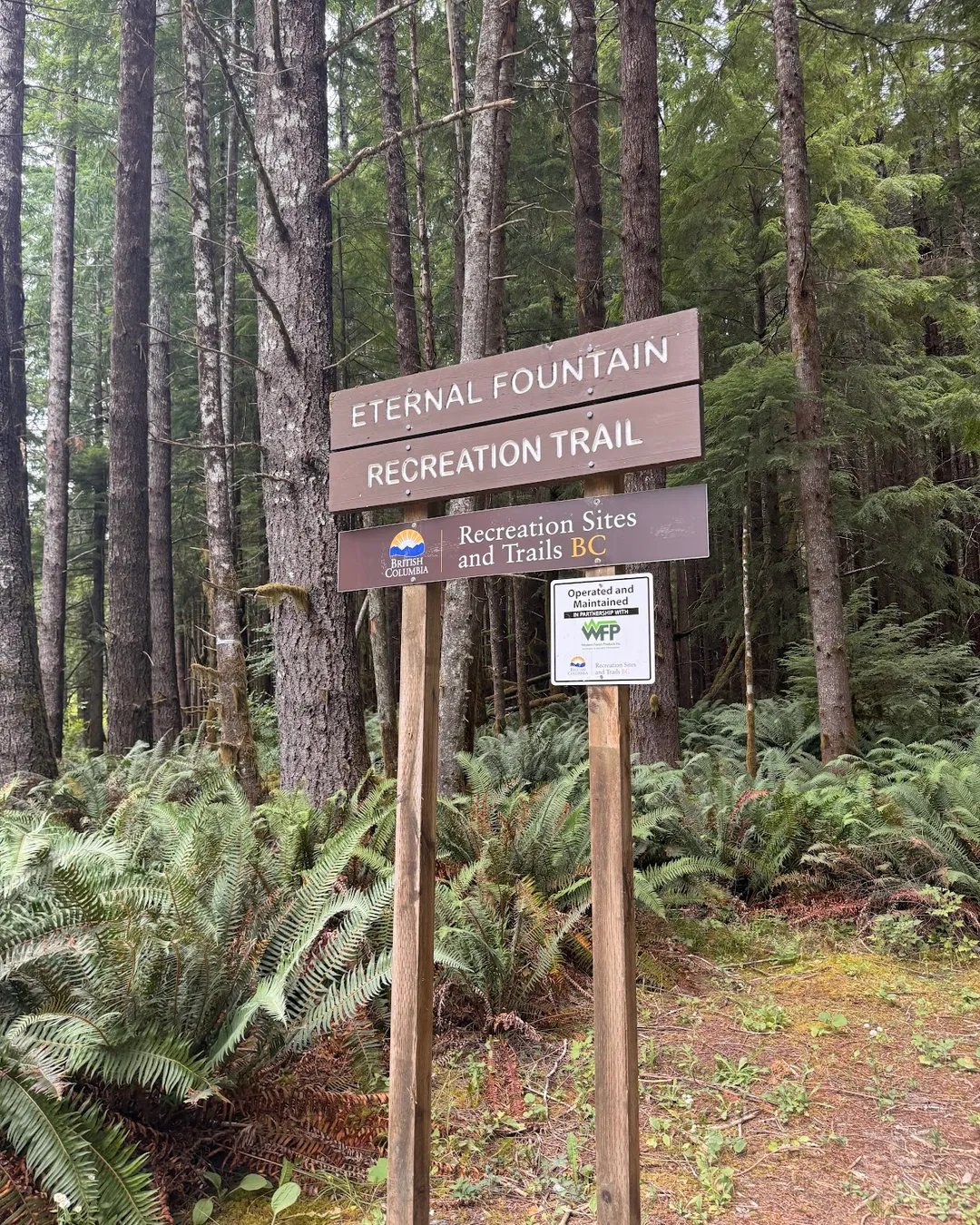 The Eternal Fountain is situated along the Alice Lake Loop, a 100-kilometer loop circuit accessible by a gravel logging road.