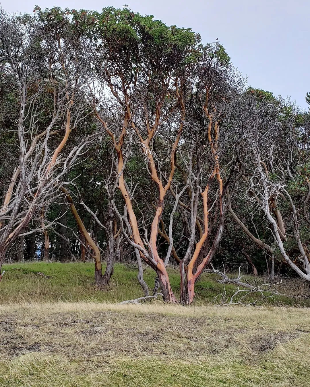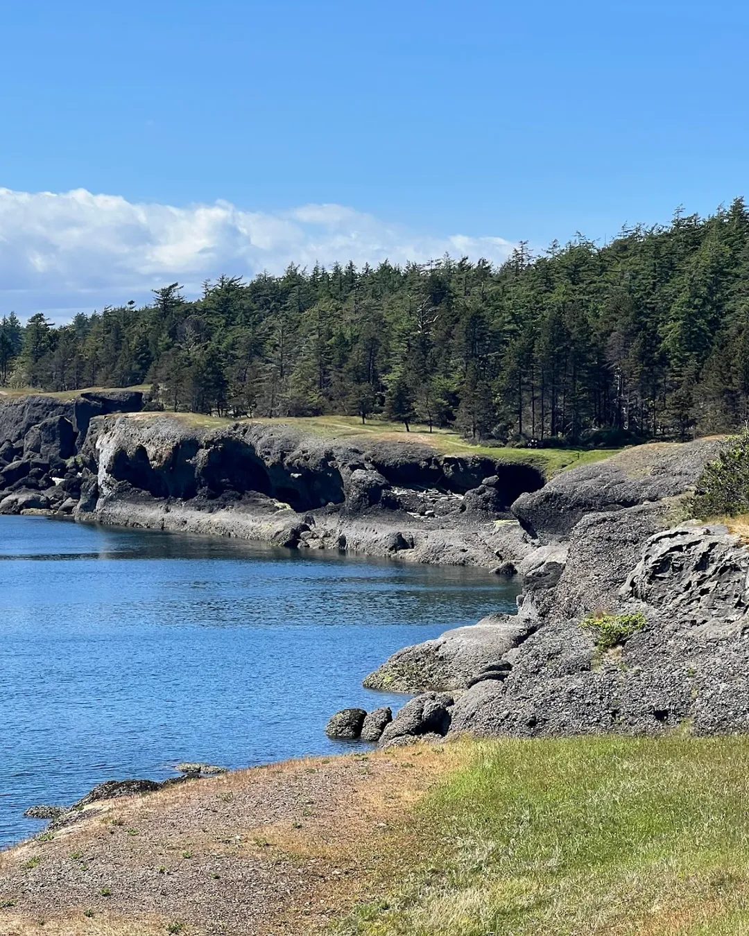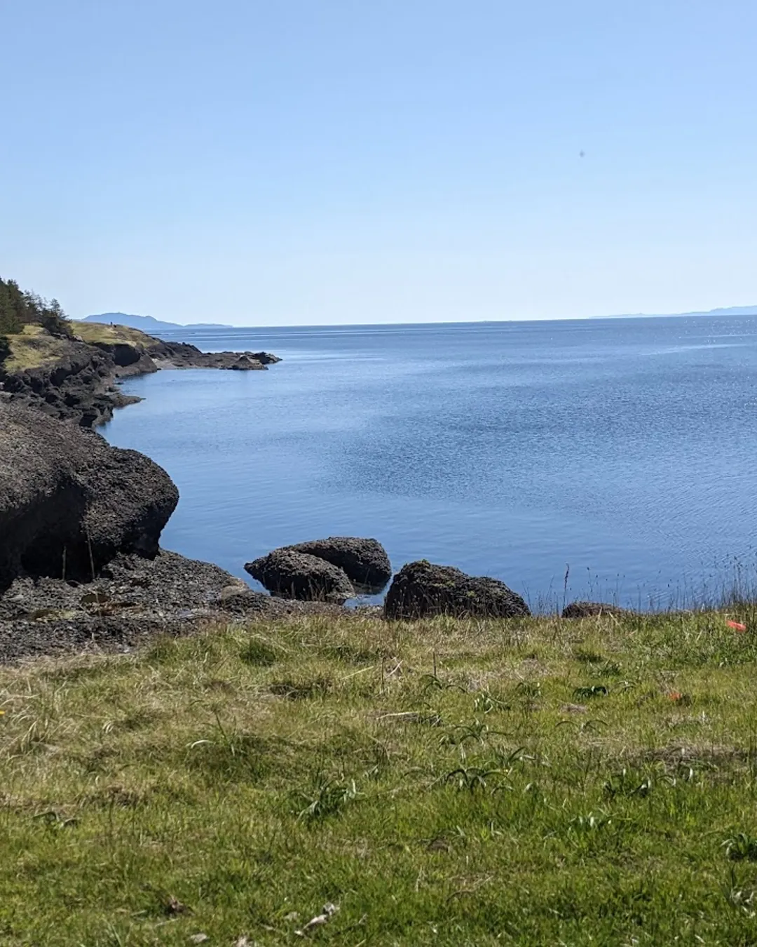The park's vegetation includes weather-beaten old-growth Douglas firs and gnarled Garry oaks, as well as a variety of wildflowers.