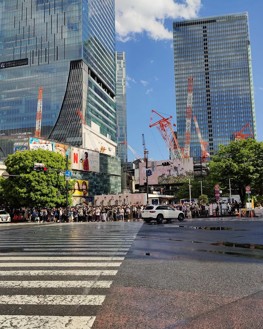 Overhead views: Shibuya Sky for the skyline; MAG’s PARK for a tight, cinematic crossing angle.