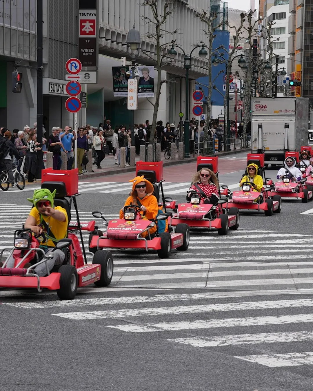 Because nowhere else compresses so much of modern Tokyo into one frame: neon, fashion, music, trains, and the choreography of thousands who never collide. On the ground you feel the pulse—headphones, camera shutters, street style, umbrellas blooming like flowers when it rains. From above you get geometry: diagonal stripes, flowing patterns, tiny figures threading the white lines. It’s also the perfect gateway to an evening in Shibuya: take the shot, then dive into side streets for ramen steam, vinyl bars, and lantern alleys like Nonbei Yokochō. Whether it’s your first time in Japan or your fifth, the crossing still hits with the same “I’m really here” jolt.