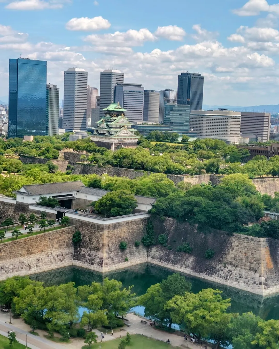 In a few words: a vast green ring of moats, lawns, and seasonal groves wrapped around Osaka’s most famous keep—jogging routes, picnic lawns, boats on the water, and blossom scenes that feel like a festival. 🌳🏯
