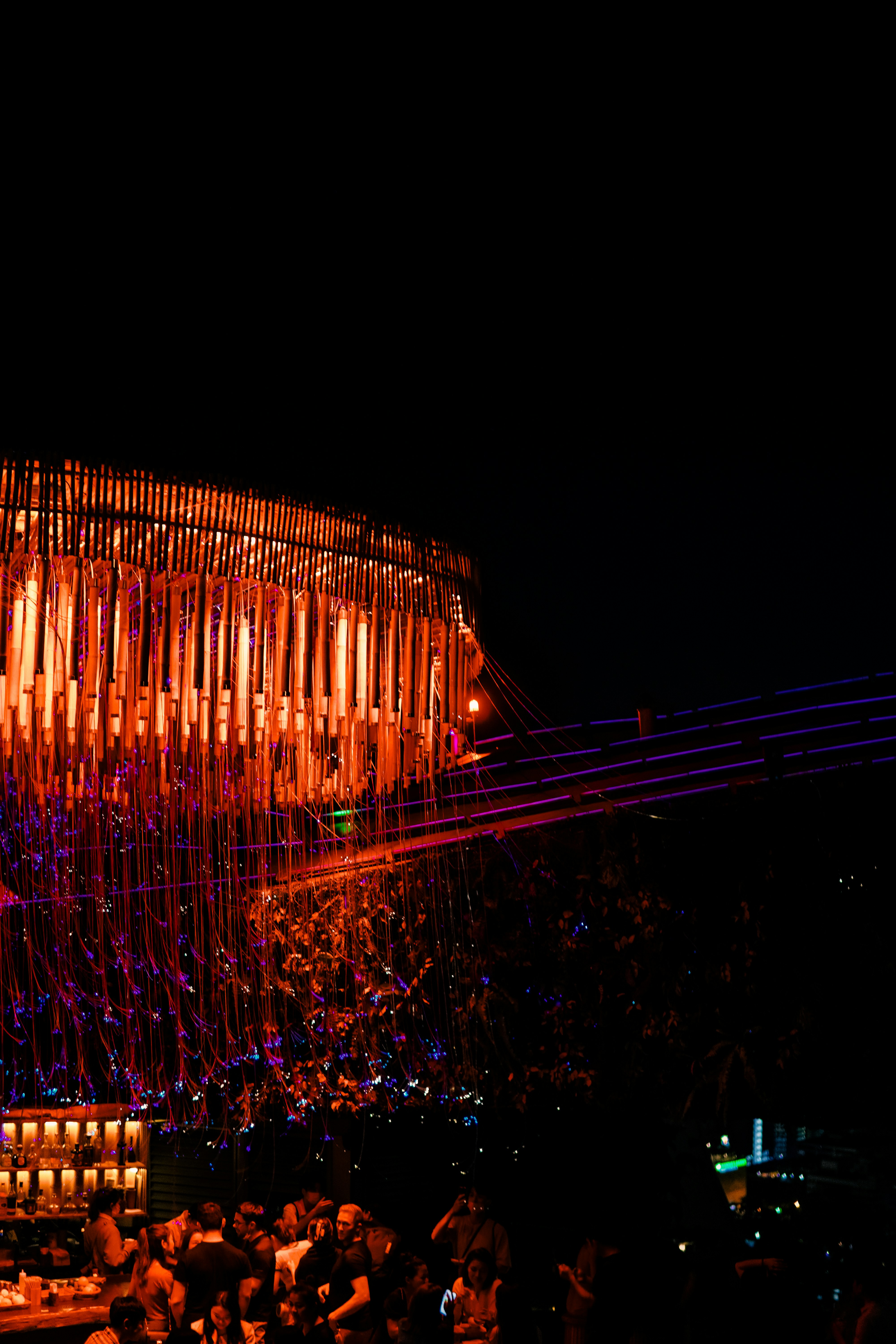 Tropical rooftop bar with city views