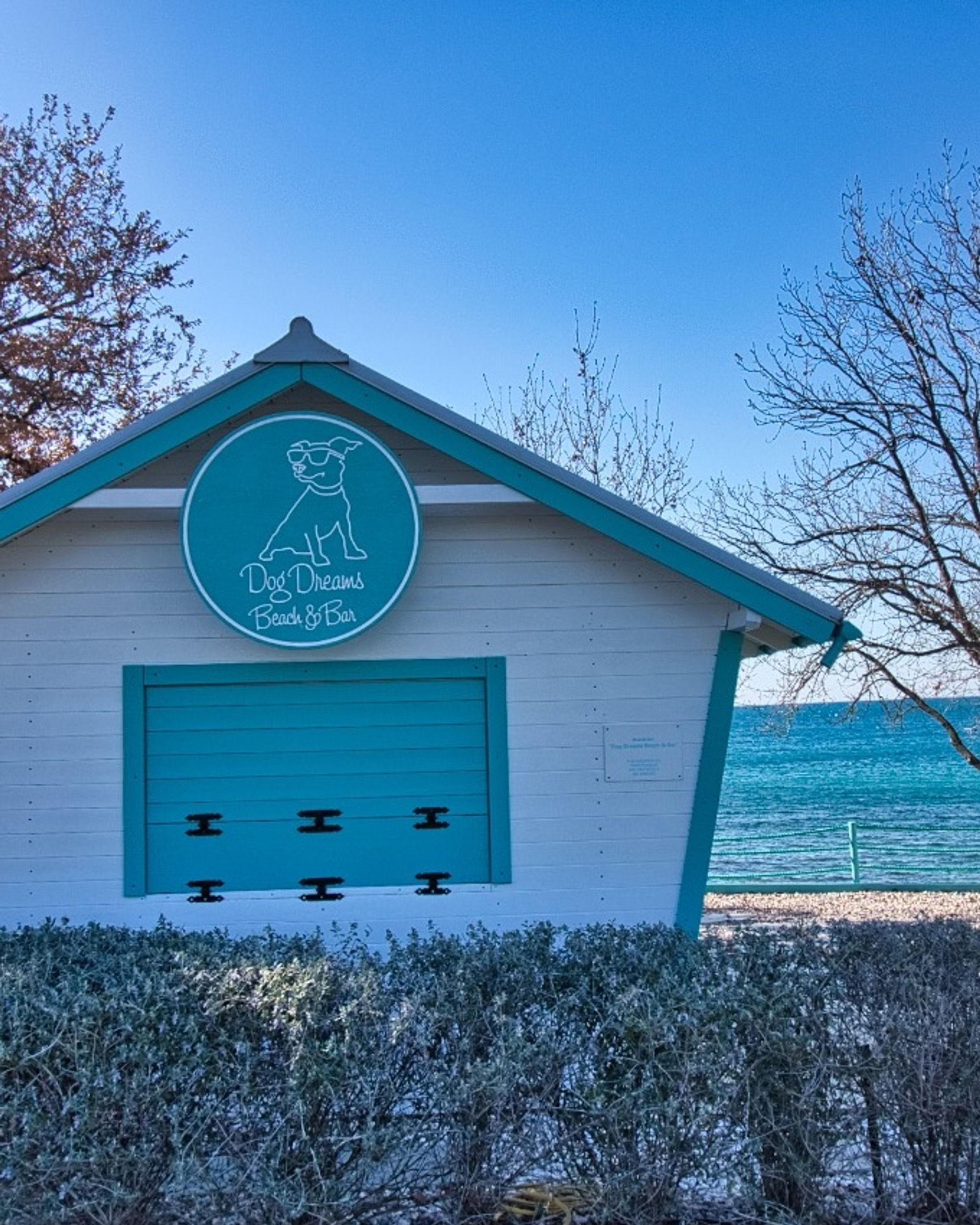 Schöner Hundestrand mit süßer Bar