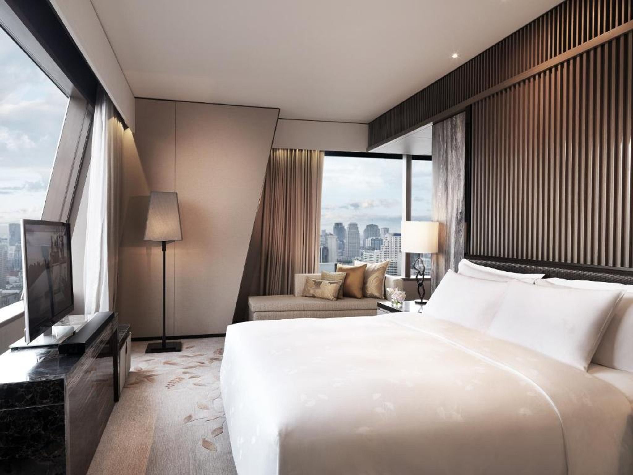 The Okura Prestige Bangkok provides a luxurious experience for all its guests. With 10 distinctive accommodation categories available in this 5-star luxury hotel, guests can enjoy the comfort and convenience of spacious rooms that feature triple-glazed tinted panoramic windows offering views of the city. In addition to stellar accommodations, guests at The Okura Prestige Bangkok get exclusive access to their 25-metre infinity pool cantilevered over skyline of Bangkok accompanied by the state-of-the-art fitness centre and The Okura Spa. For those who are looking for culinary delights, the hotel serves up authentic haute cuisine with Michelin-starred restaurants Elements and Yamazato and all-day dining at Up & Above Restaurant and Bar.