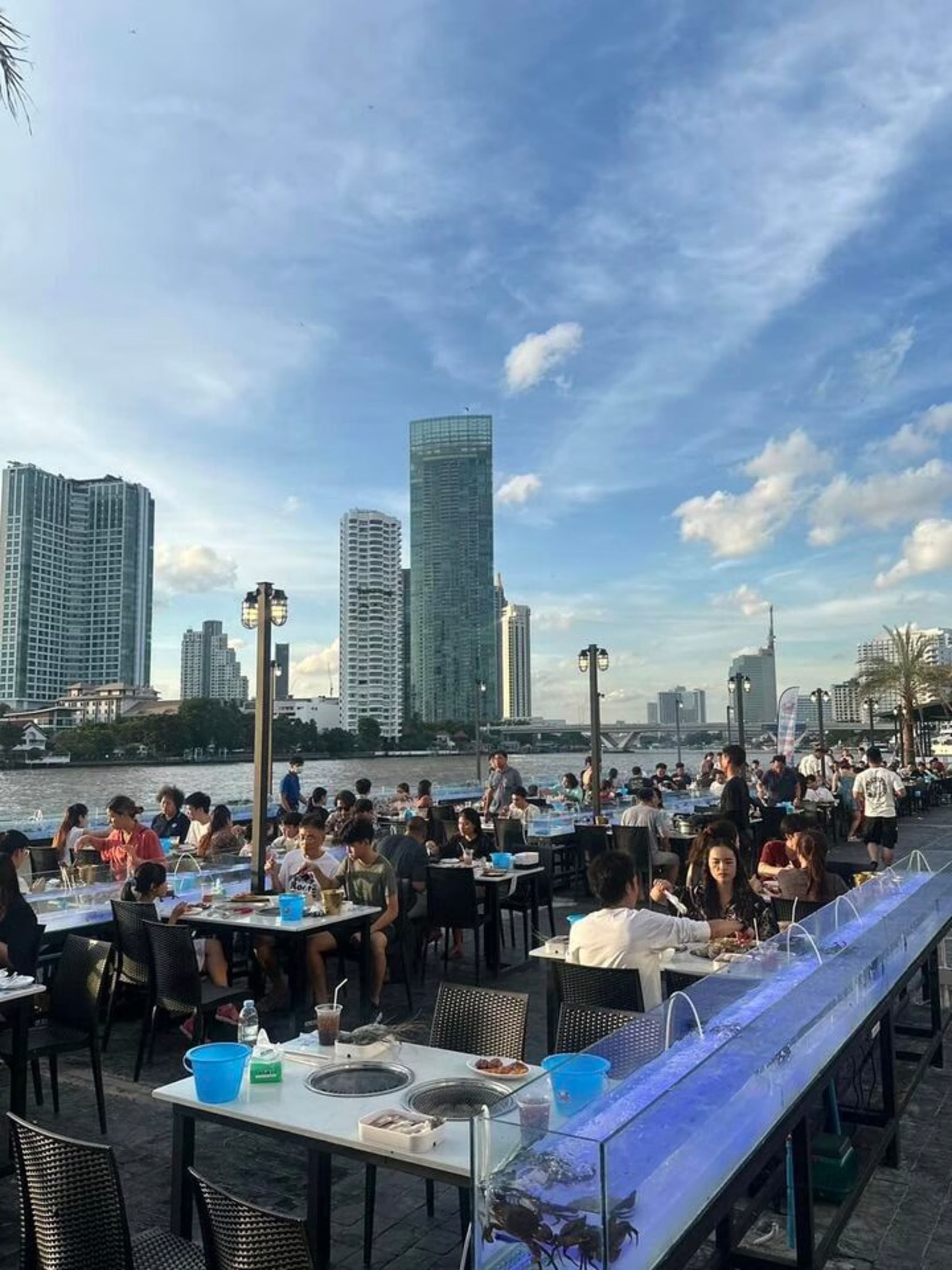 Seafood buffet with river views