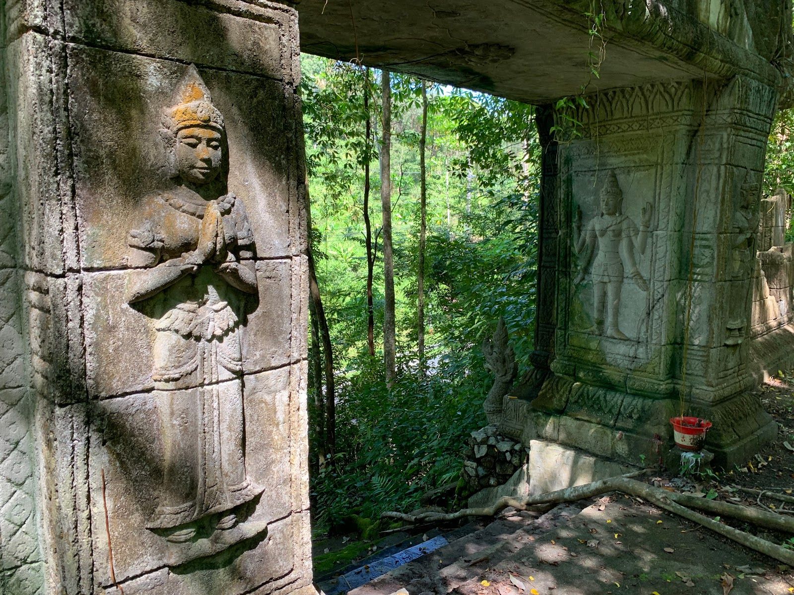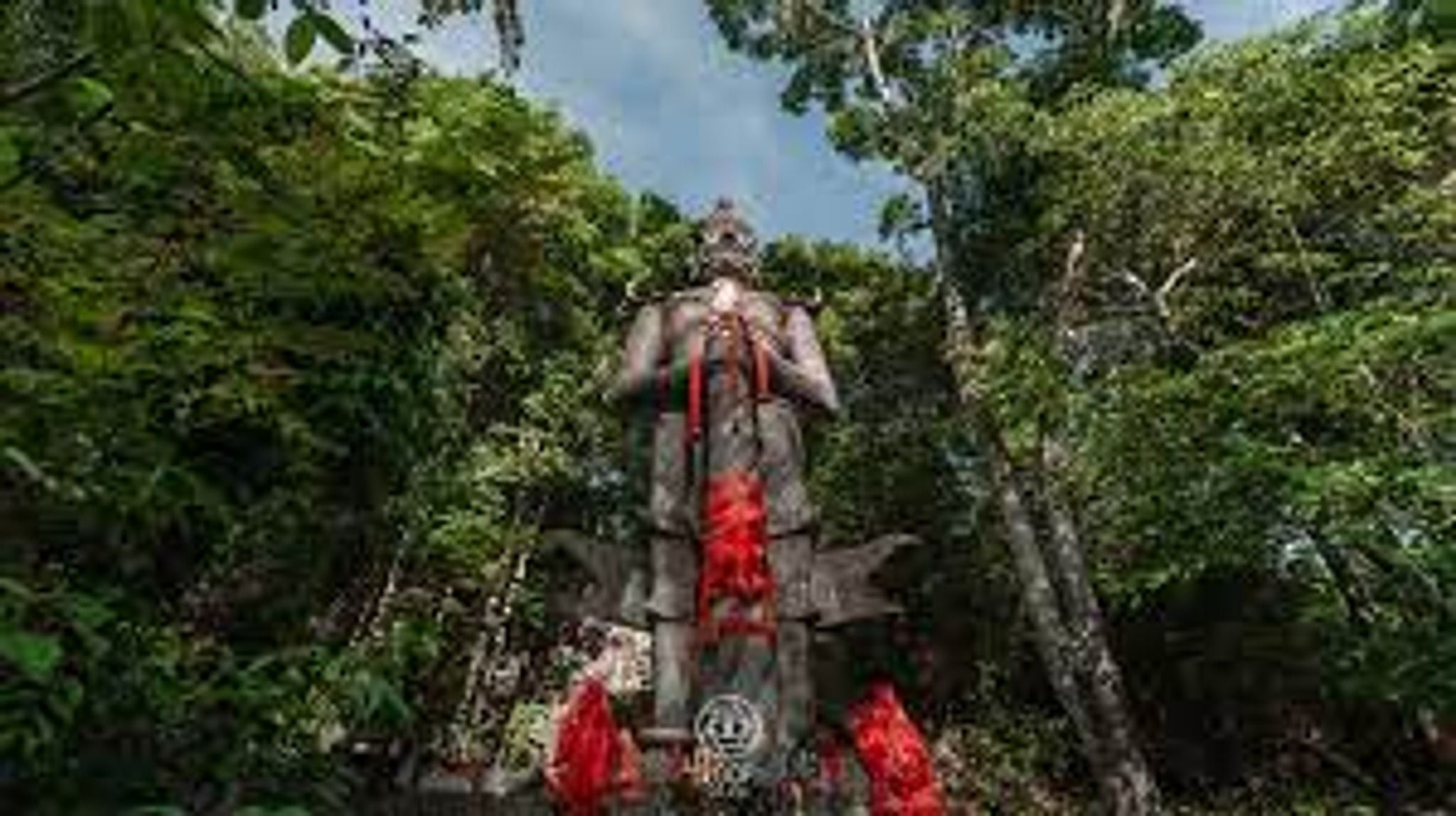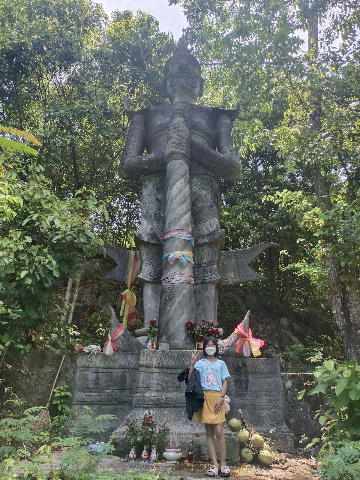 Secret garden with giant statues
