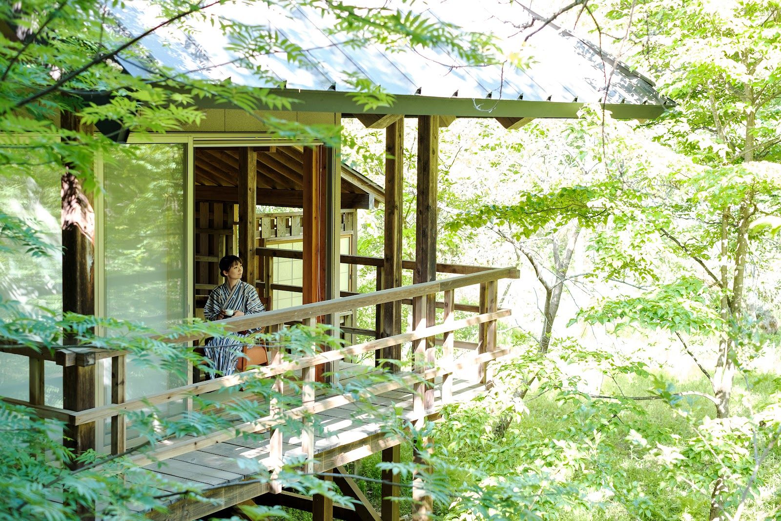 Serene forest retreat with hot springs