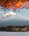 Scenic autumn views by Lake Kawaguchi