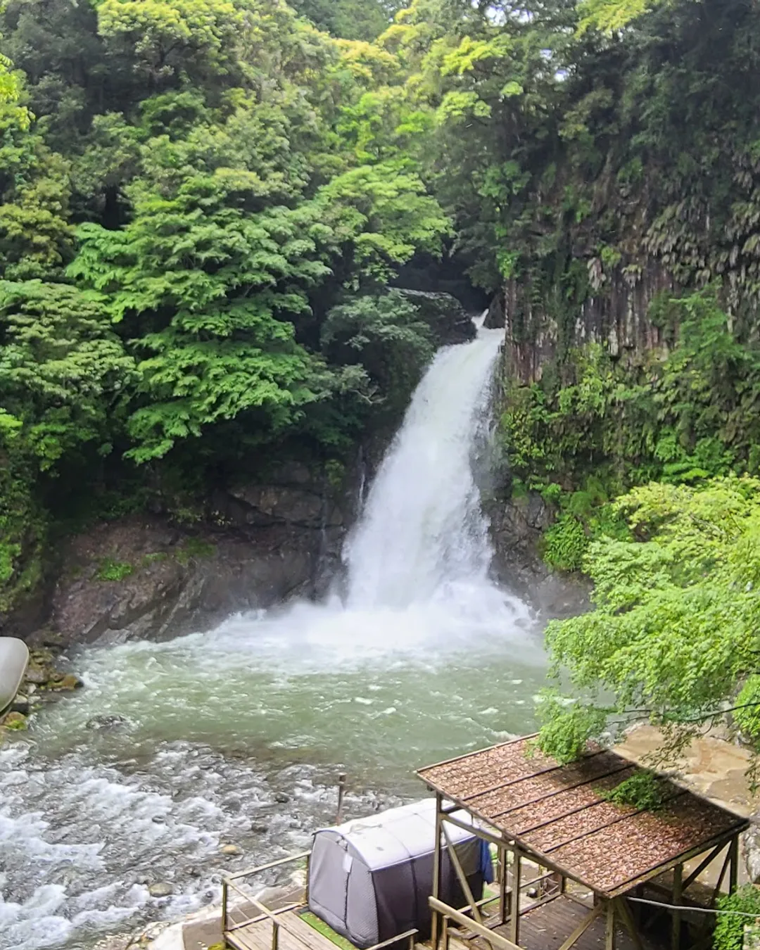 Tattoo friendly hot spring onsen overlooking waterfall