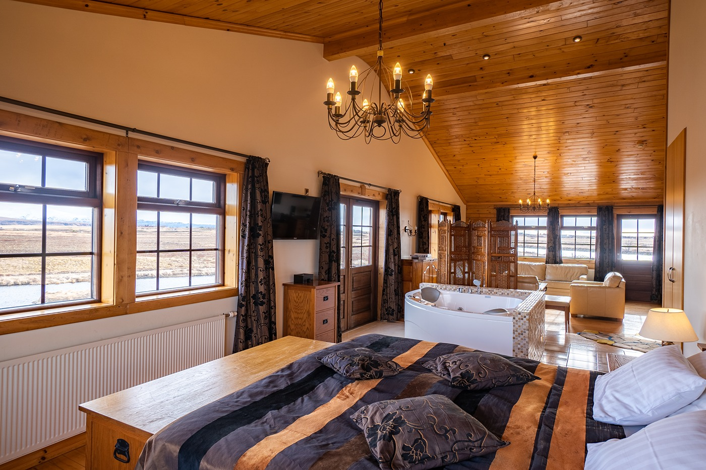 Hotel Rangá Southern Iceland´s idyllic countryside retreat, is the ideal location for adventuring through the country´s myriad of natural wonders, from it´s highlands and hot springs to its waterfalls, black sand beaches and volcanoes. In addition to its prime position to catch the Northern Lights, an advanced, on-site observatory also makes this lux lodge one of the best places to stargaze on the island. The hotel offers cozy rooms, including continent-themed suites, gourmet dining at the acclaimed Rangá Restaurant and geothermal heated hot tubs for starlit soaking after a day of exploring the iconic land of fire and ice. Family-owned and operated for two decades. Breakfast is included in all our rates.